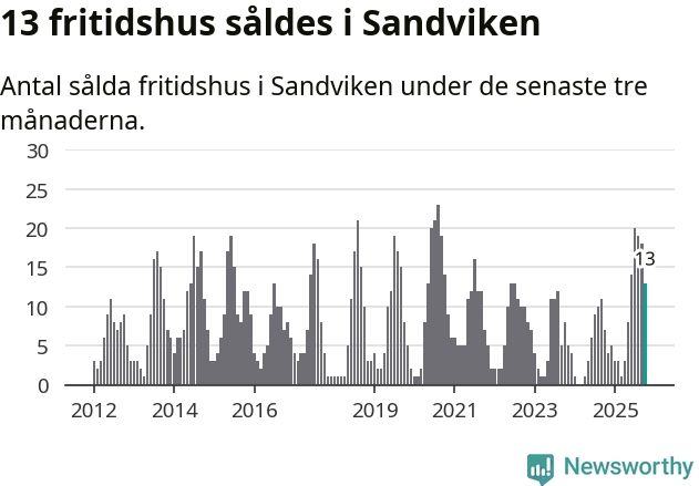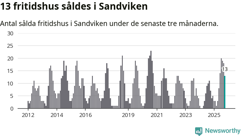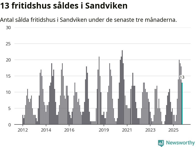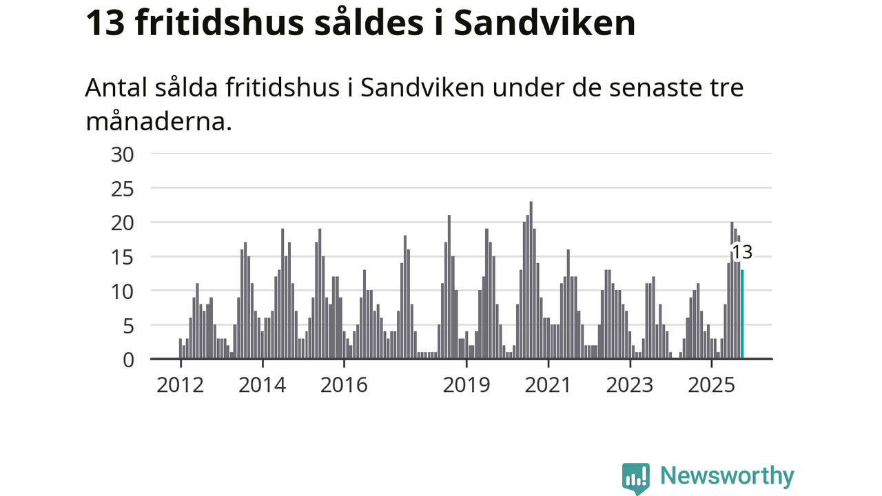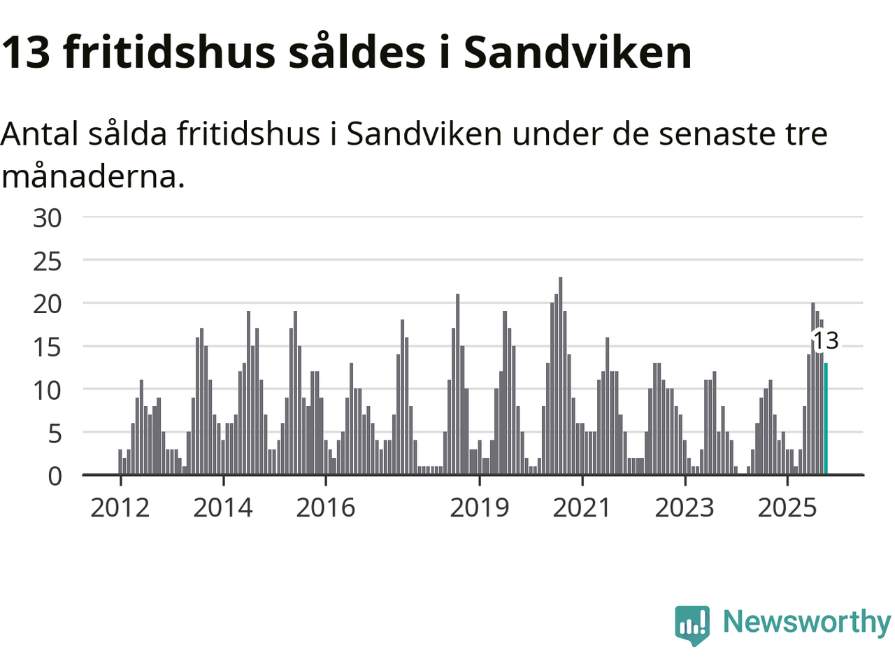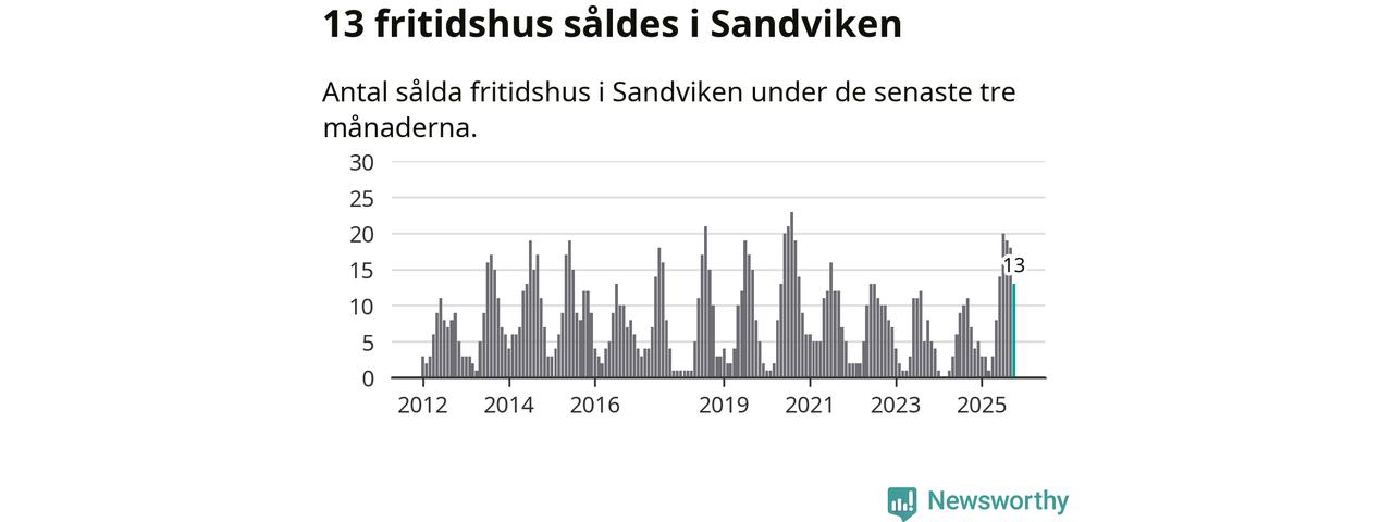 Mellan augusti och oktober gjordes sammanlagt 13 affärer med fritidshus i Sandvikens kommun. Det kan jämföras med sju vid motsvarande tid i fjol.