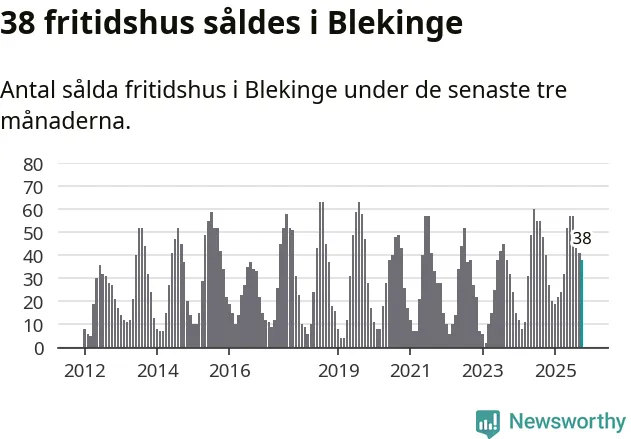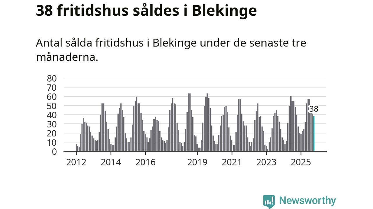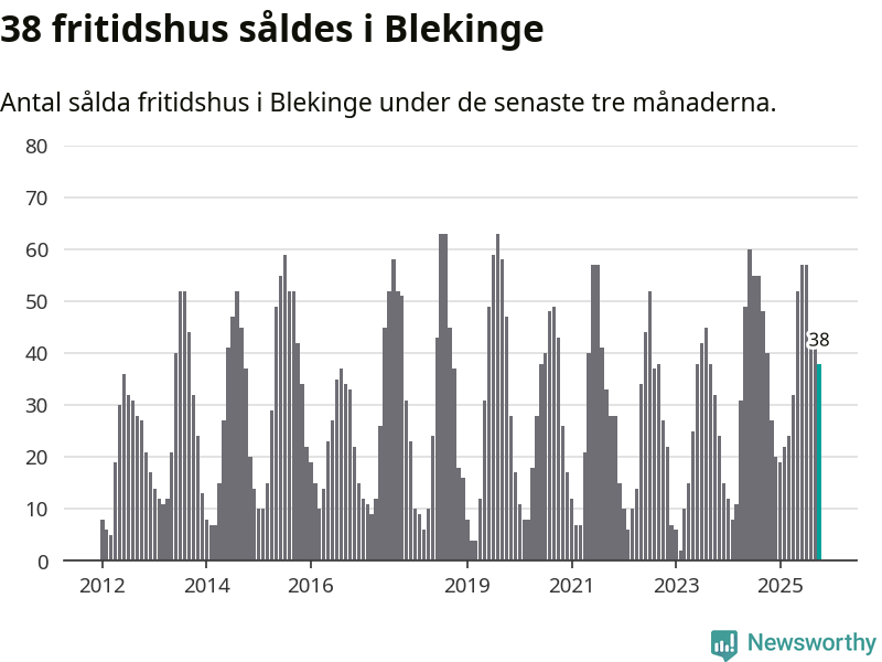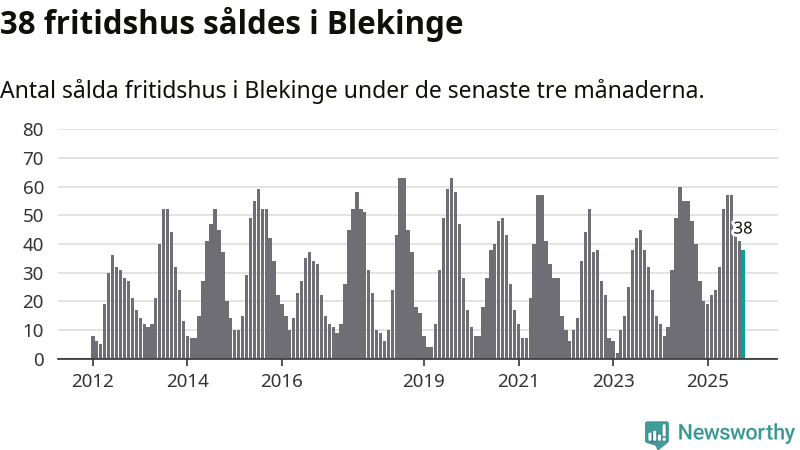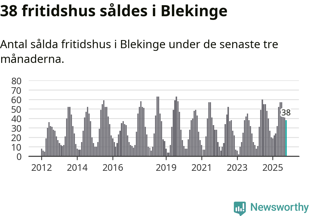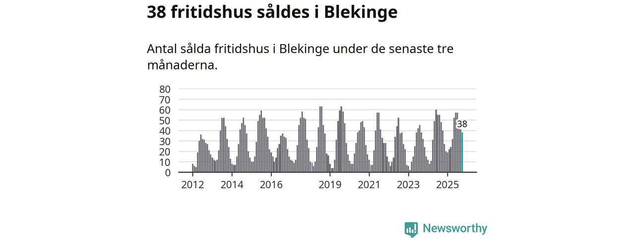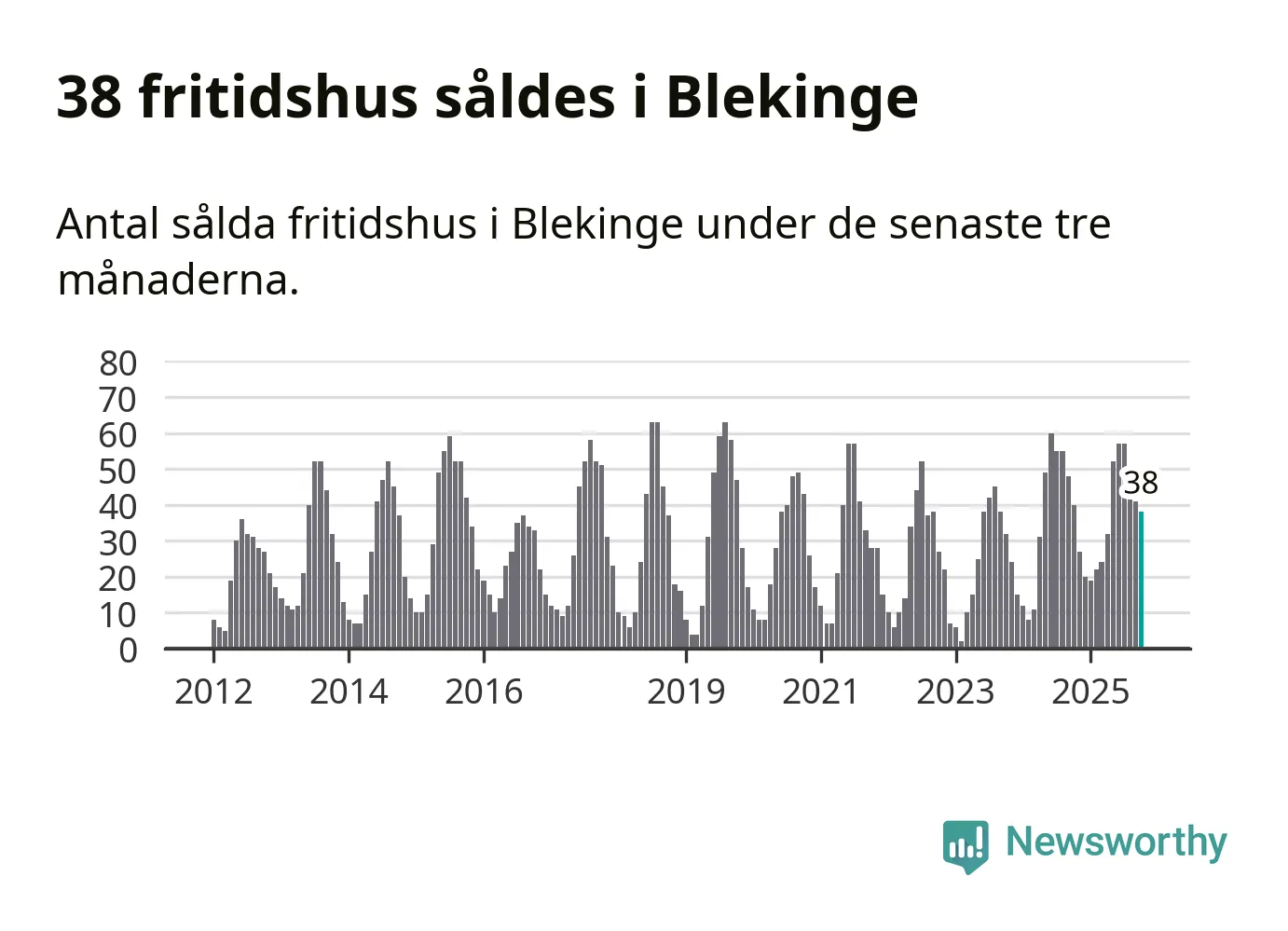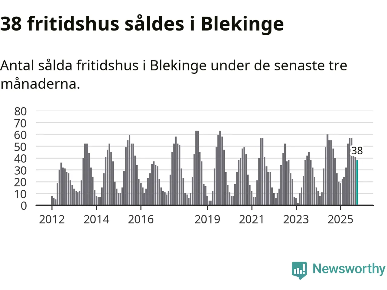 Sammanlagt såldes 38 fritidshus i Blekinge län mellan augusti och oktober till ett genomsnittligt pris på 1,9 miljoner kronor. I fjol gjordes 40 affärer vid den här tiden på året.
