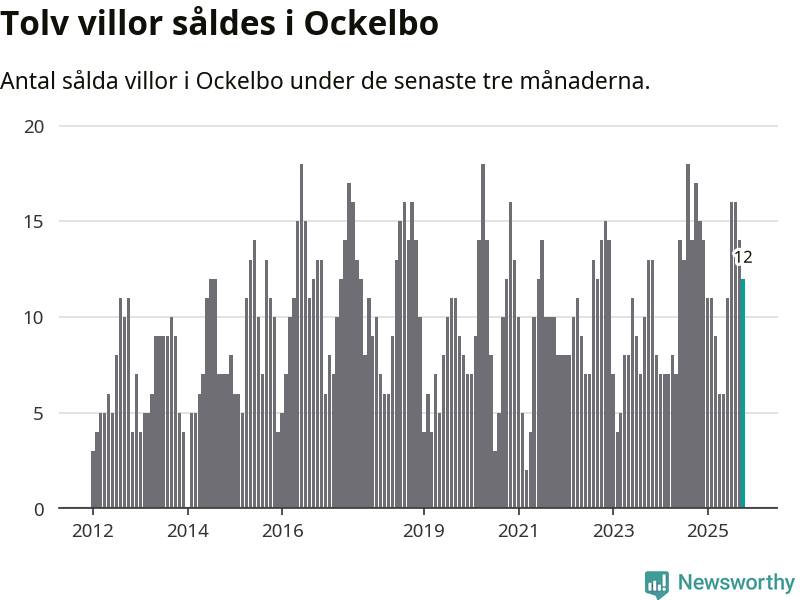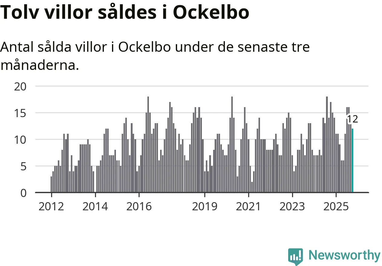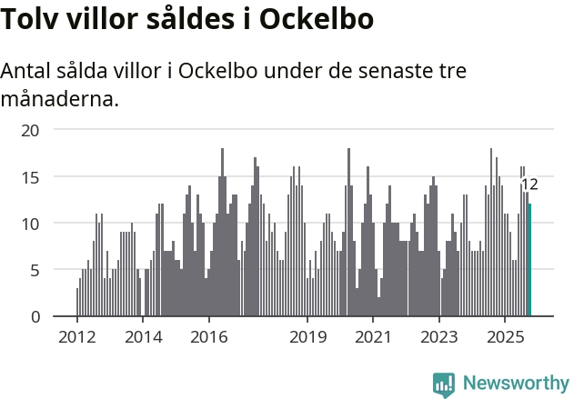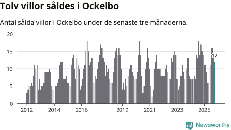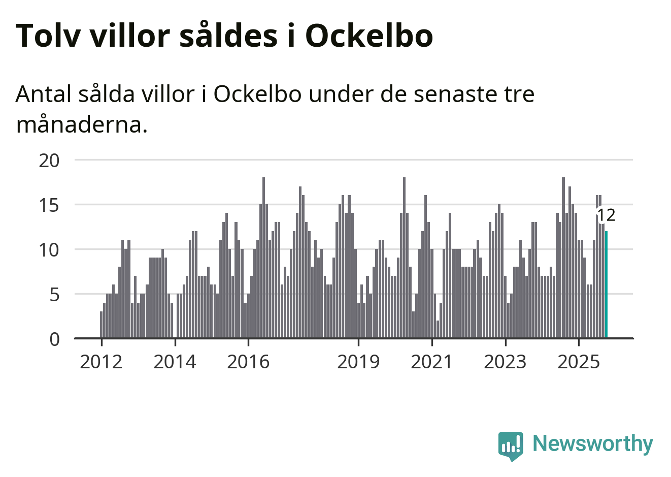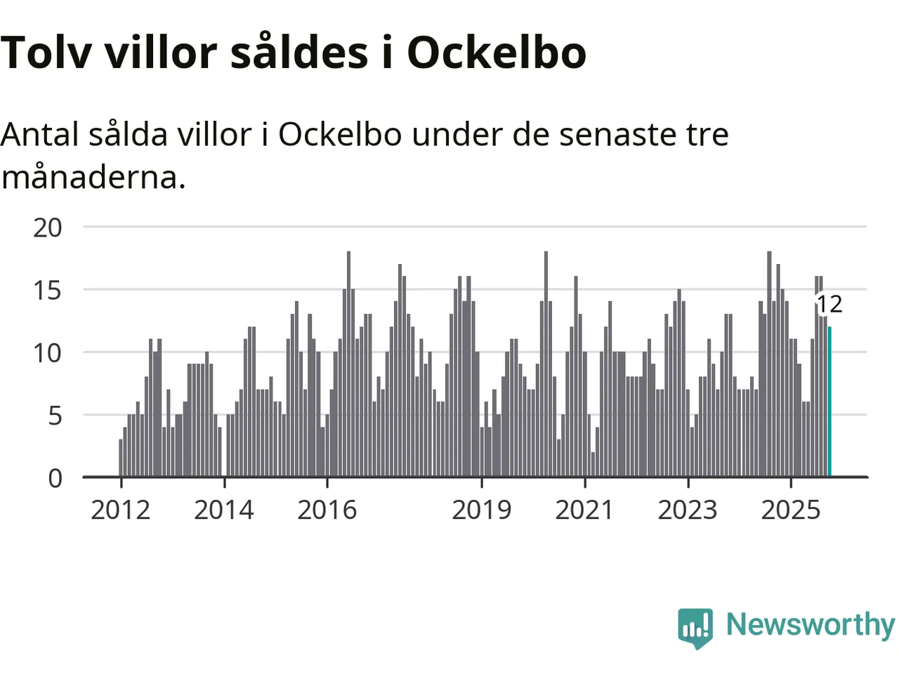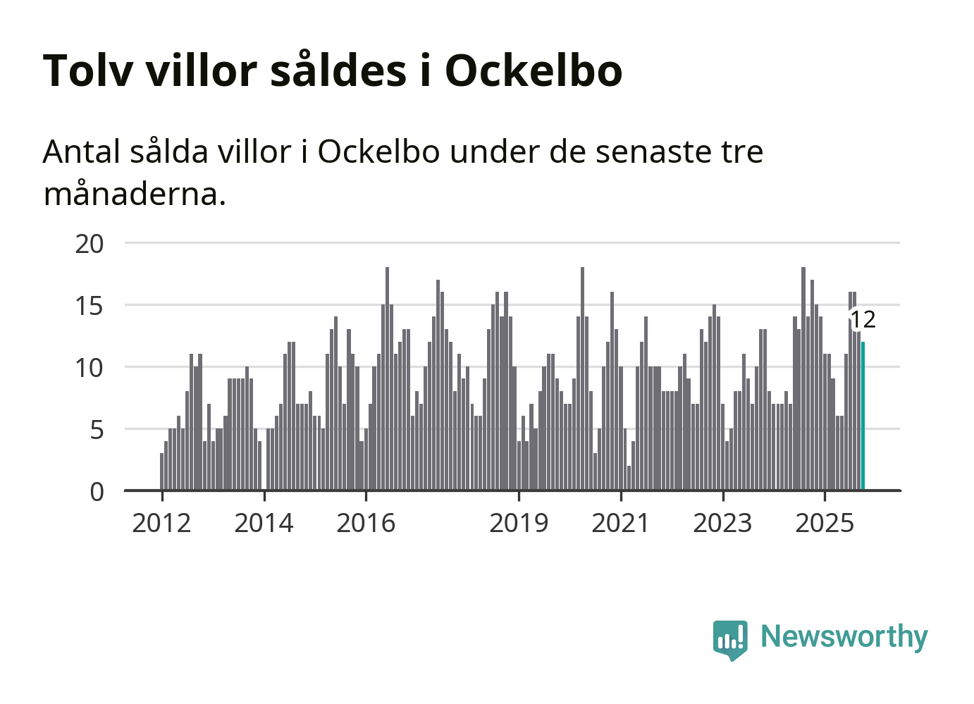 Mellan augusti och oktober gjordes sammanlagt tolv affärer med villor i Ockelbo kommun. Det kan jämföras med 17 vid motsvarande tid i fjol.