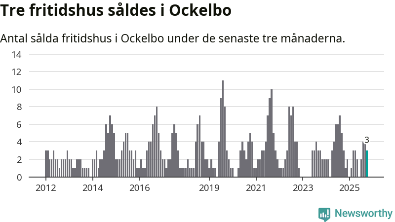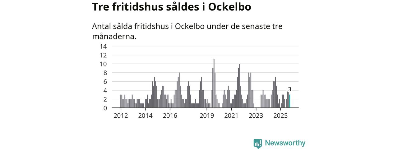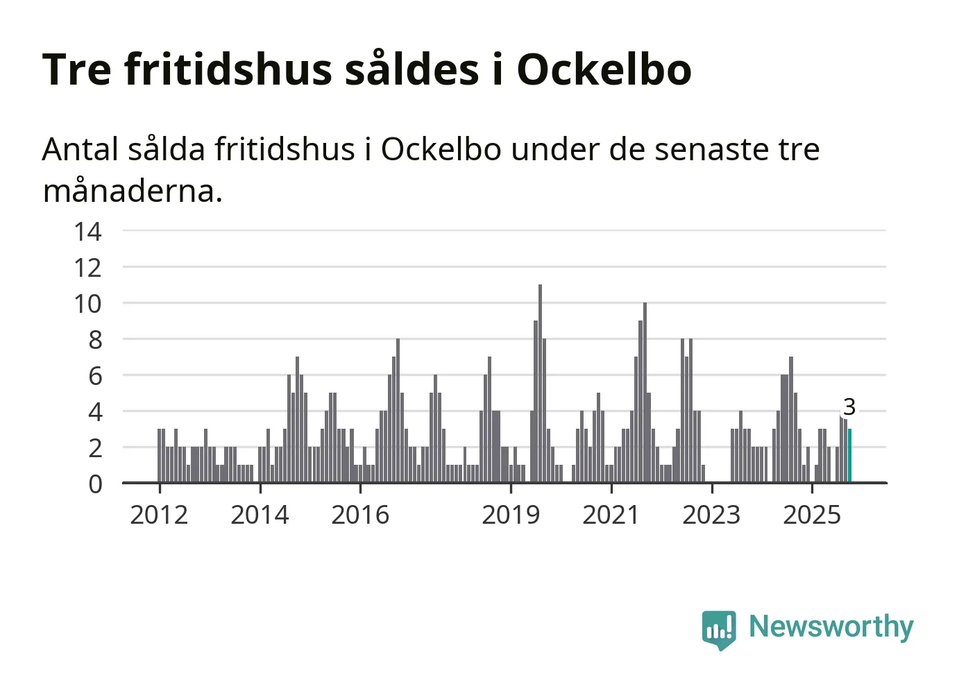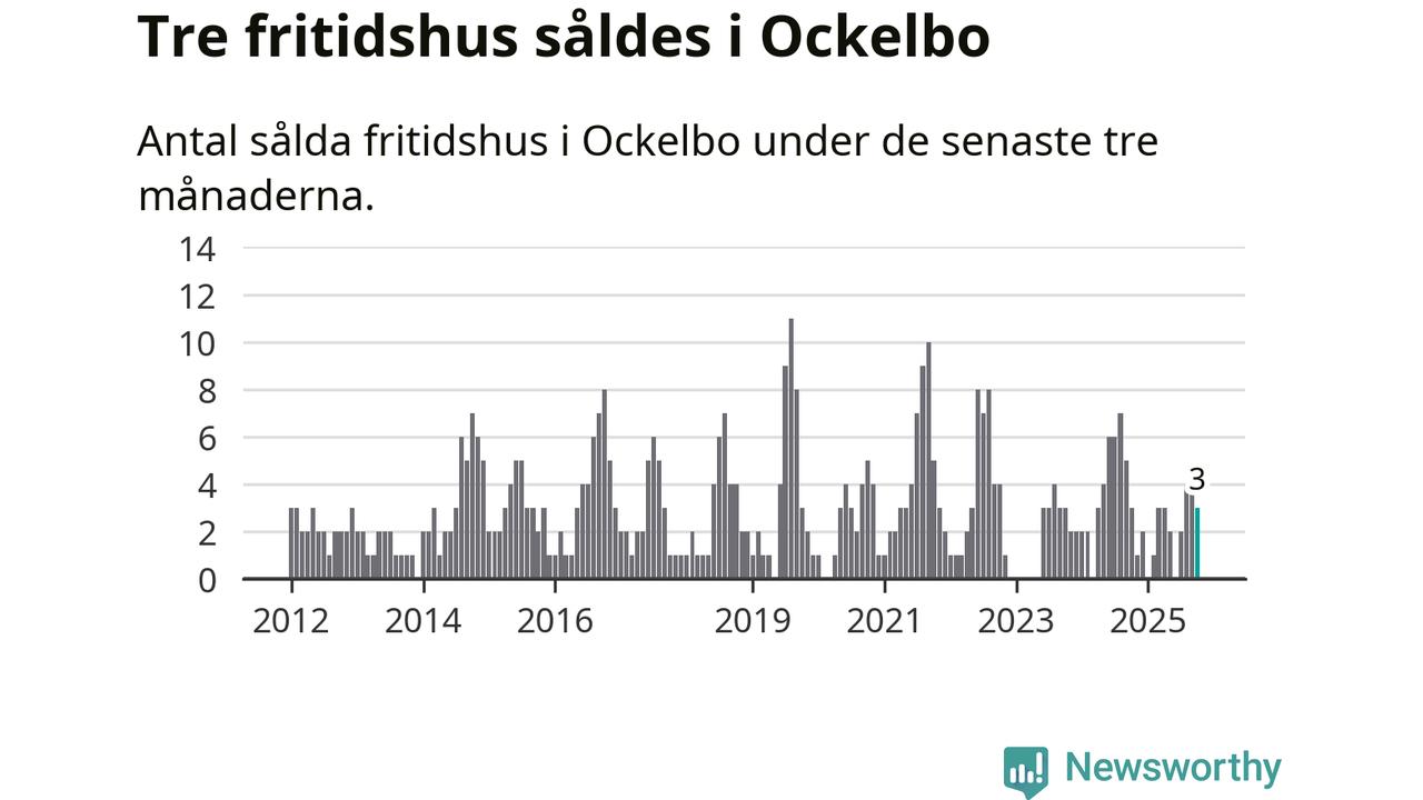 Mellan augusti och oktober gjordes sammanlagt tre affärer med fritidshus i Ockelbo kommun. Det är lika många affärer som vid motsvarande tid i fjol.