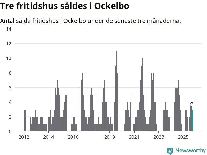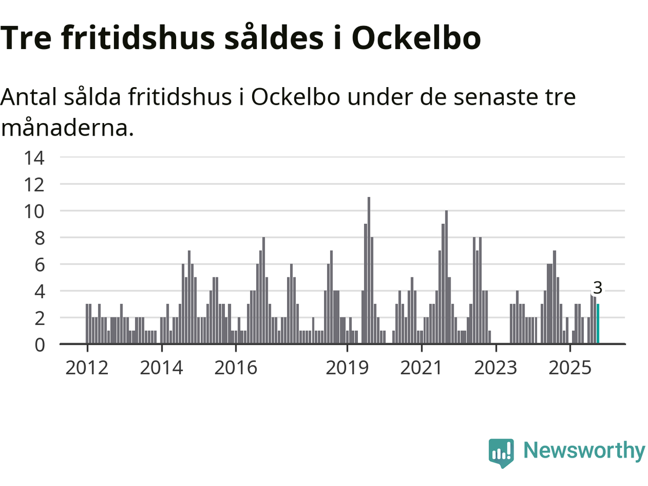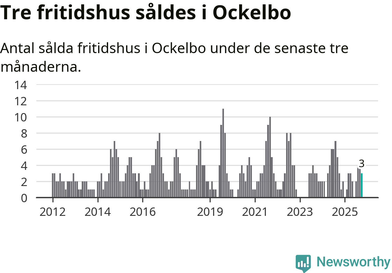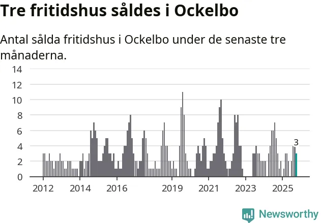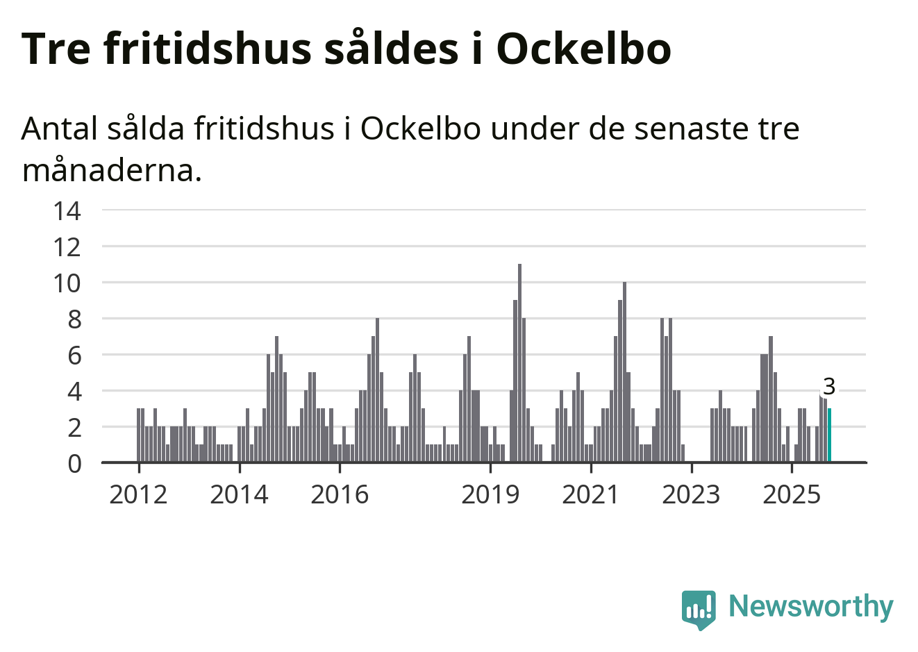 Mellan augusti och oktober gjordes sammanlagt tre affärer med fritidshus i Ockelbo kommun. Det är lika många affärer som vid motsvarande tid i fjol.