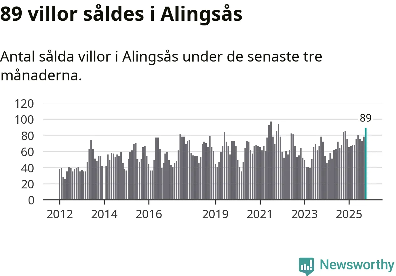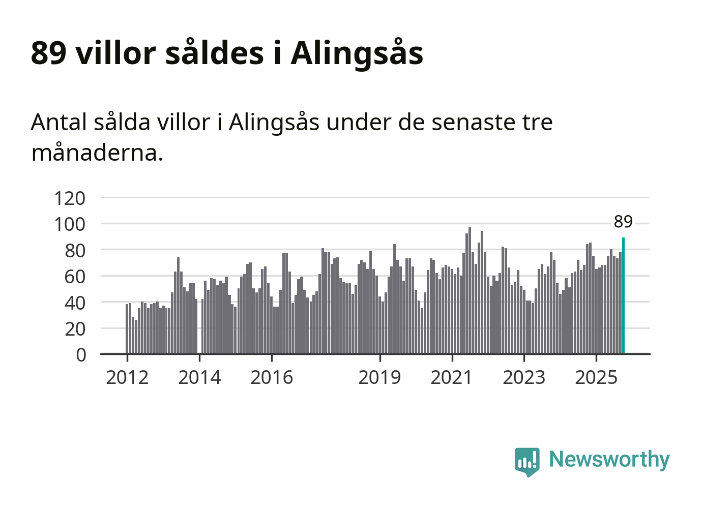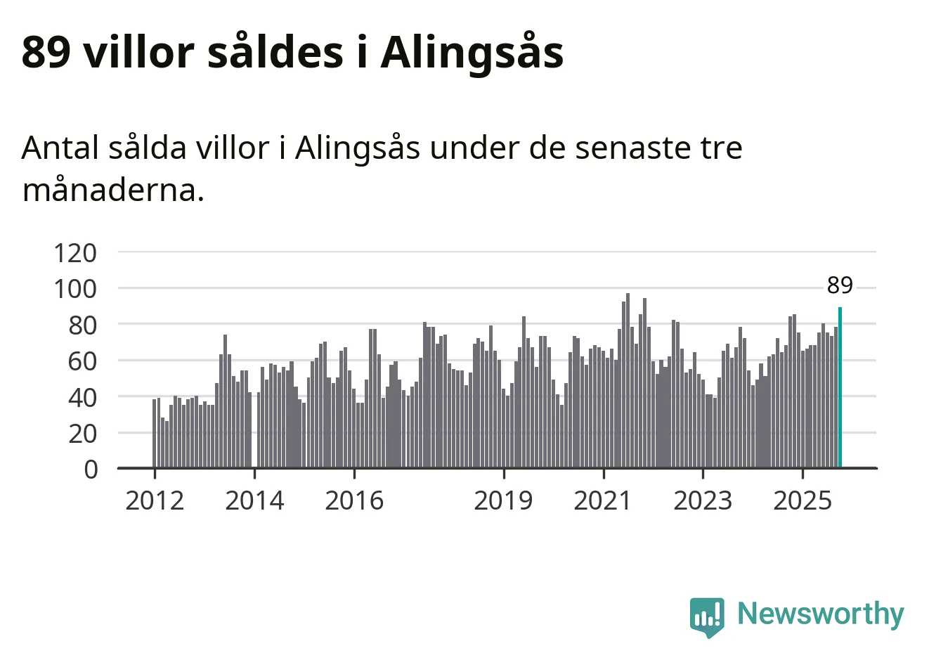 Mellan augusti och oktober såldes 89 villor i Alingsås kommun. Det är fler än någon tremånadersperiod sedan 2021.