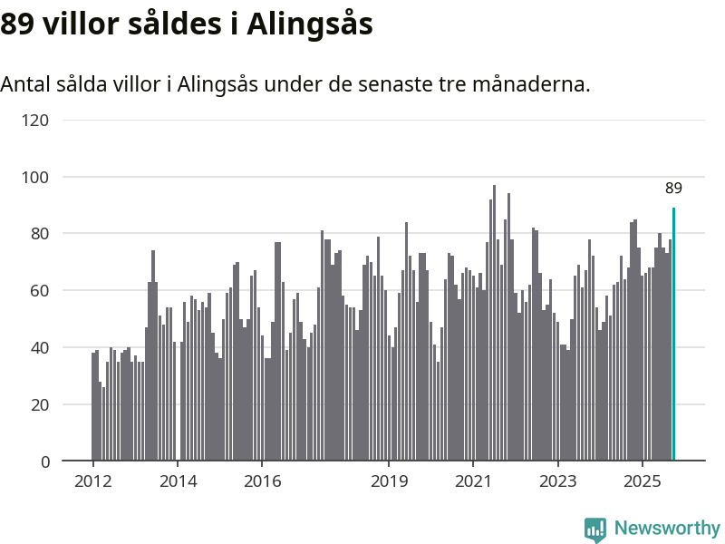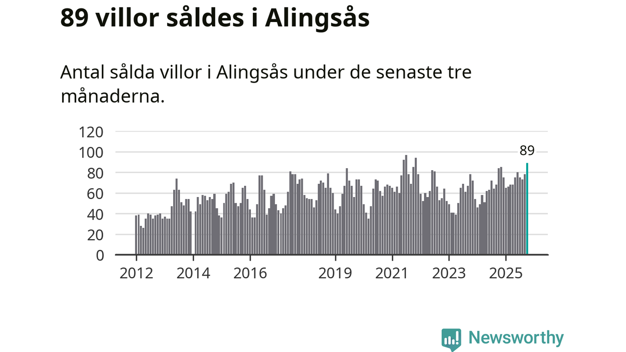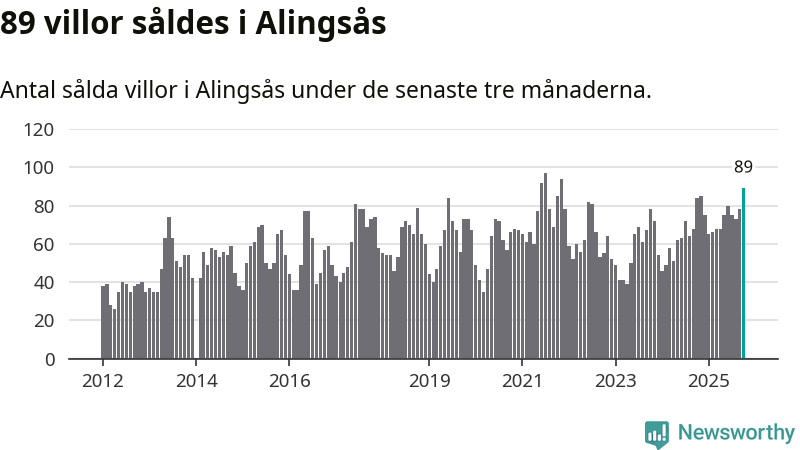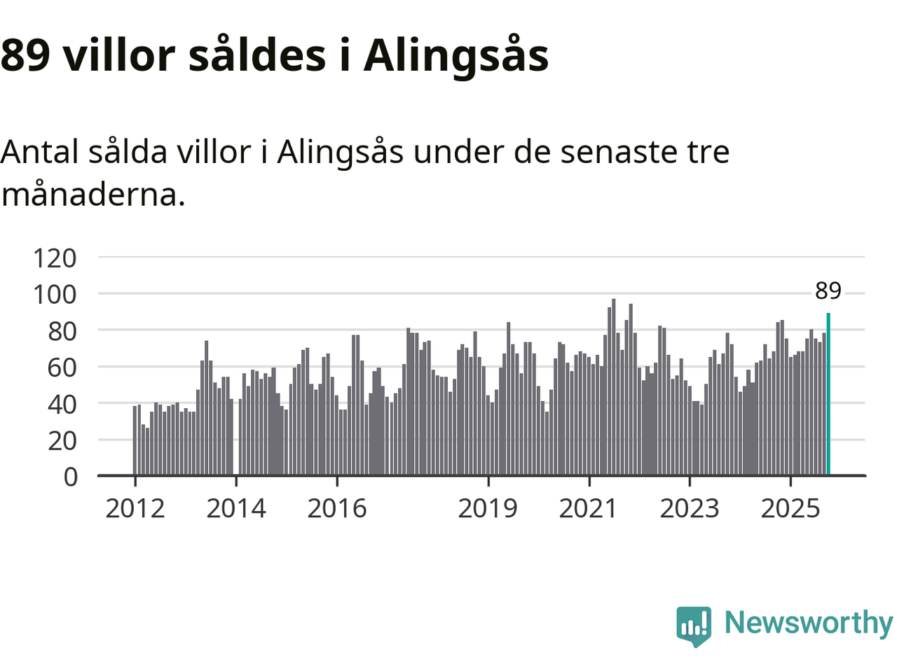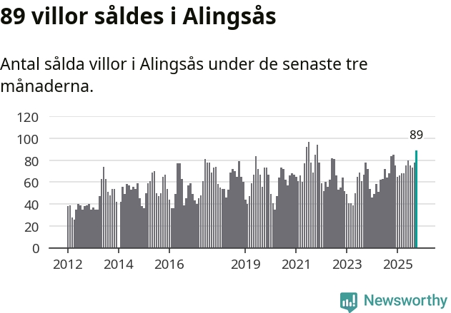 Mellan augusti och oktober såldes 89 villor i Alingsås kommun. Det är fler än någon tremånadersperiod sedan 2021.