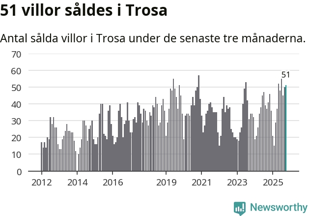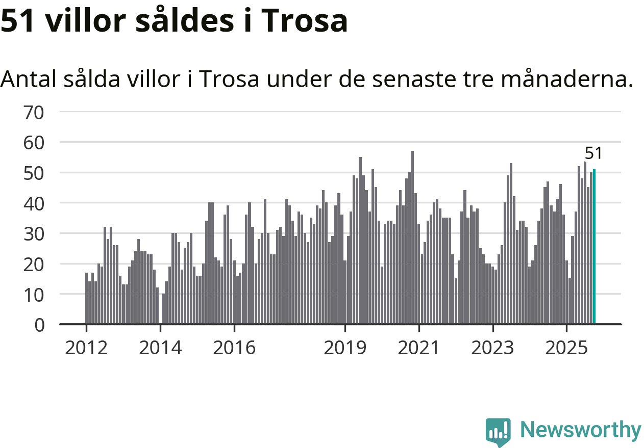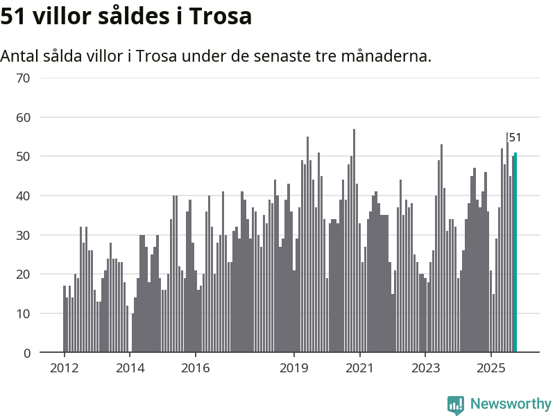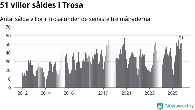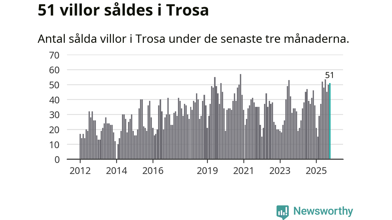 Mellan augusti och oktober gjordes sammanlagt 51 affärer med villor i Trosa kommun. Det kan jämföras med 41 vid motsvarande tid i fjol.