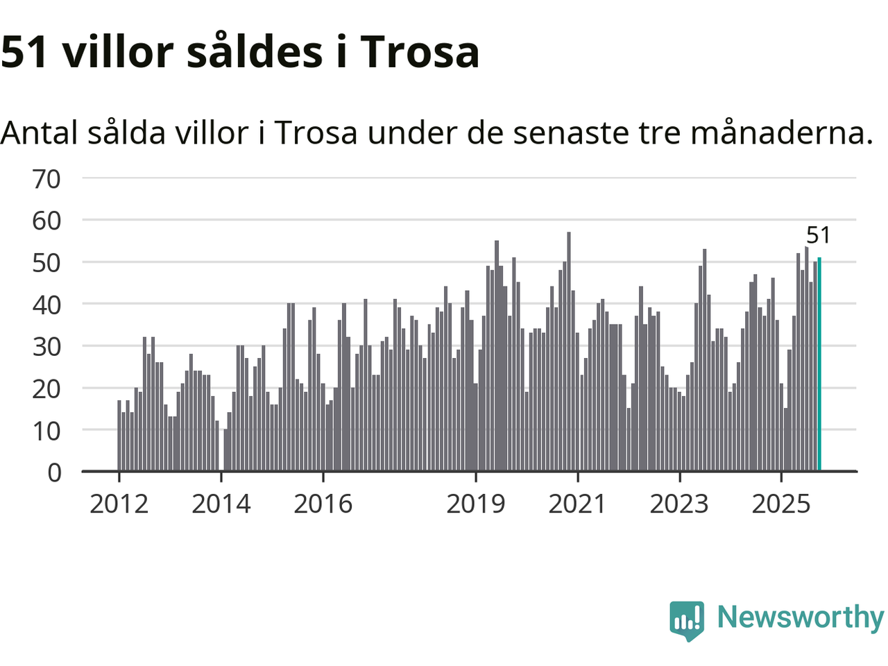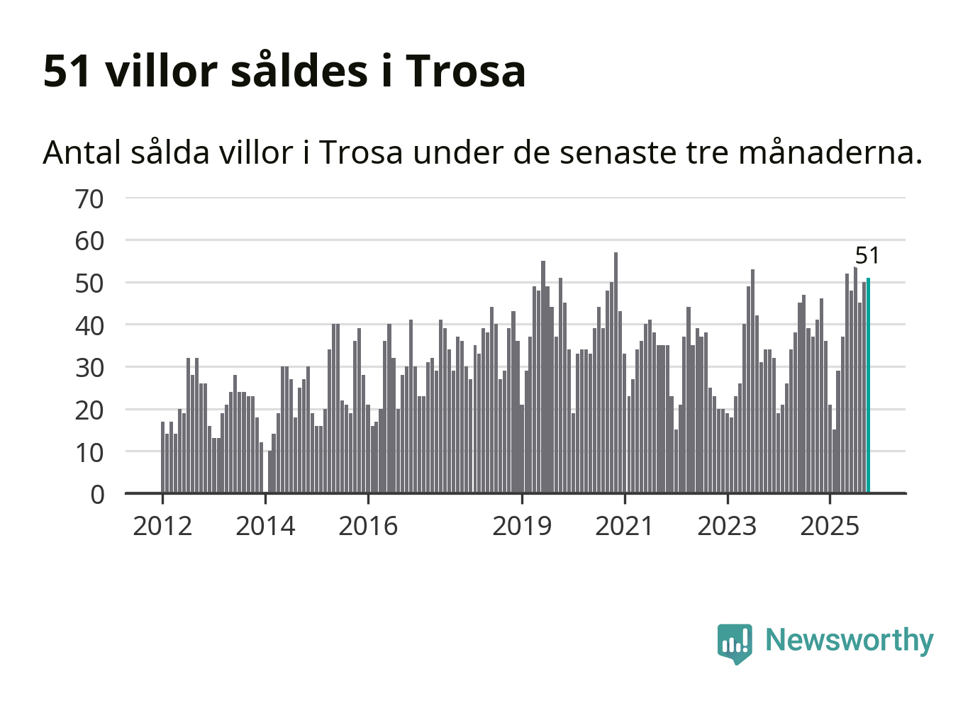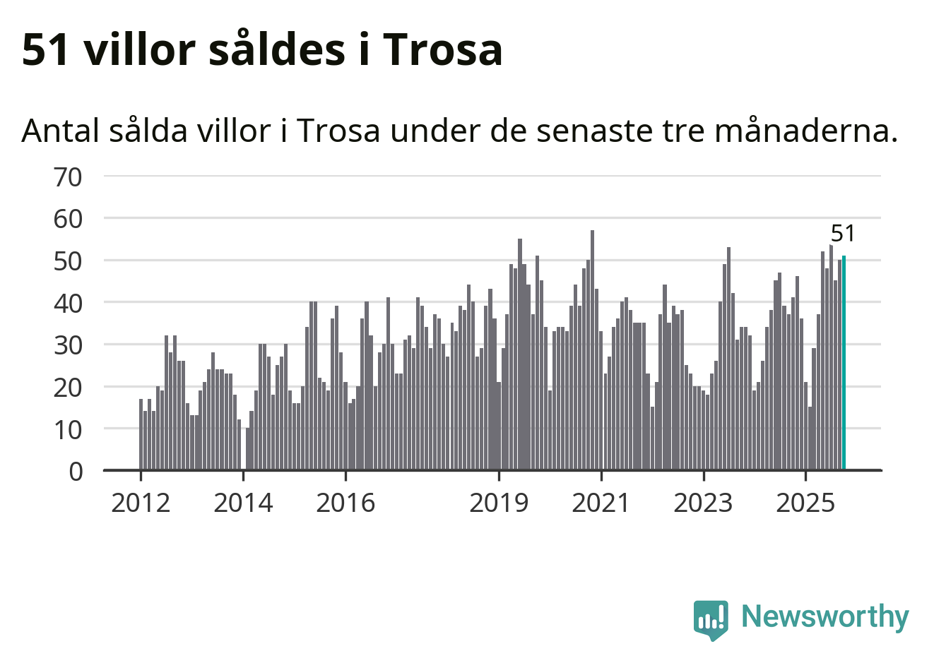 Mellan augusti och oktober gjordes sammanlagt 51 affärer med villor i Trosa kommun. Det kan jämföras med 41 vid motsvarande tid i fjol.