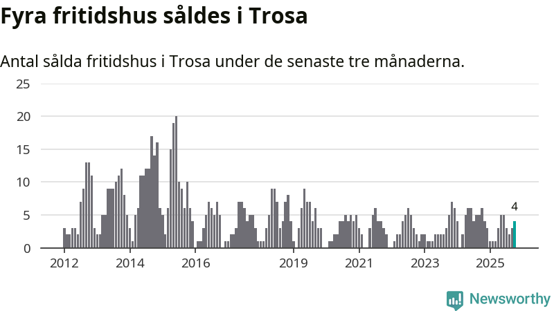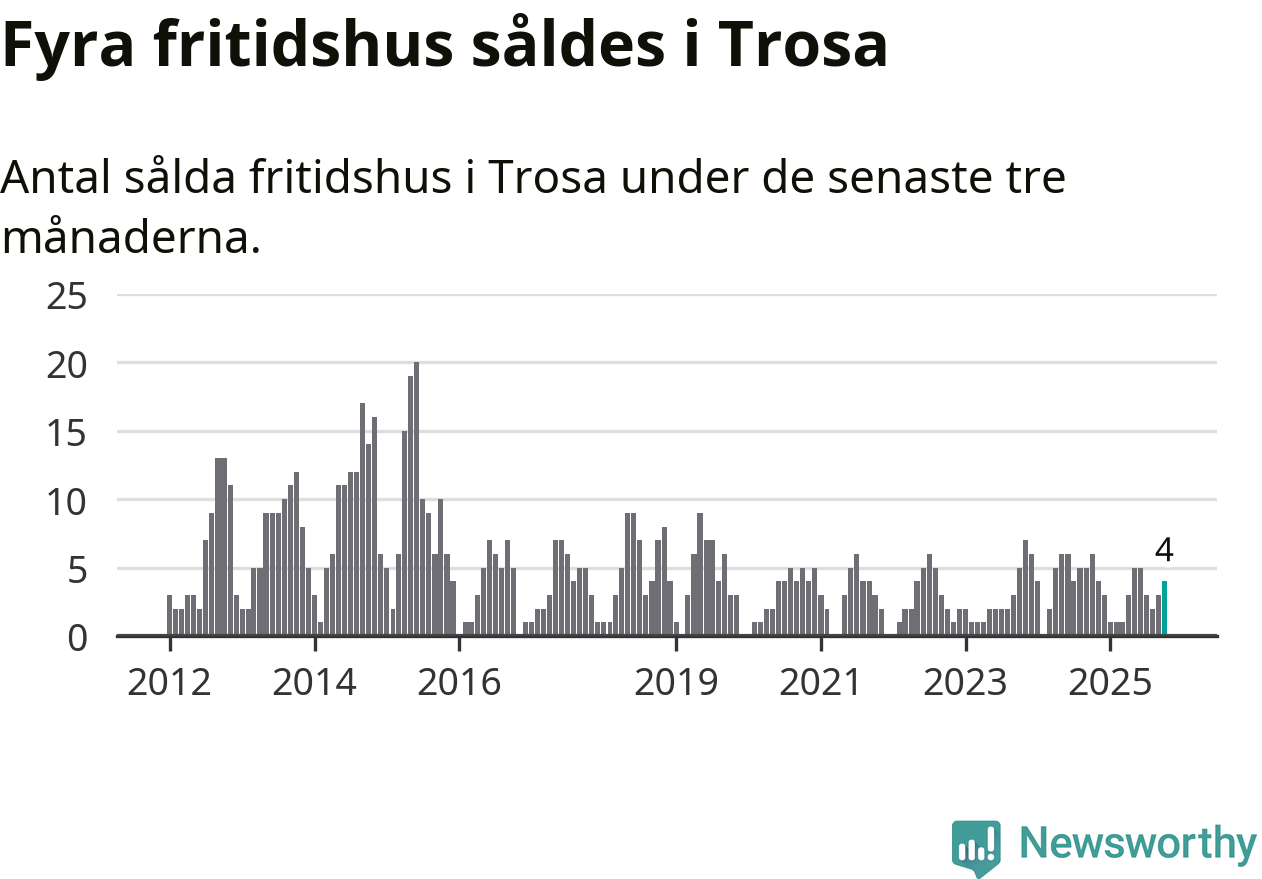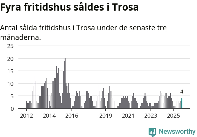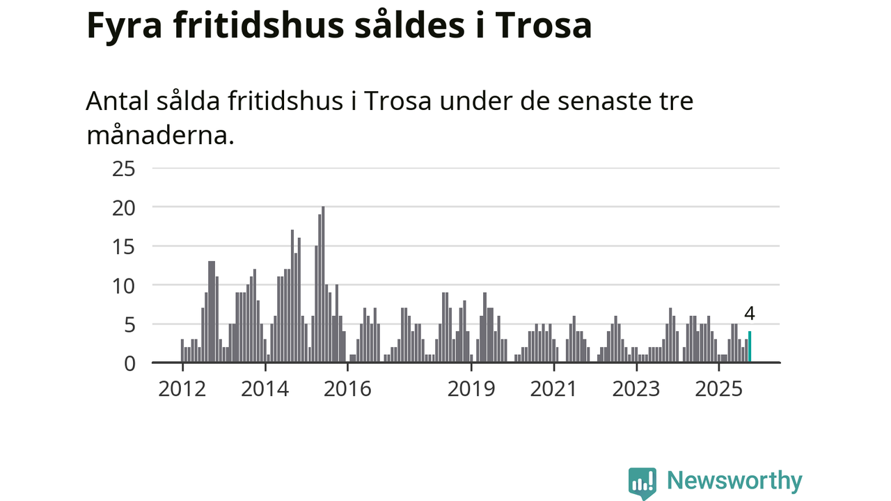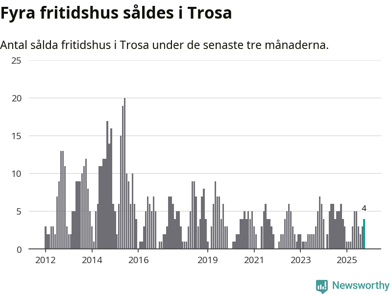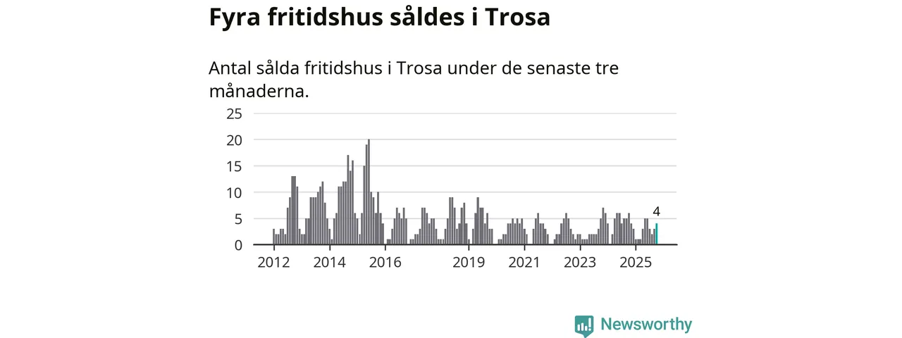 Mellan augusti och oktober gjordes sammanlagt fyra affärer med fritidshus i Trosa kommun. Det kan jämföras med sex vid motsvarande tid i fjol.