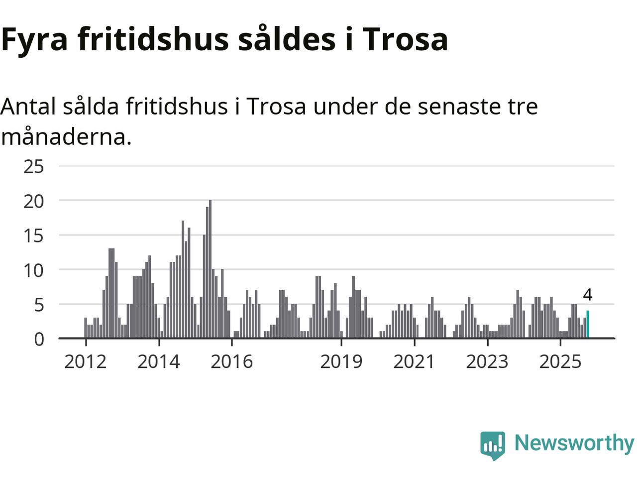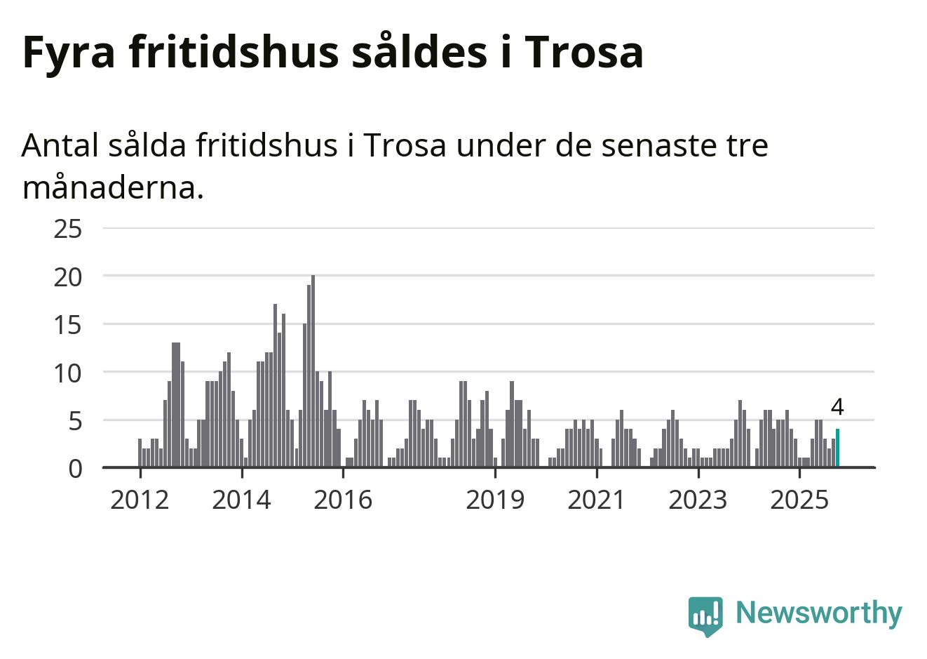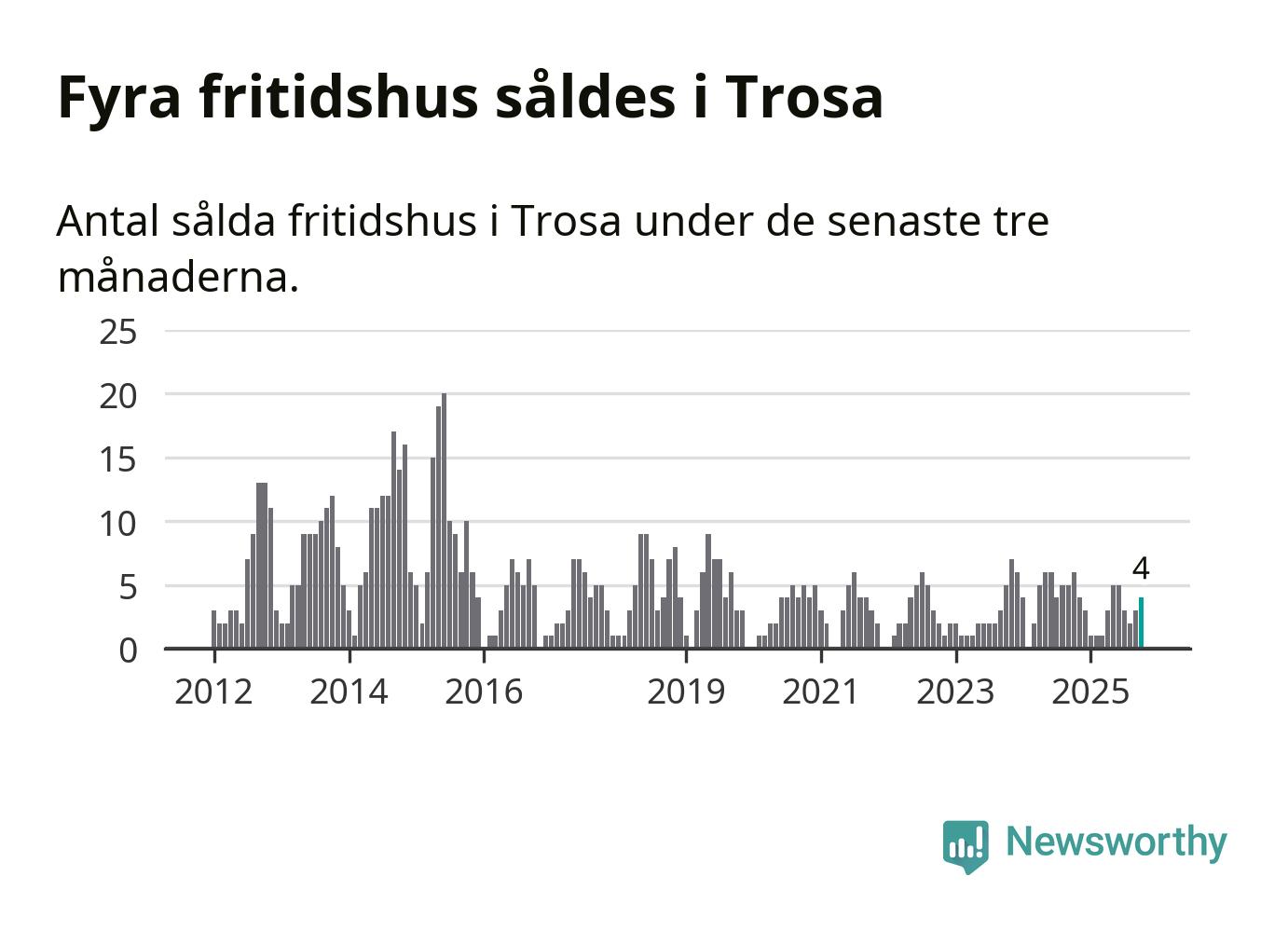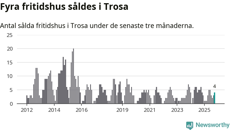 Mellan augusti och oktober gjordes sammanlagt fyra affärer med fritidshus i Trosa kommun. Det kan jämföras med sex vid motsvarande tid i fjol.