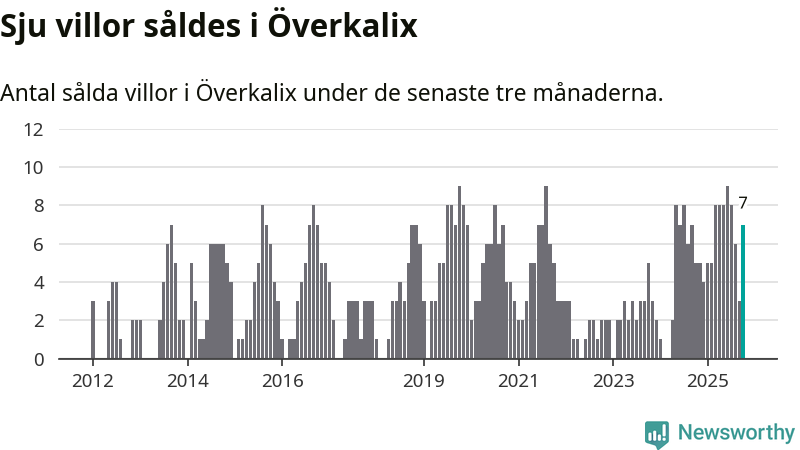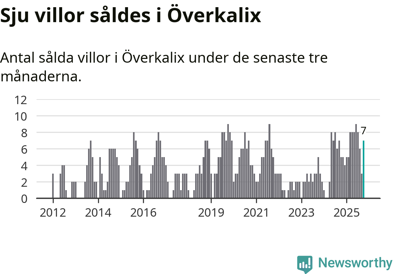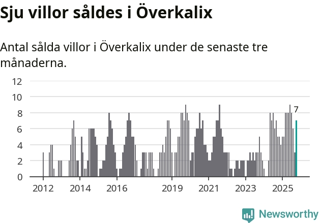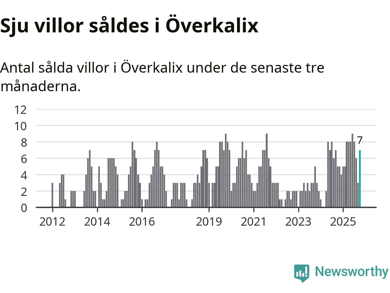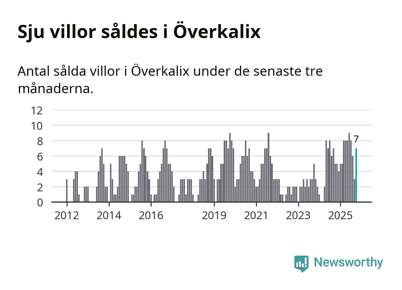 Mellan augusti och oktober gjordes sammanlagt sju affärer med villor i Överkalix kommun. Det kan jämföras med fem vid motsvarande tid i fjol.