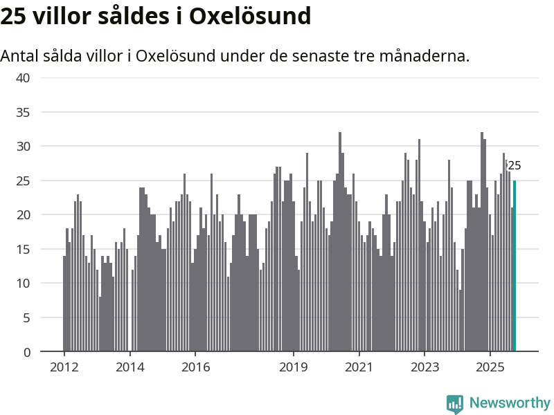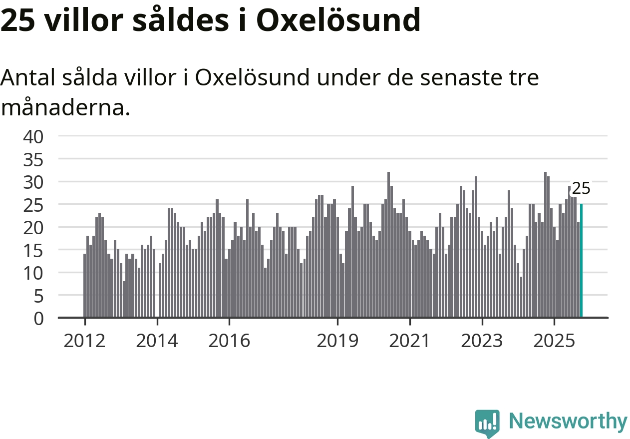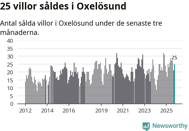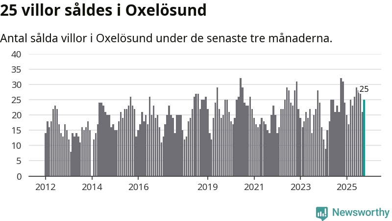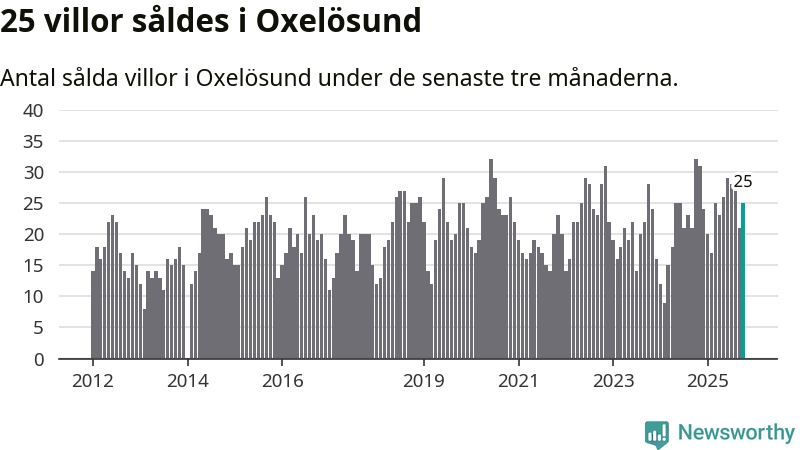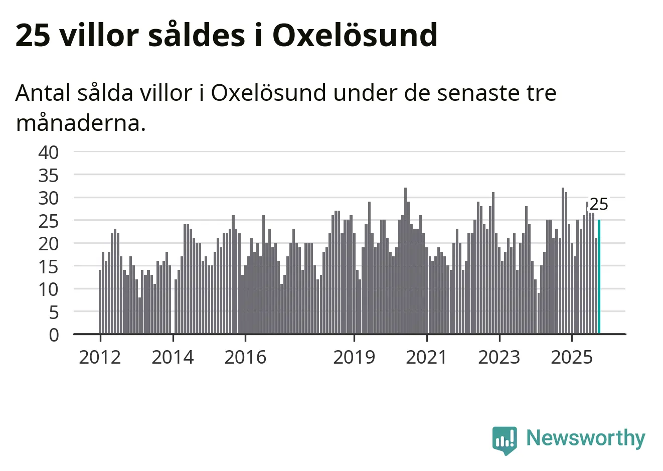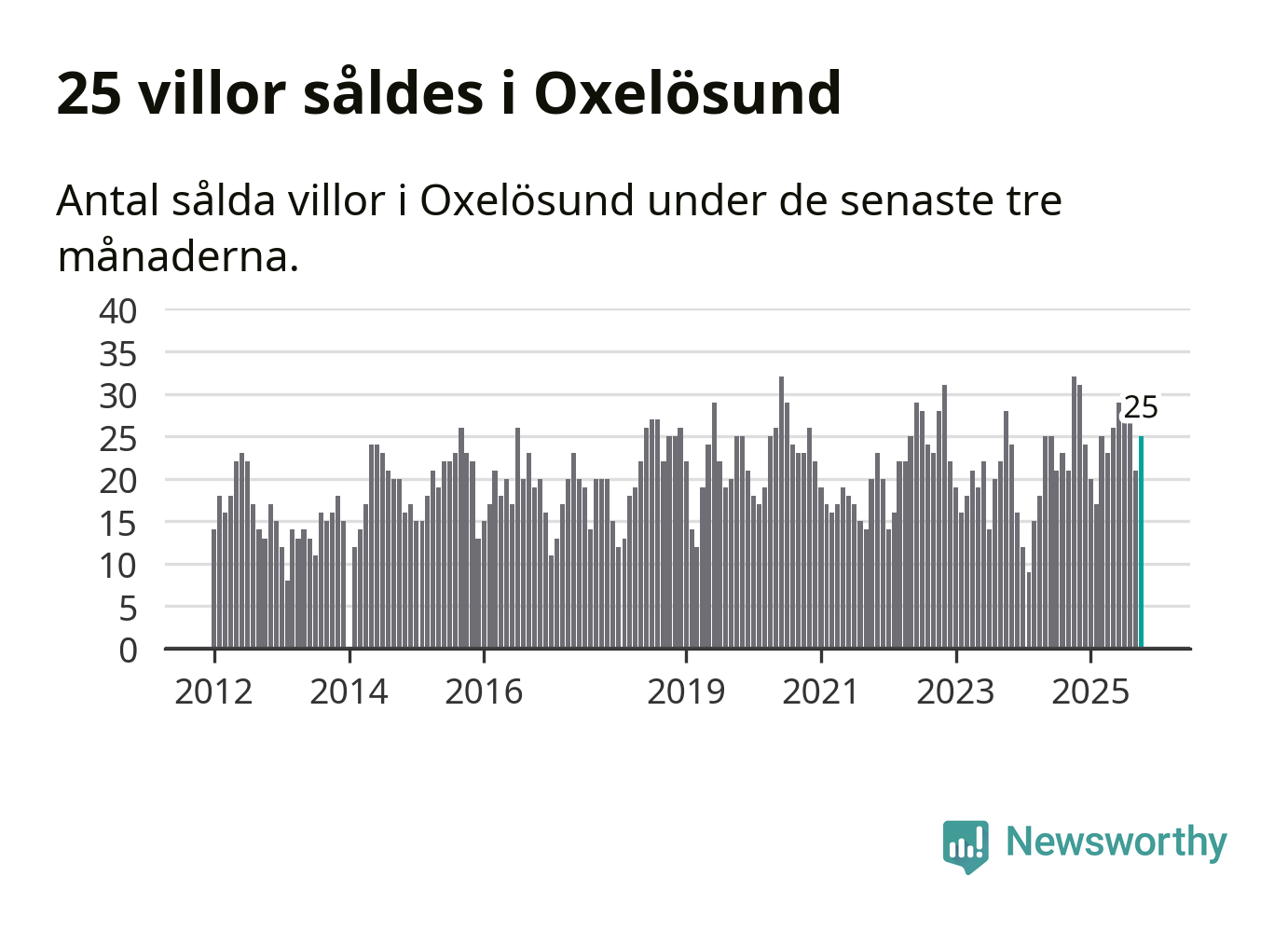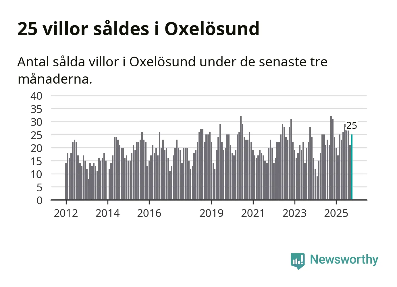 Mellan augusti och oktober gjordes sammanlagt 25 affärer med villor i Oxelösunds kommun. Det kan jämföras med 32 vid motsvarande tid i fjol.