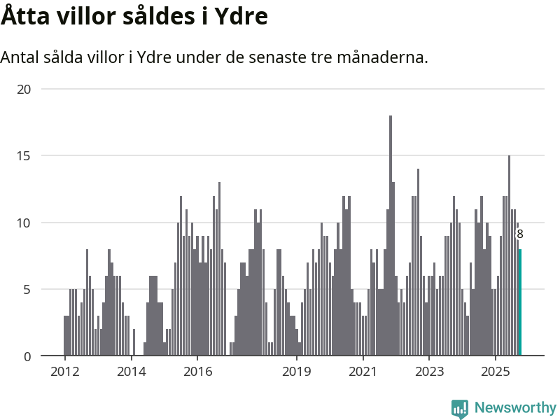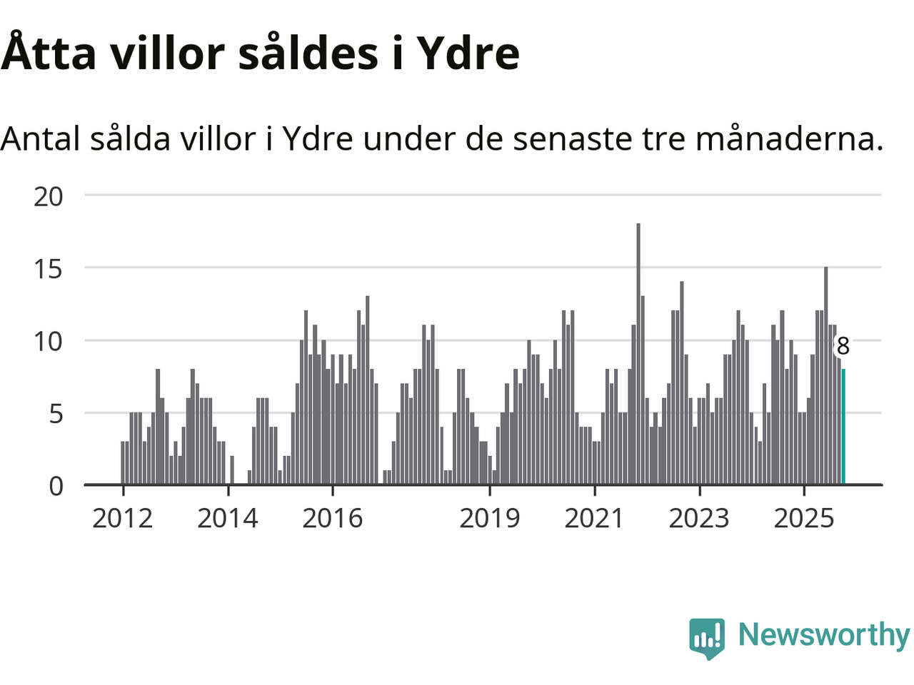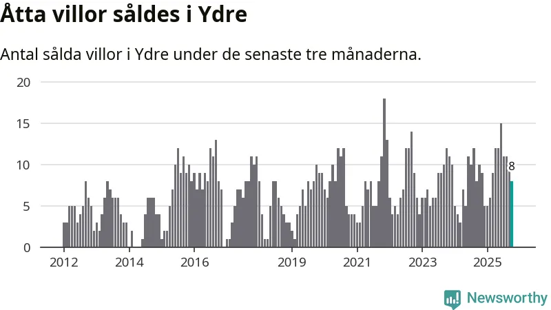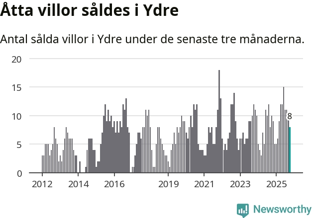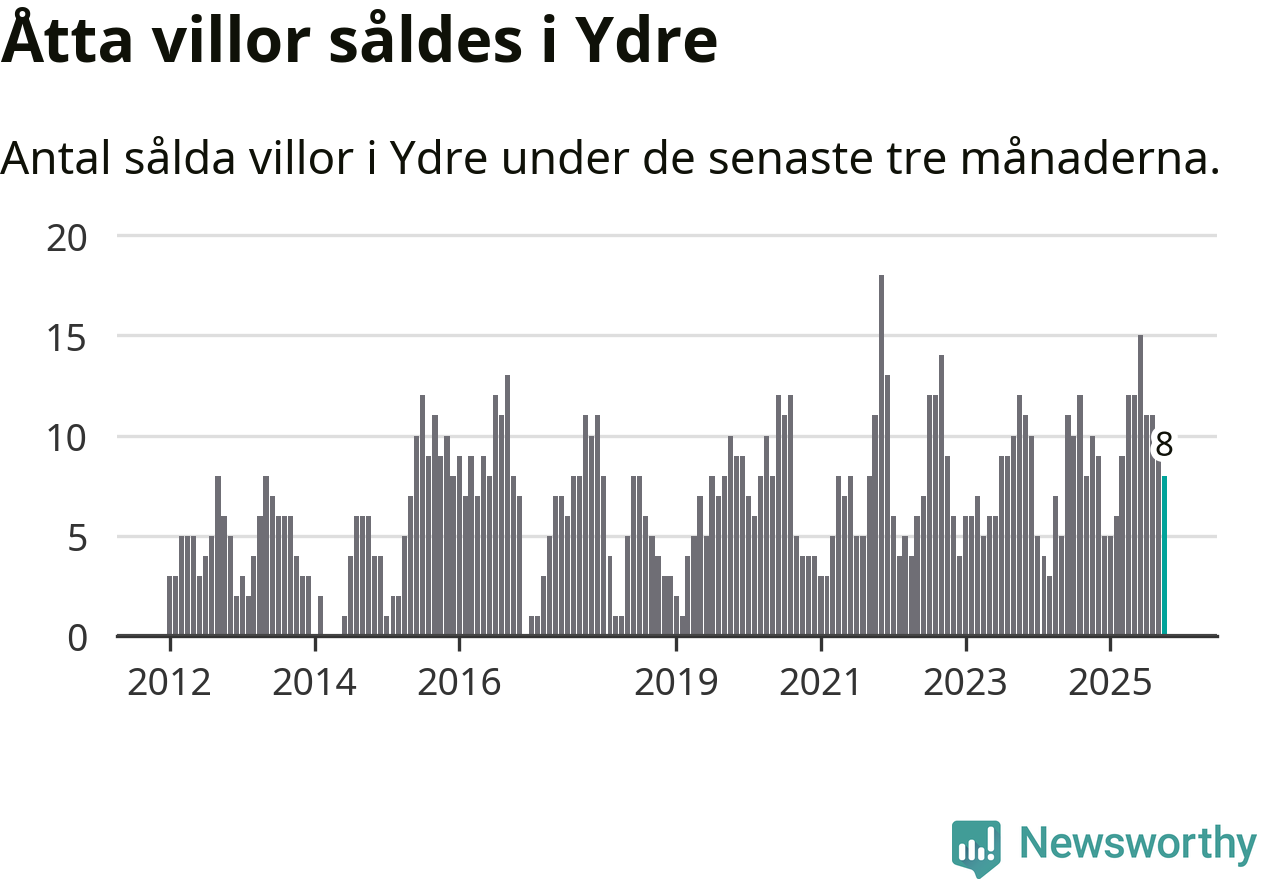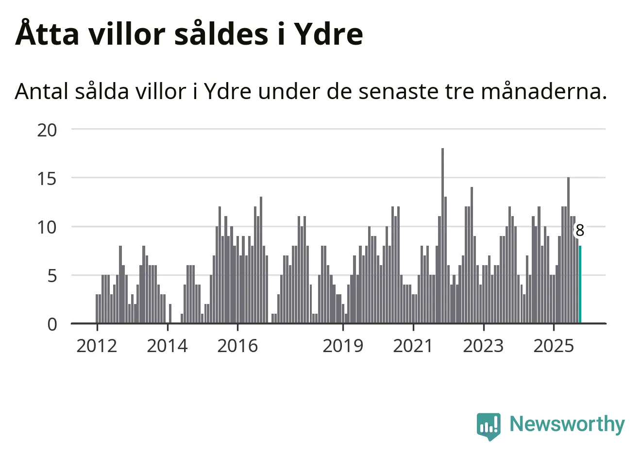 Mellan augusti och oktober gjordes sammanlagt åtta affärer med villor i Ydre kommun. Det kan jämföras med tio vid motsvarande tid i fjol.