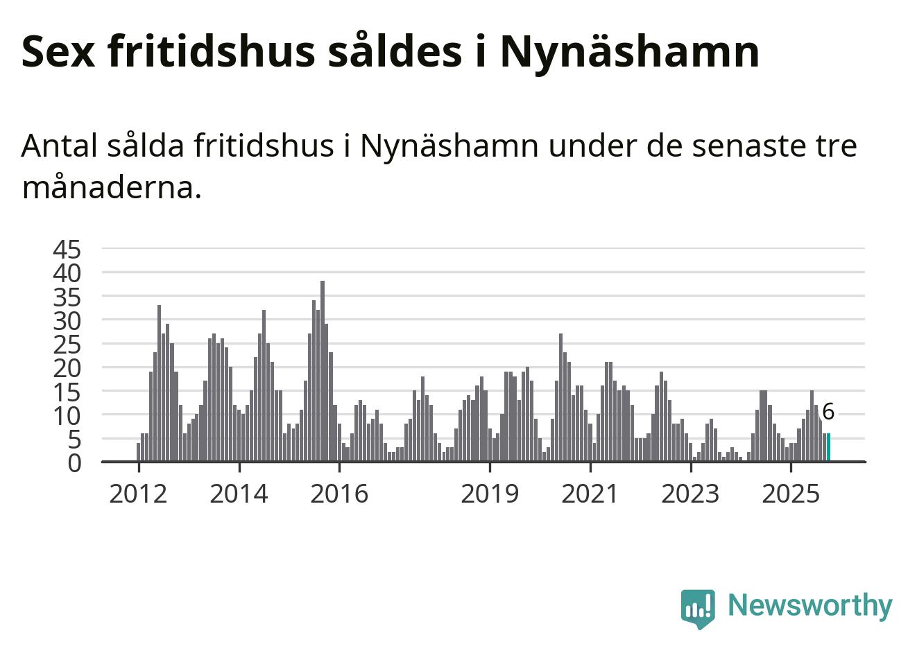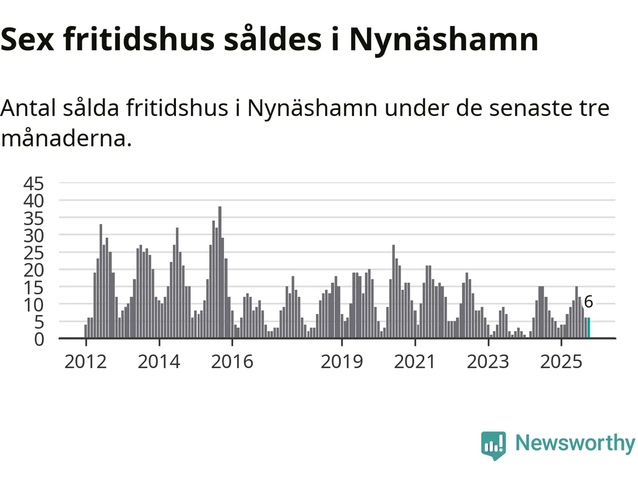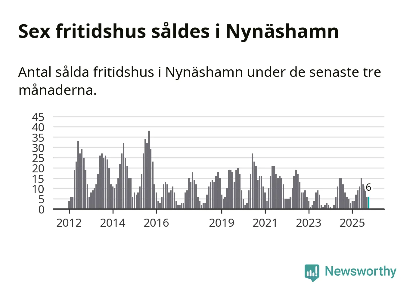 Sammanlagt såldes sex fritidshus i Nynäshamns kommun mellan augusti och oktober till ett genomsnittligt pris på 2,9 miljoner kronor. I fjol gjordes sex affärer vid den här tiden på året.