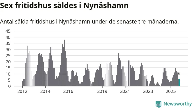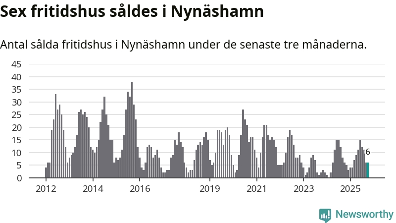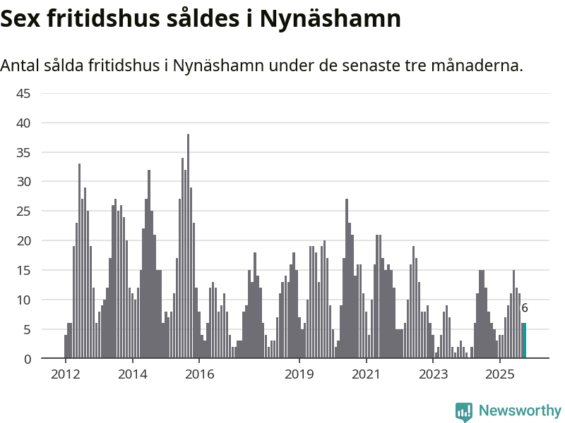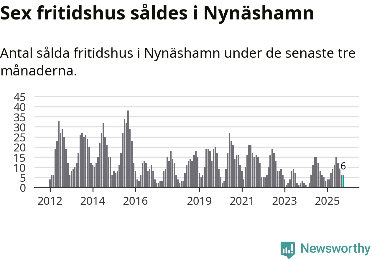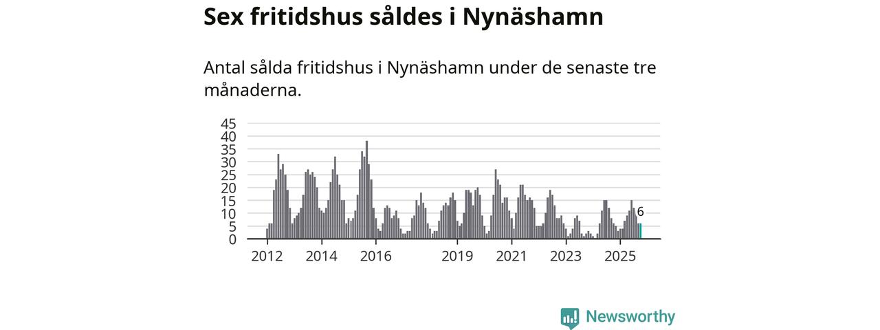 Sammanlagt såldes sex fritidshus i Nynäshamns kommun mellan augusti och oktober till ett genomsnittligt pris på 2,9 miljoner kronor. I fjol gjordes sex affärer vid den här tiden på året.