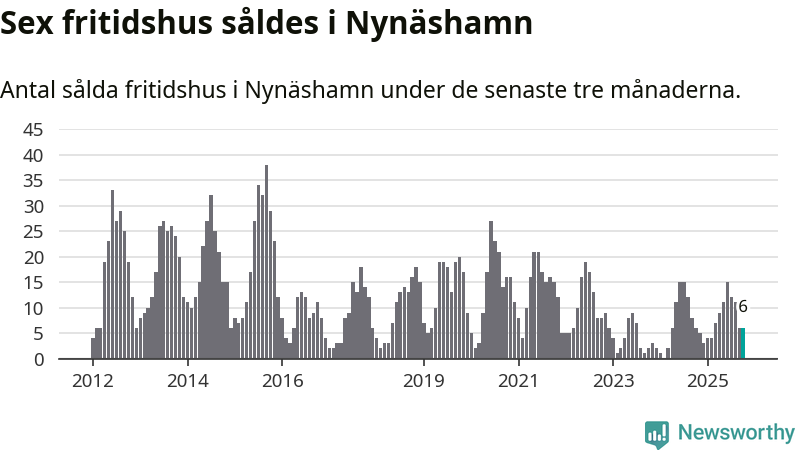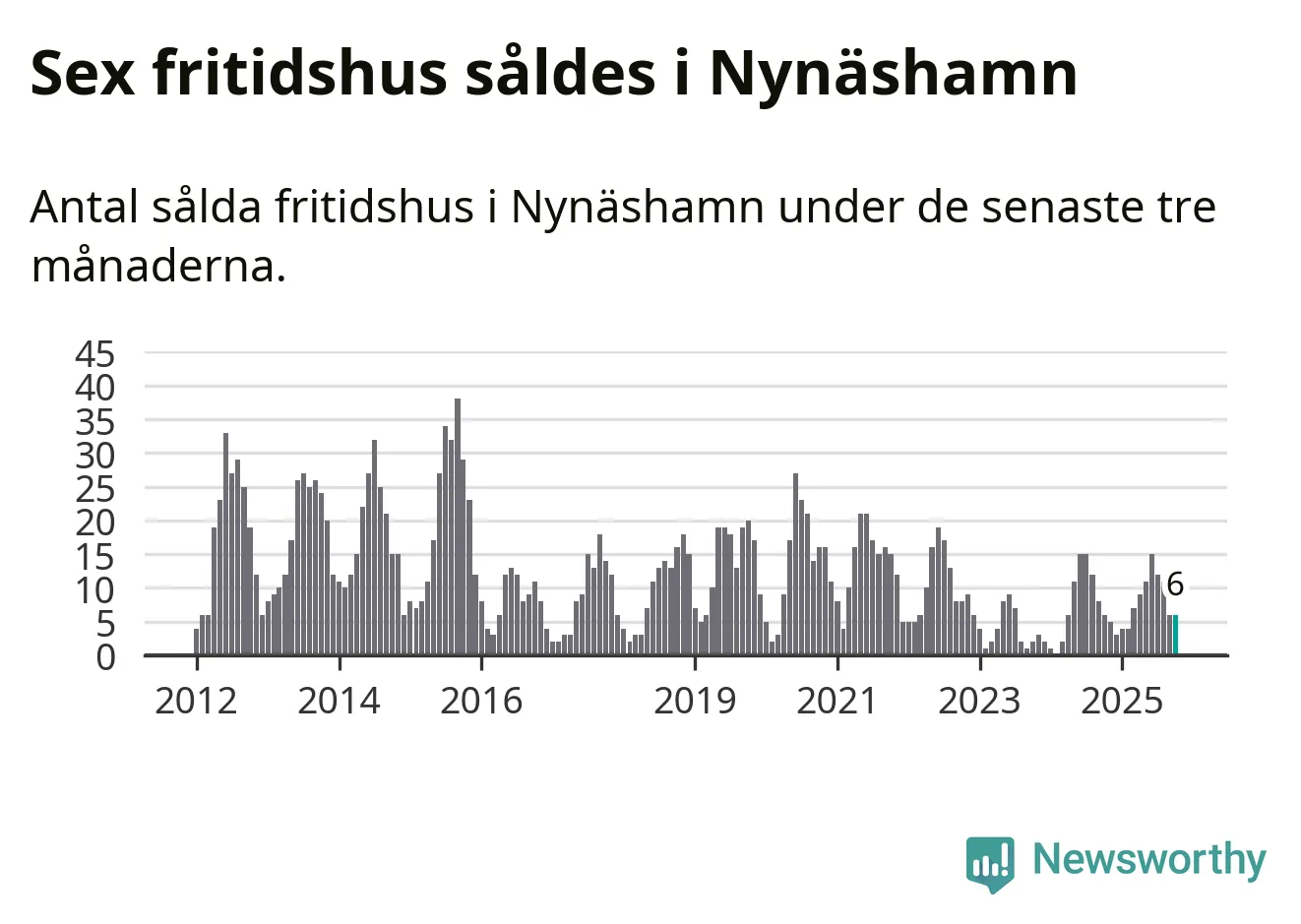 Graf: Antal sålda fritidshus i Nynäshamns kommun