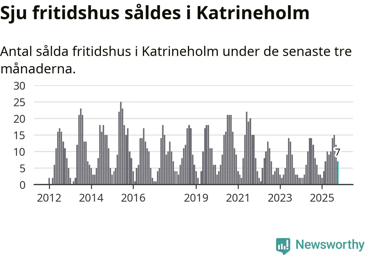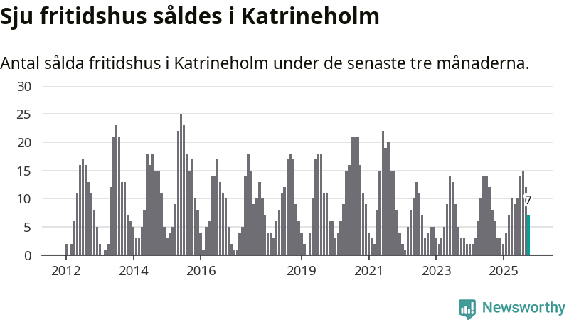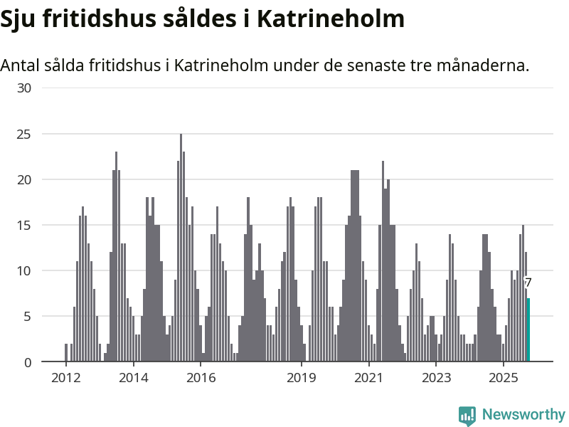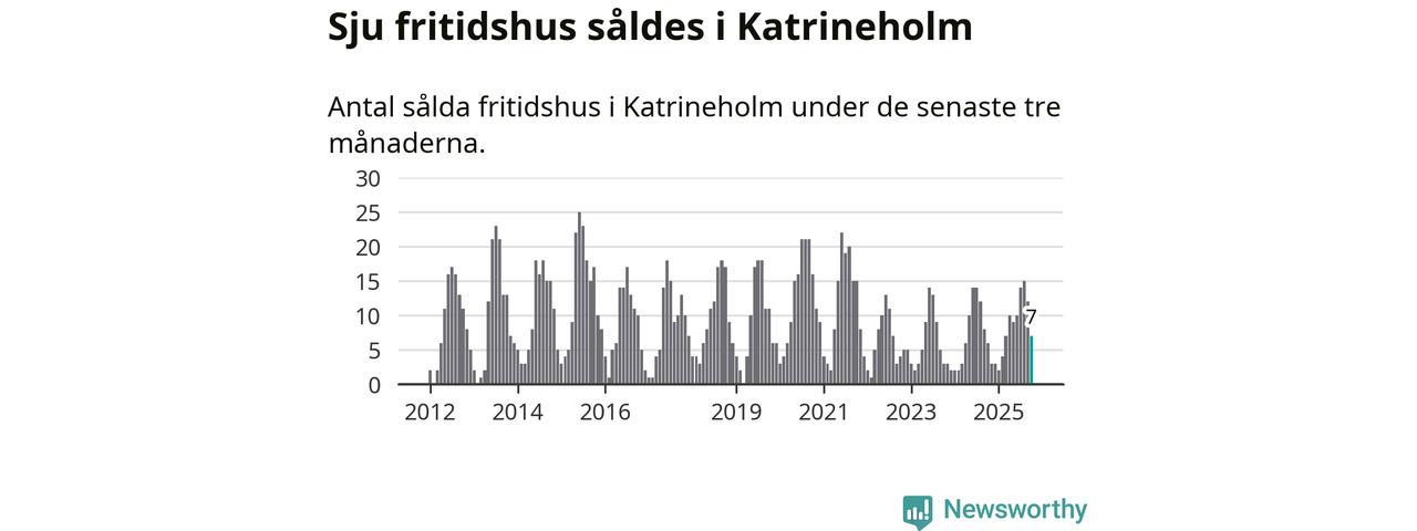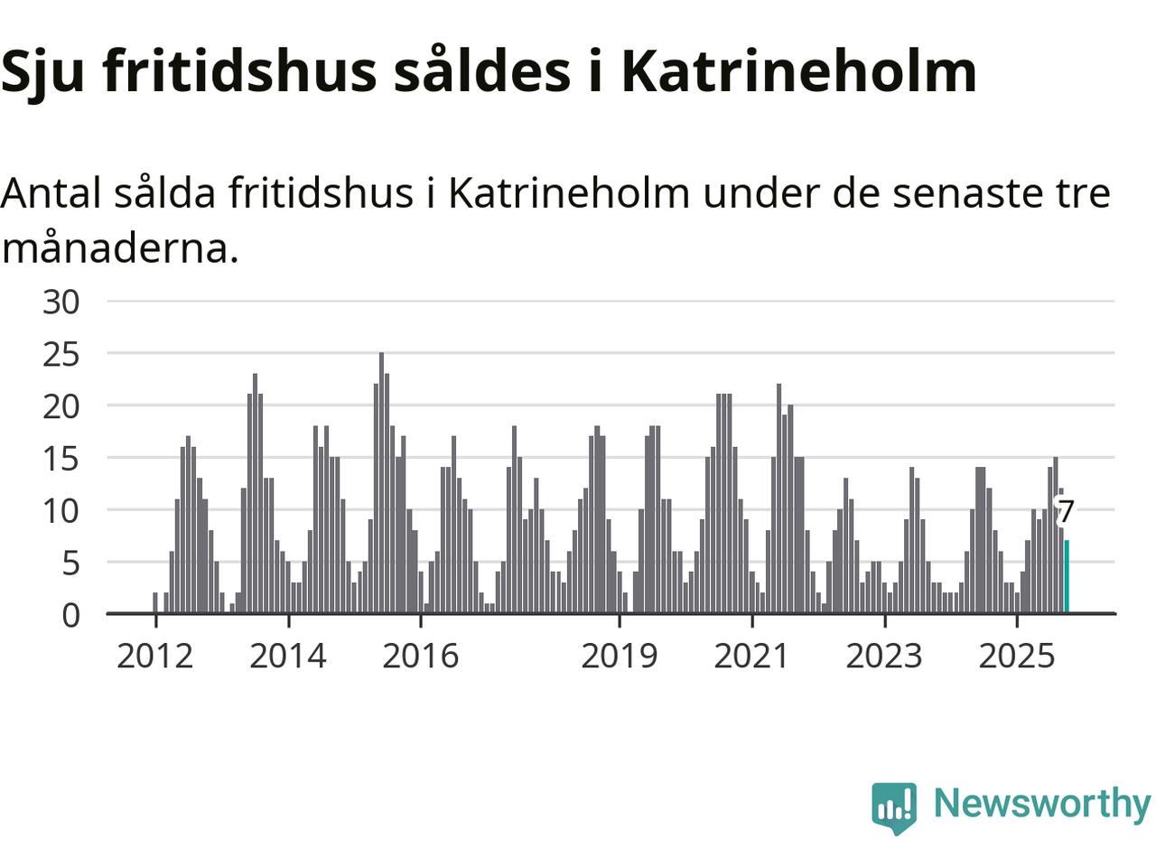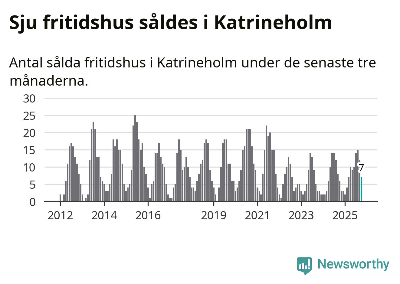Sammanlagt såldes sju fritidshus i Katrineholms kommun mellan augusti och oktober till ett genomsnittligt pris på 1,6 miljoner kronor. I fjol gjordes sex affärer vid den här tiden på året.
