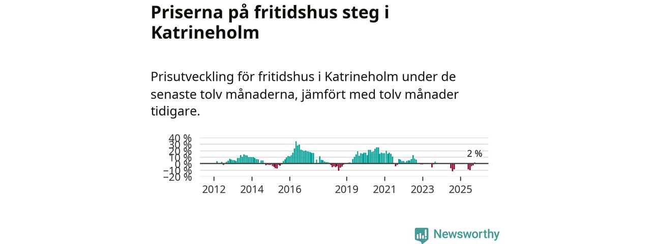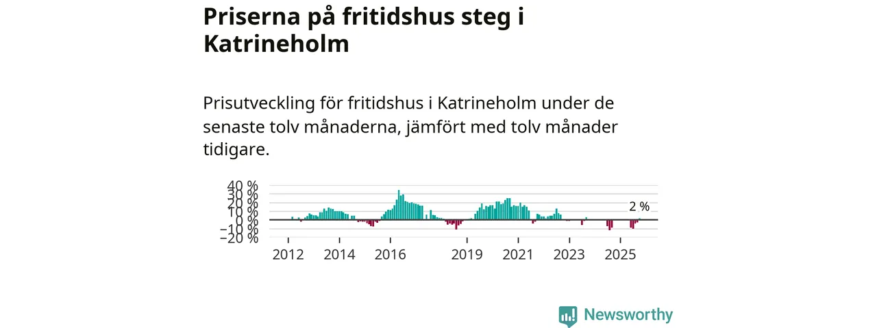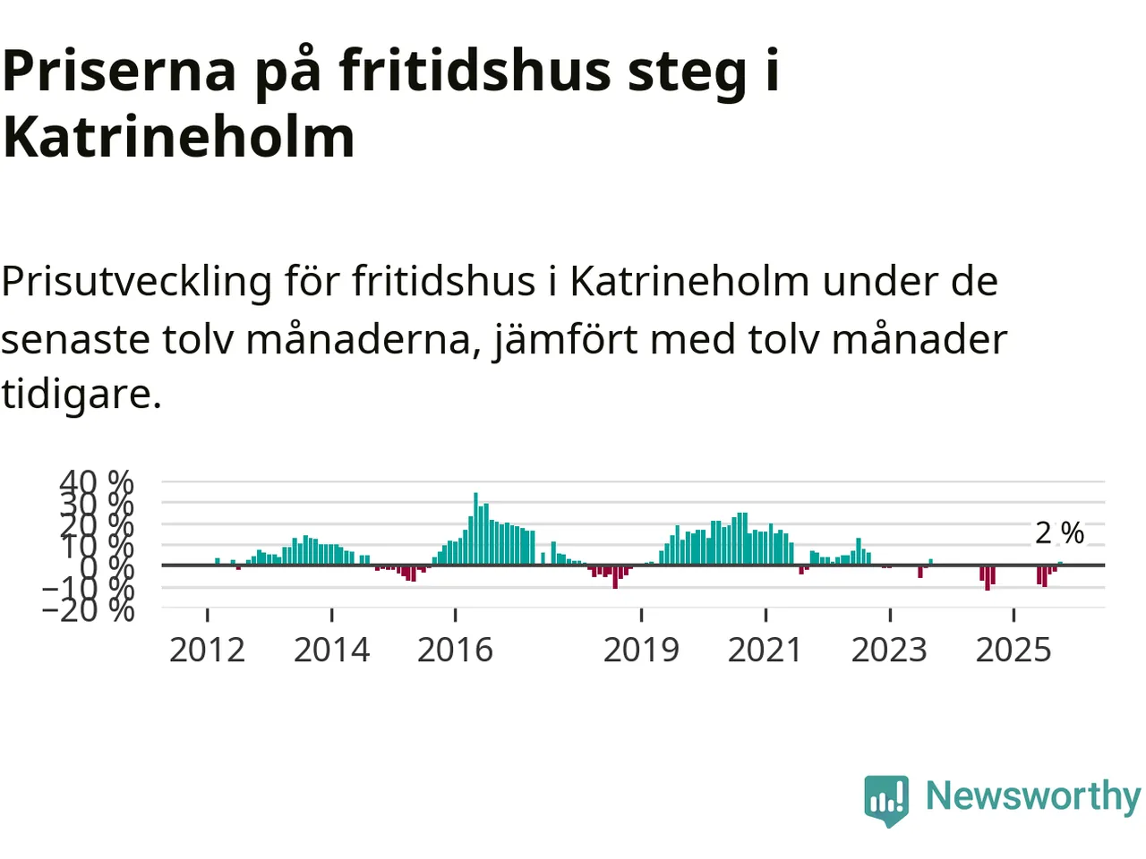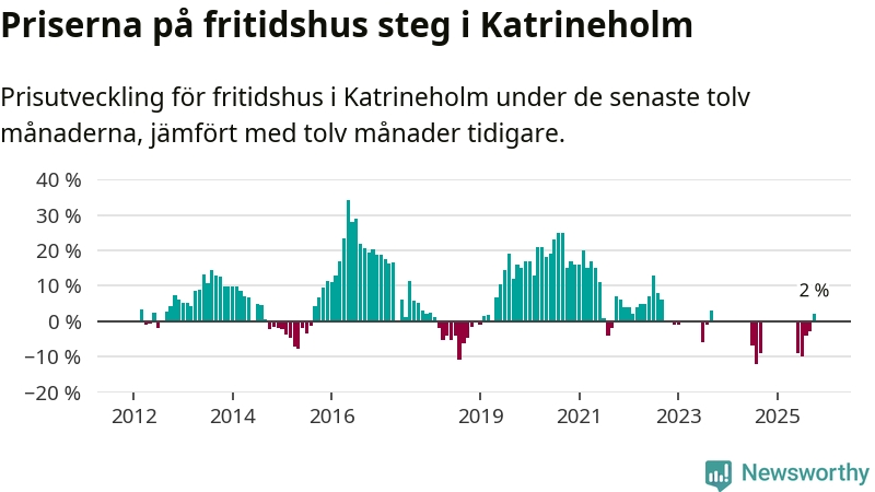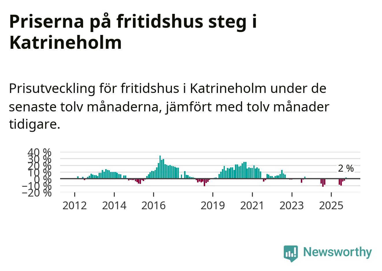 Priserna på fritidshus har gått upp i Katrineholms kommun. Medelpriset på försäljningarna under de senaste tolv månaderna visar på en uppgång med 2 procent.