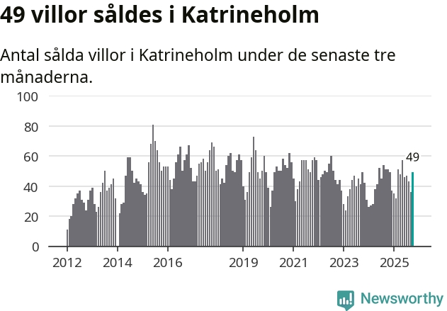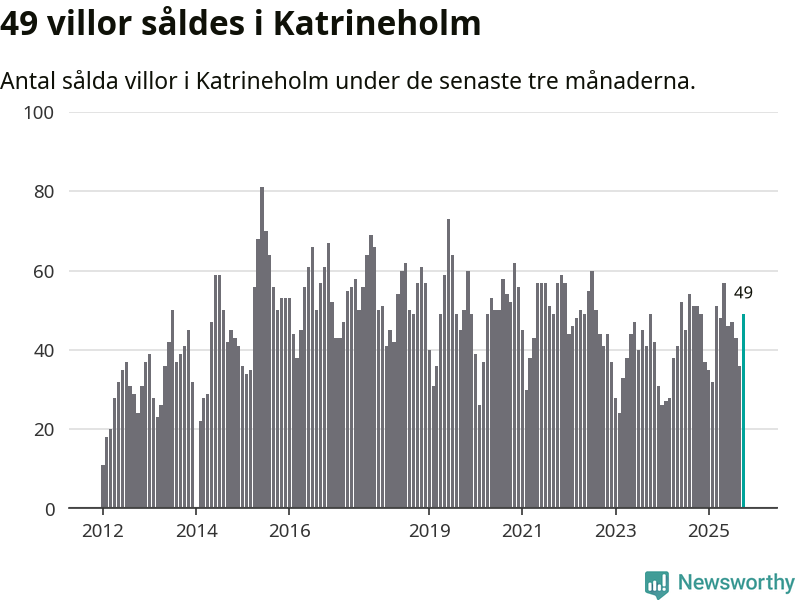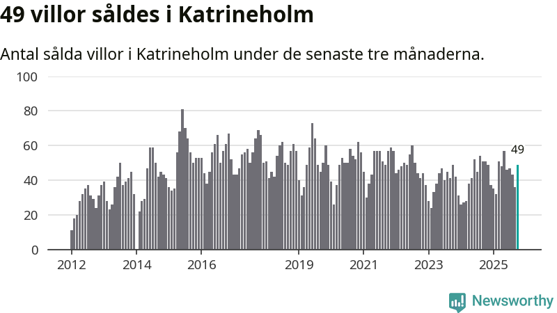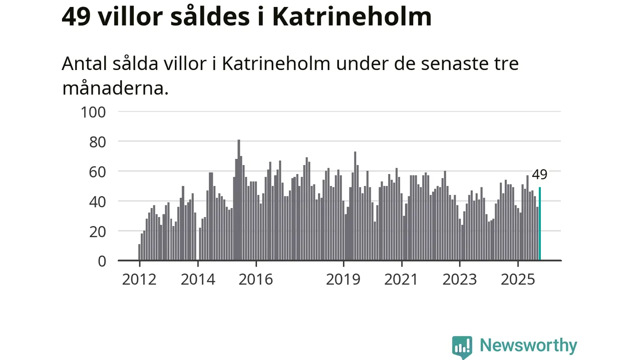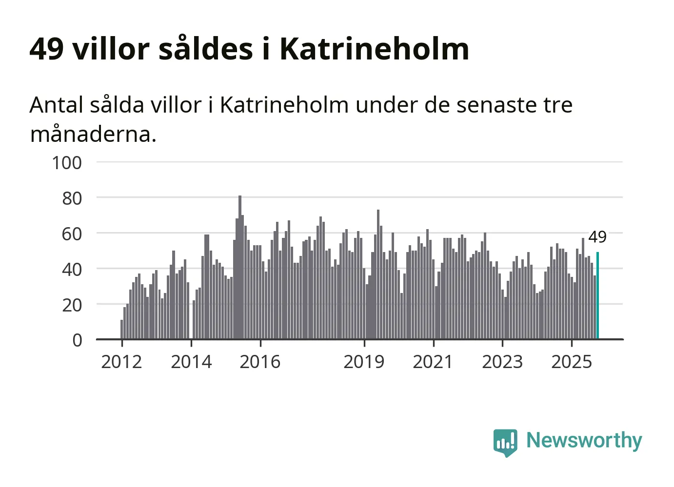 Sammanlagt såldes 49 villor i Katrineholms kommun mellan augusti och oktober till ett genomsnittligt pris på 2,6 miljoner kronor. I fjol gjordes 51 affärer vid den här tiden på året.