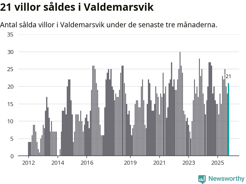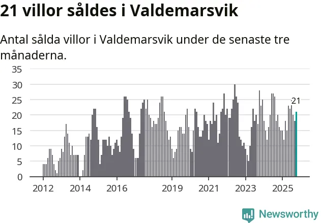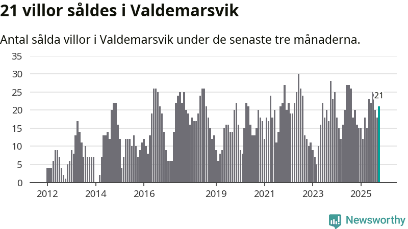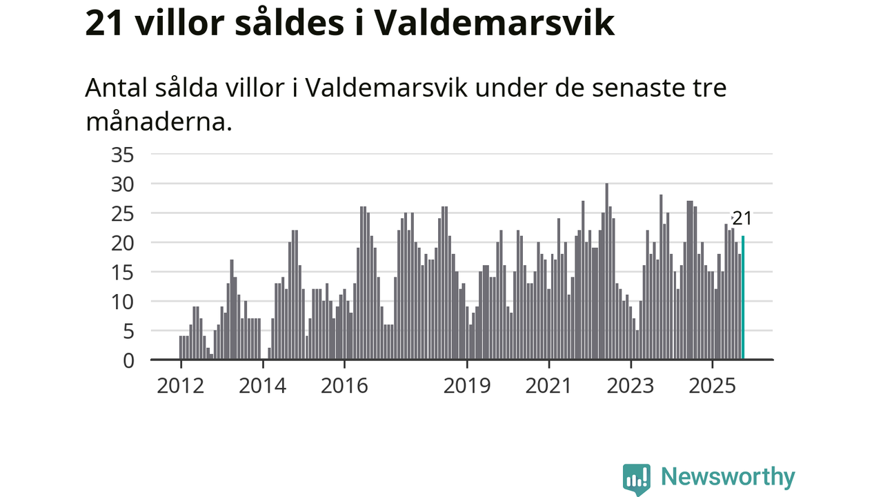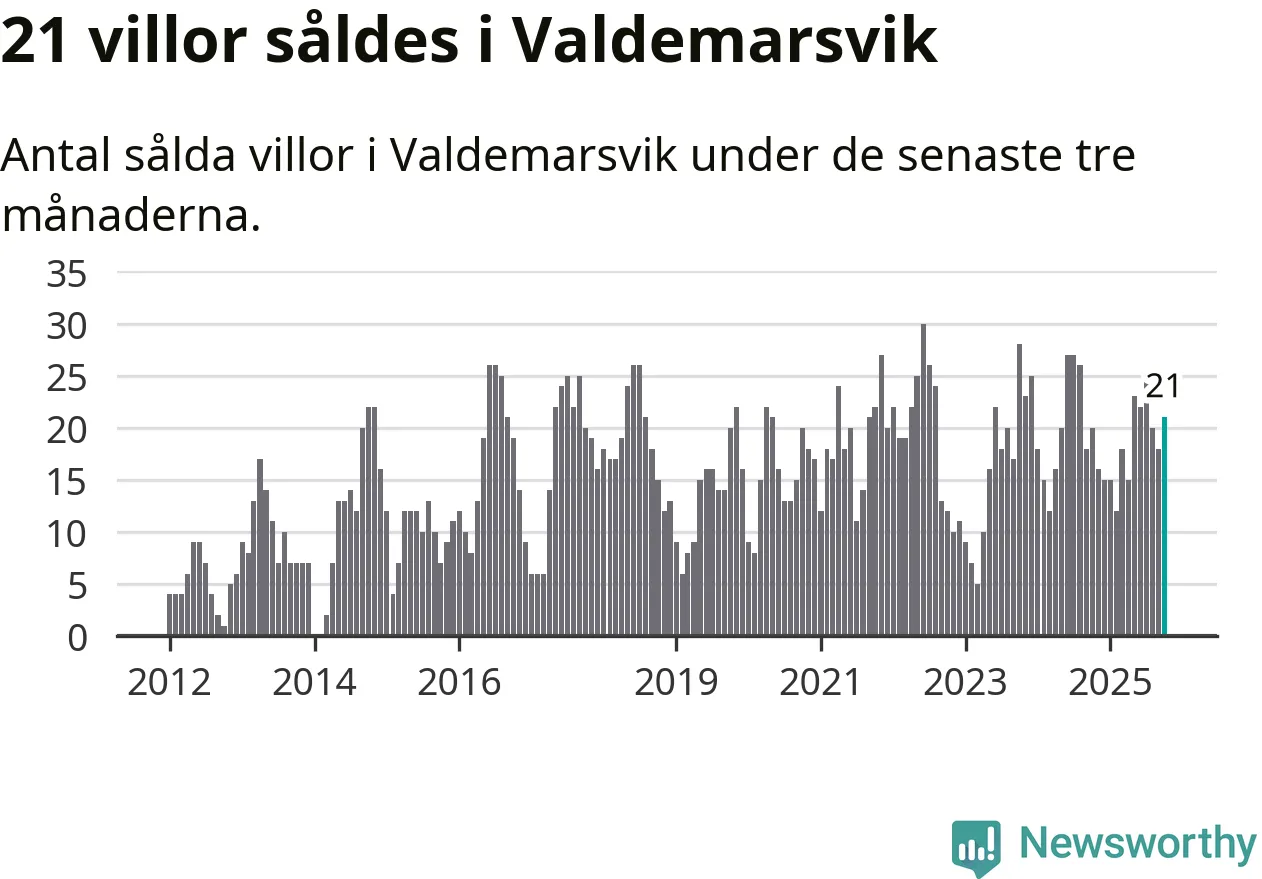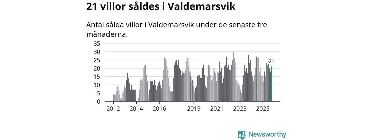 Mellan augusti och oktober gjordes sammanlagt 21 affärer med villor i Valdemarsviks kommun. Det kan jämföras med 20 vid motsvarande tid i fjol.