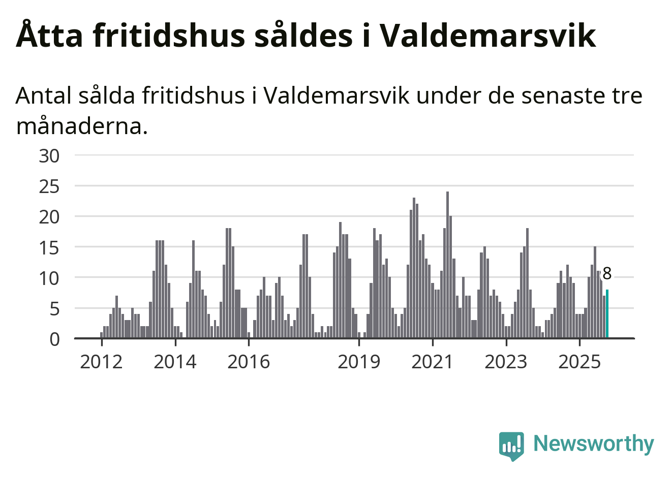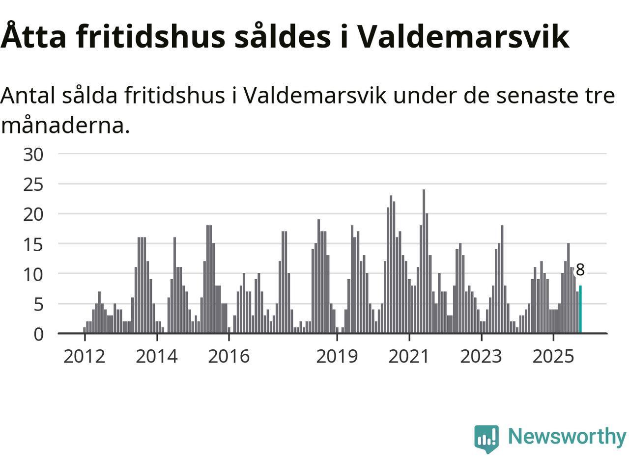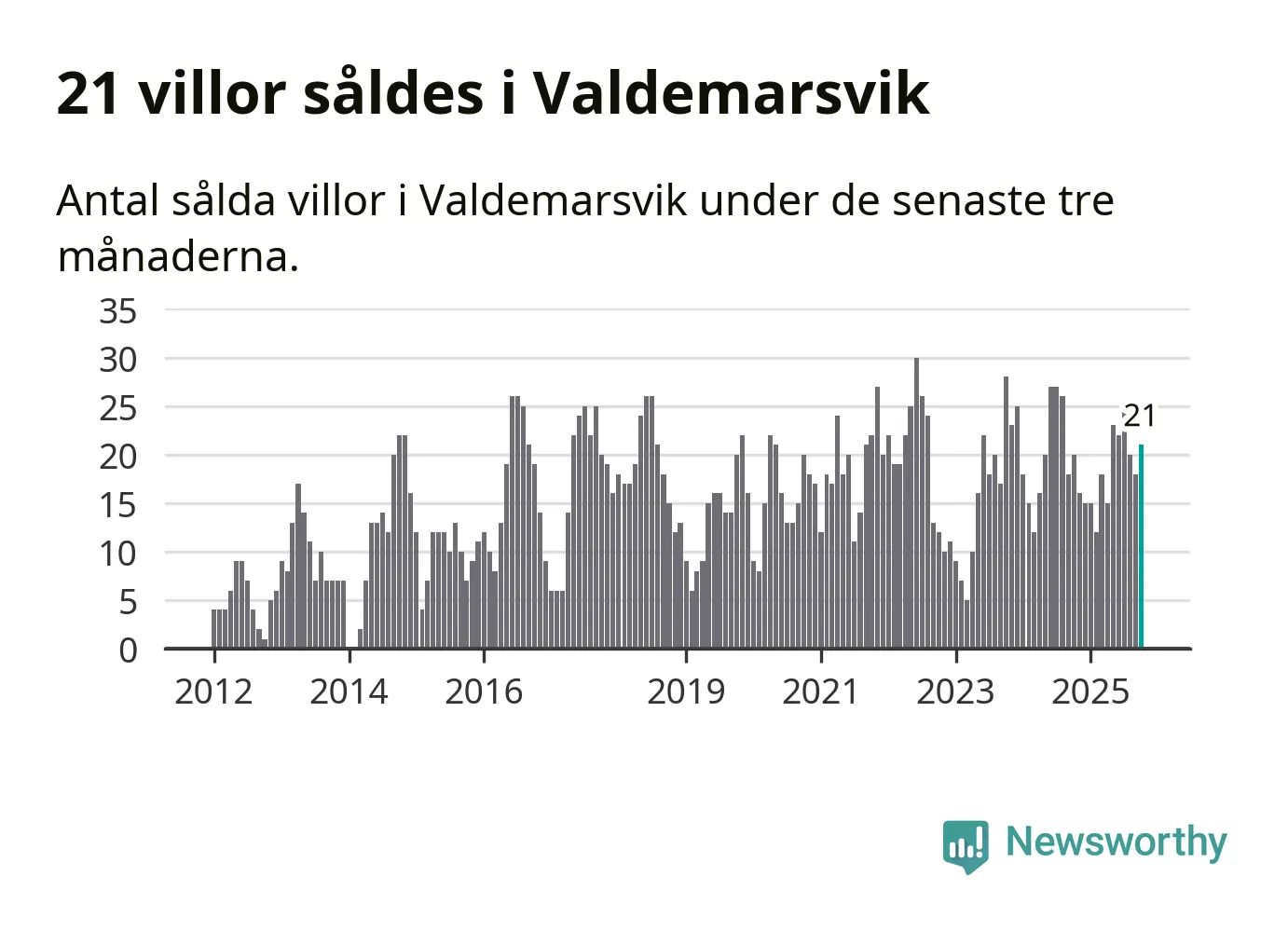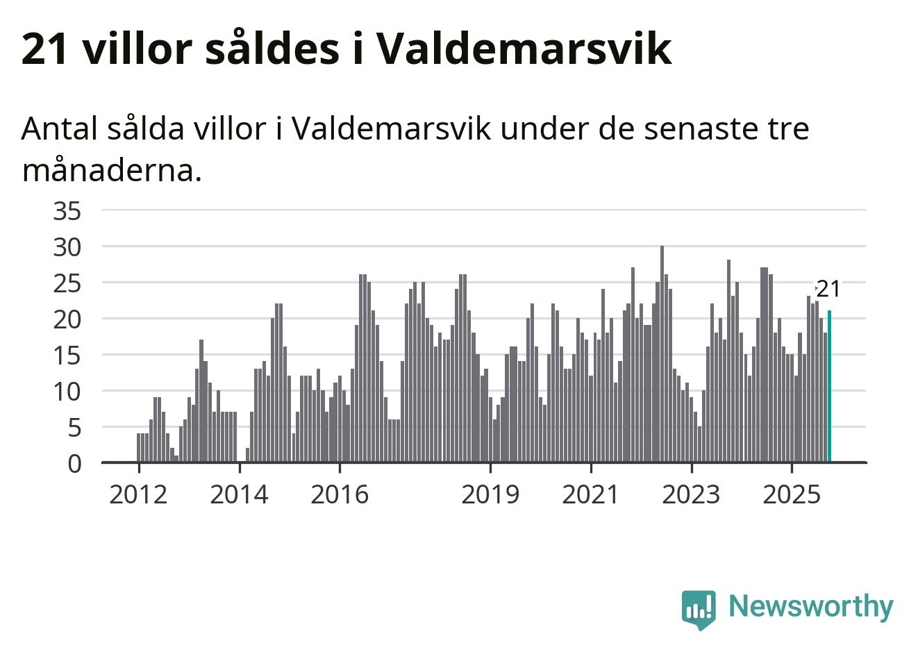 Mellan augusti och oktober gjordes sammanlagt 21 affärer med villor i Valdemarsviks kommun. Det kan jämföras med 20 vid motsvarande tid i fjol.
