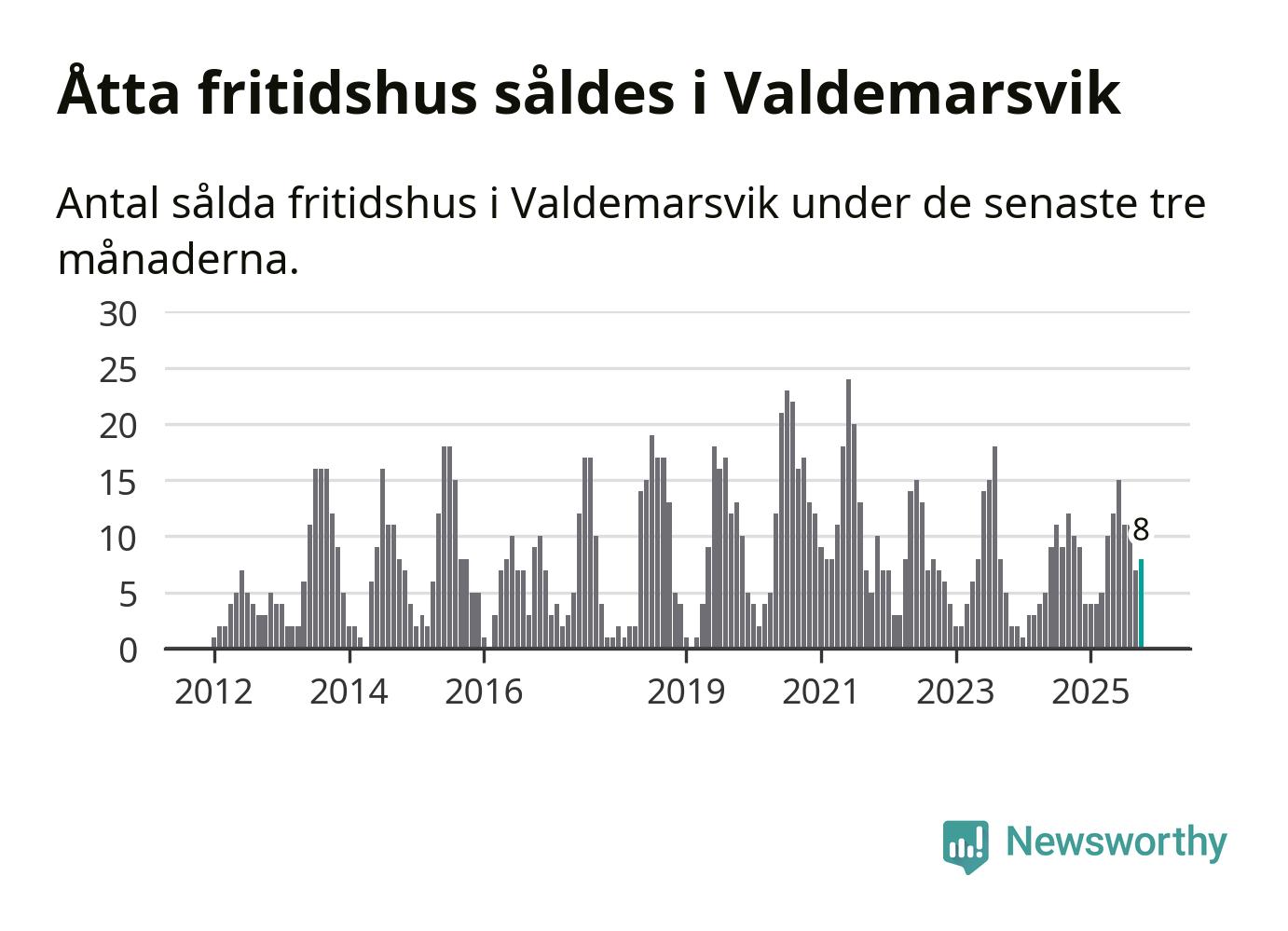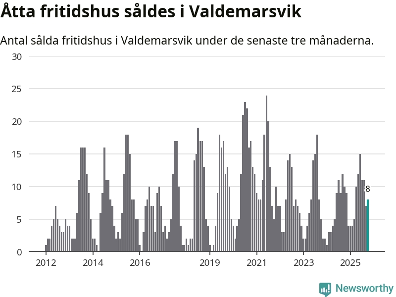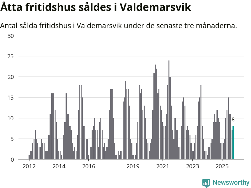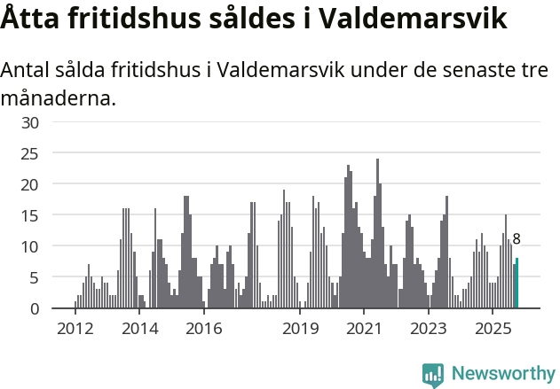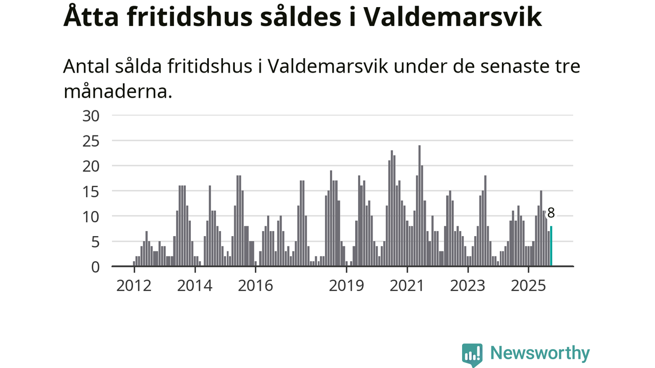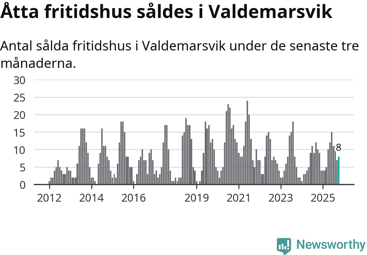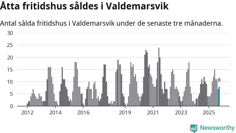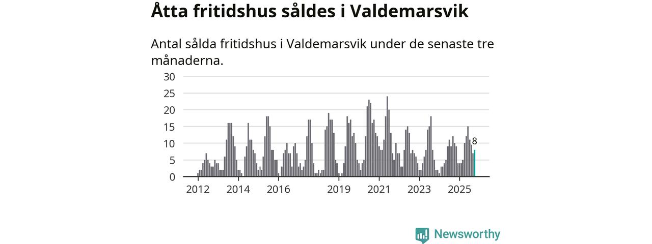 Sammanlagt såldes åtta fritidshus i Valdemarsviks kommun mellan augusti och oktober till ett genomsnittligt pris på 2,4 miljoner kronor. I fjol gjordes tio affärer vid den här tiden på året.