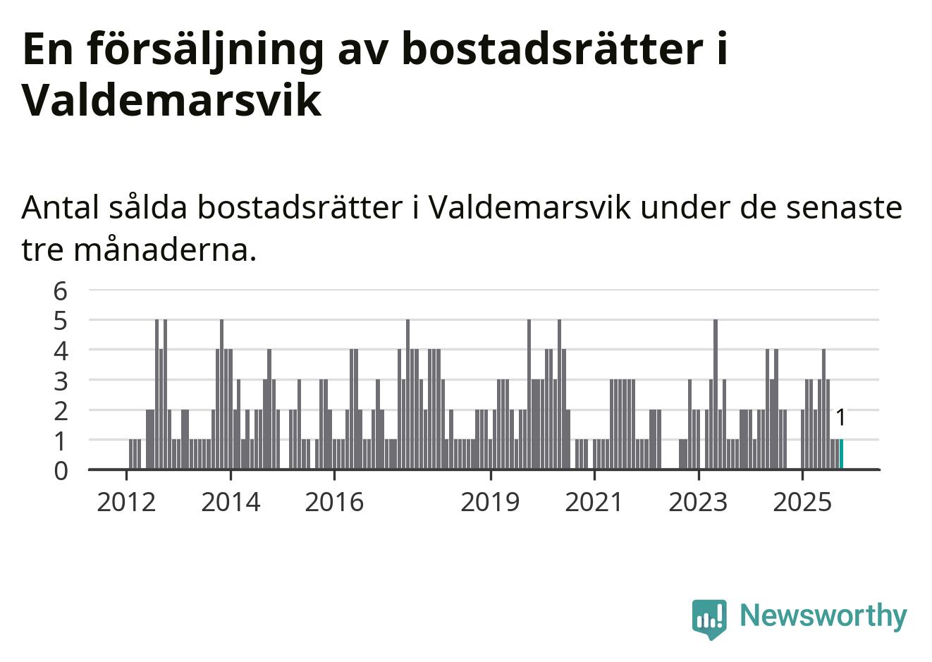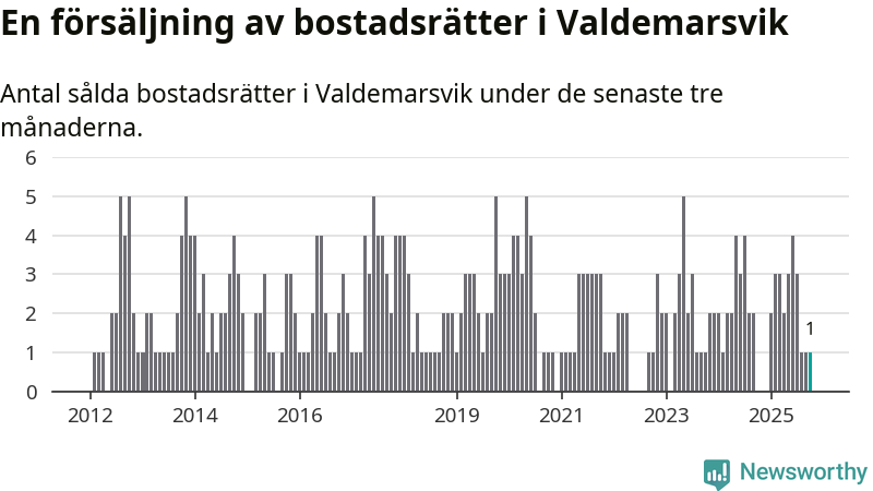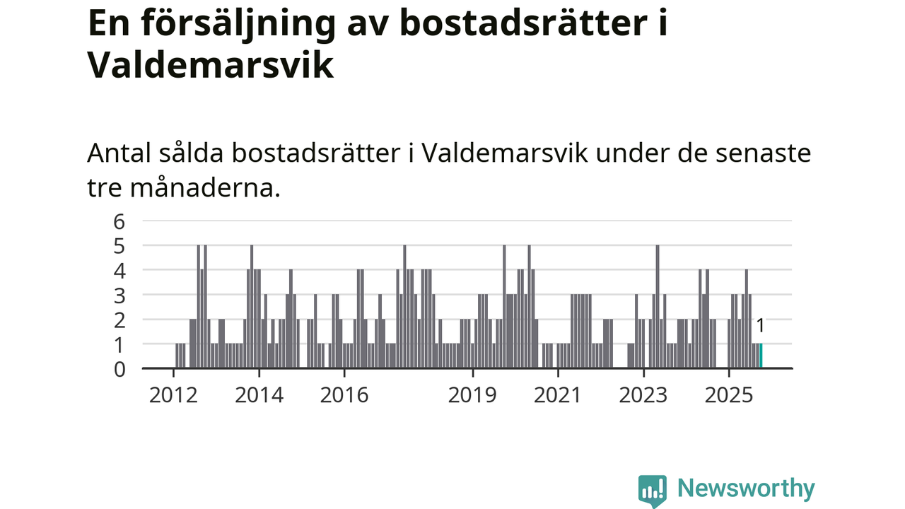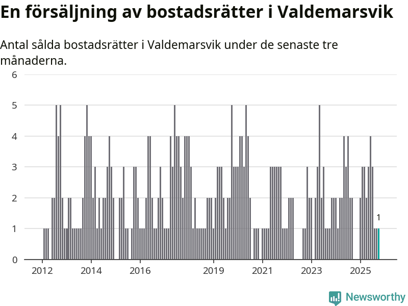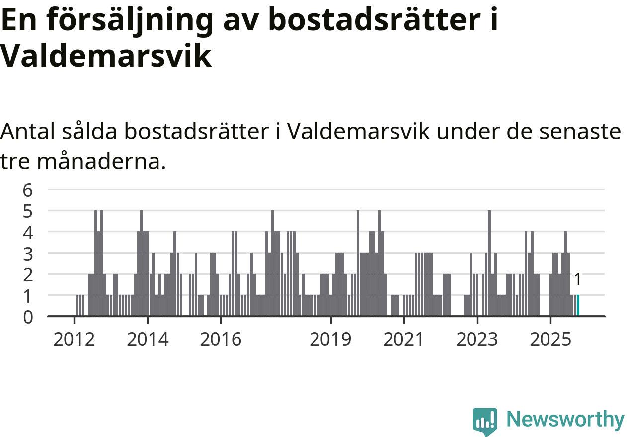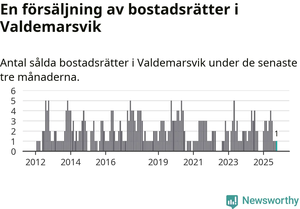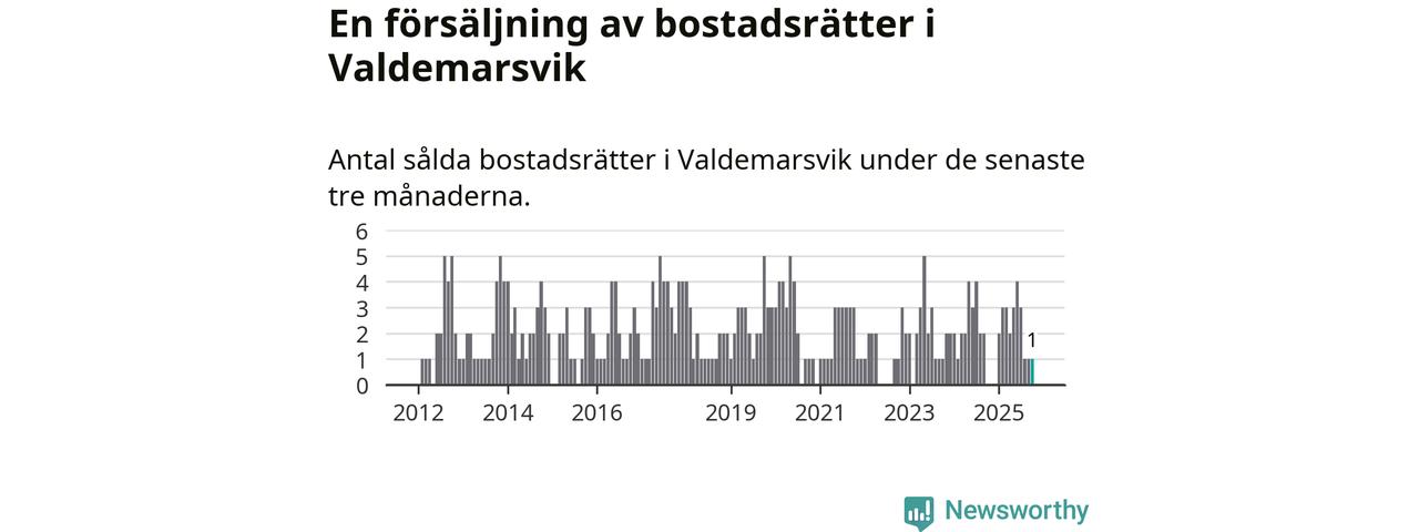 Mellan augusti och oktober gjordes sammanlagt en affär med bostadsrätter i Valdemarsviks kommun.