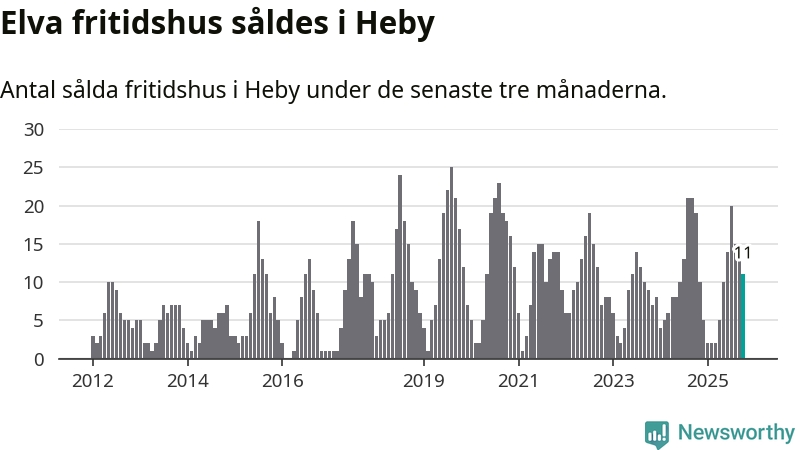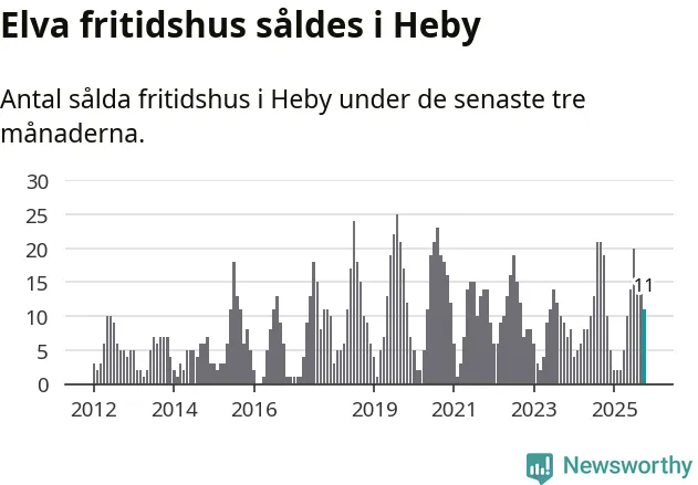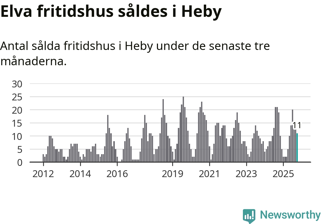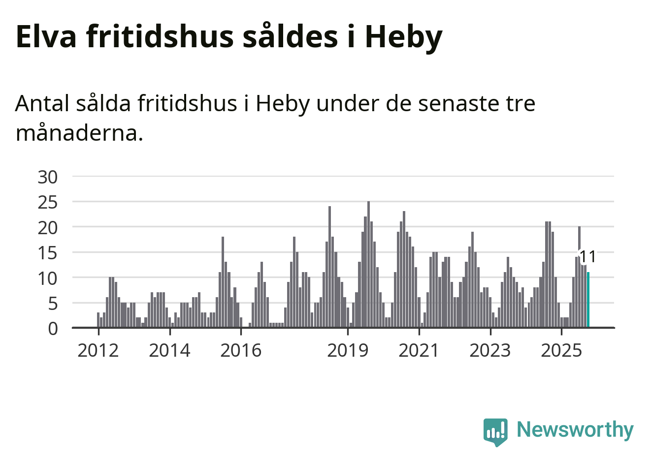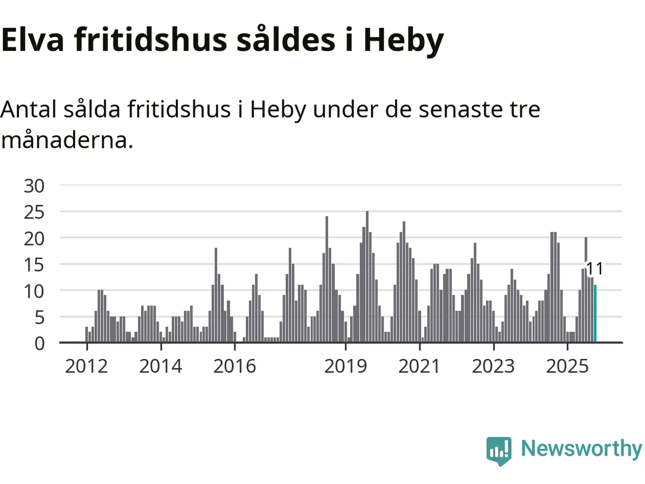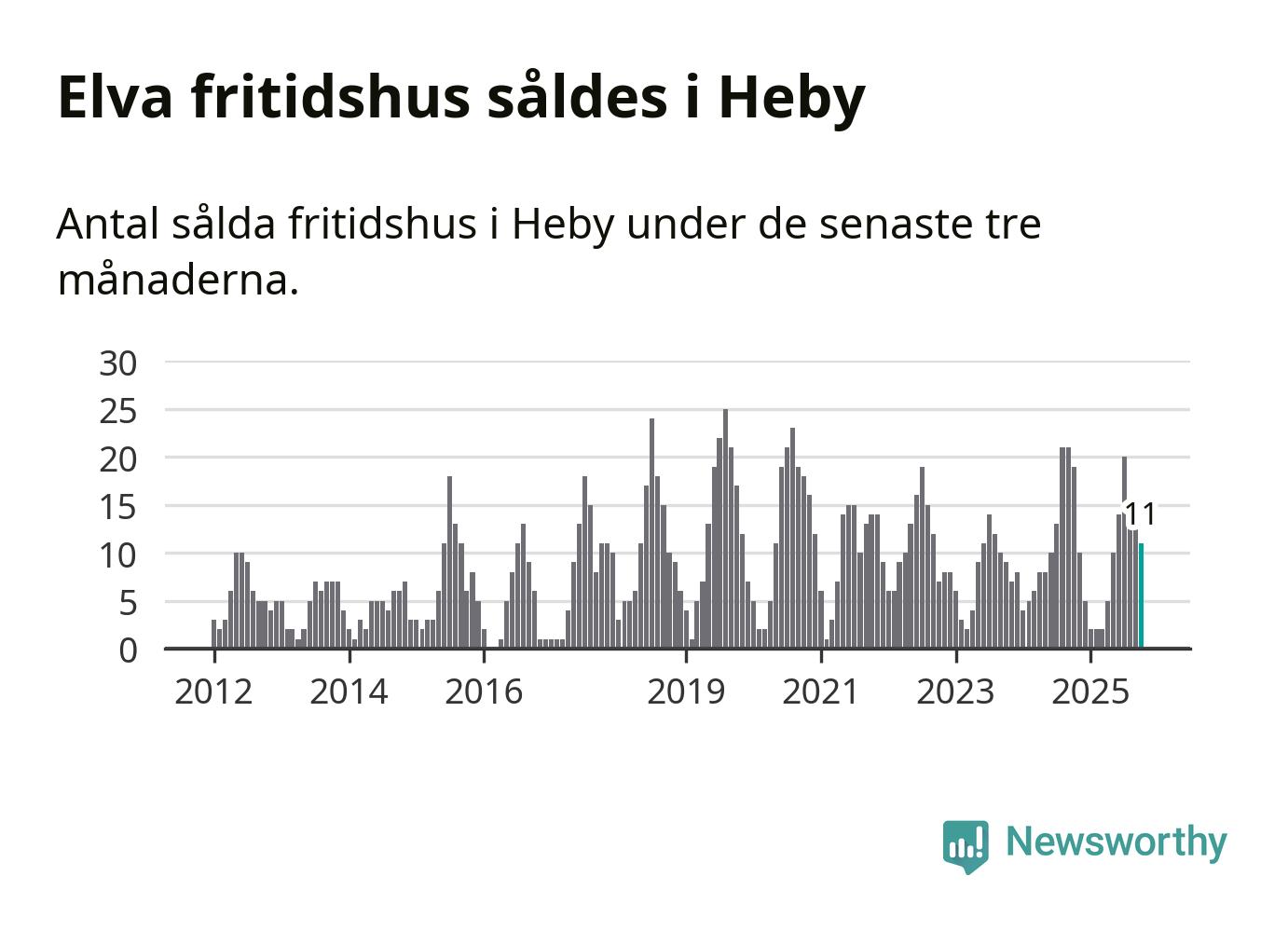 Sammanlagt såldes elva fritidshus i Heby kommun mellan augusti och oktober till ett genomsnittligt pris på 1,2 miljoner kronor. I fjol gjordes 19 affärer vid den här tiden på året.
