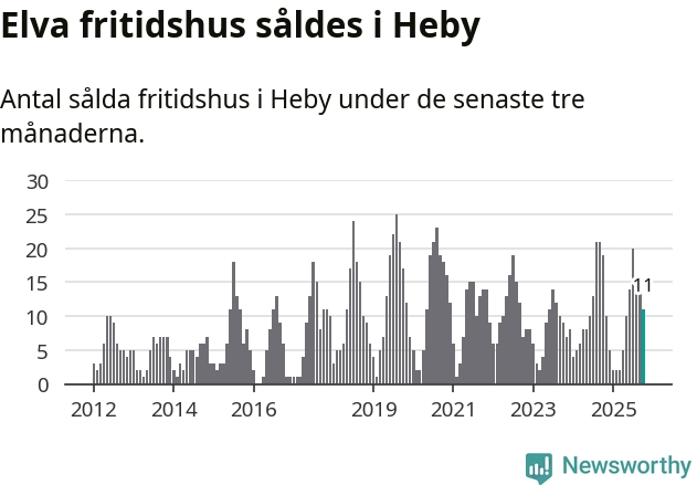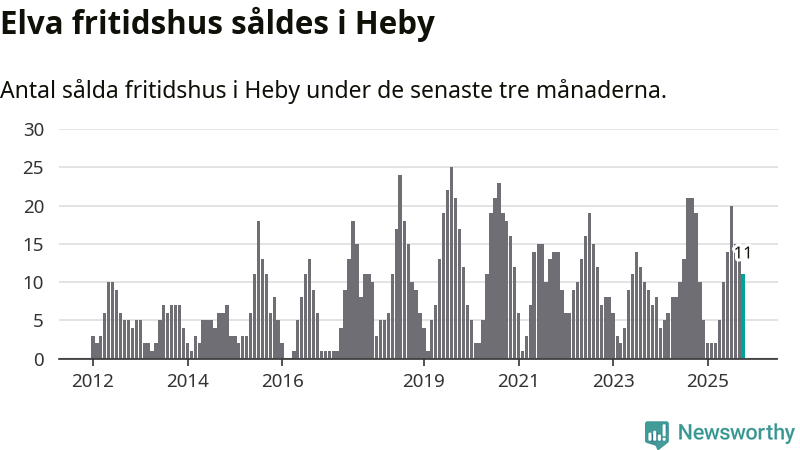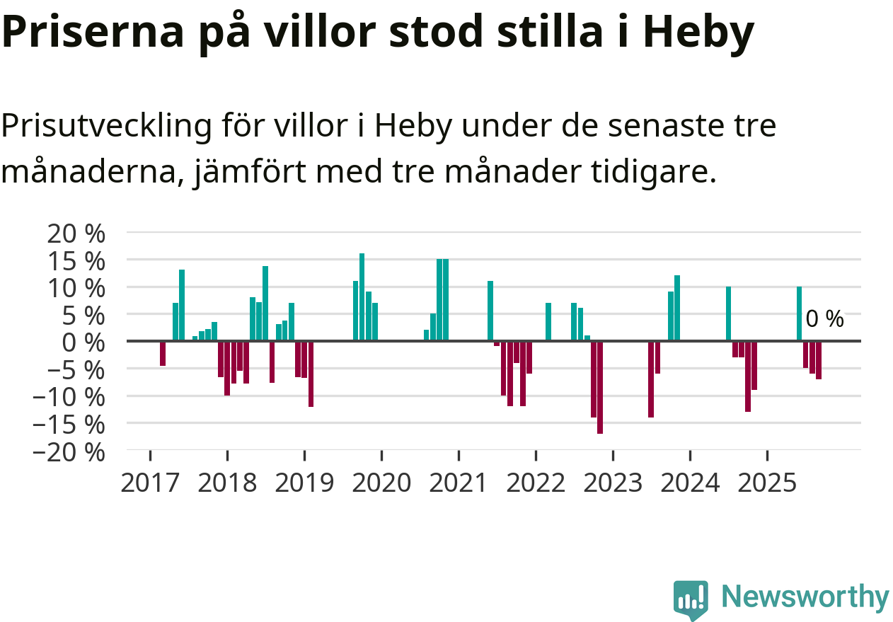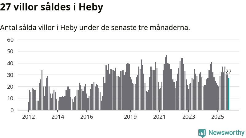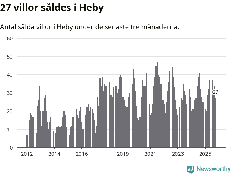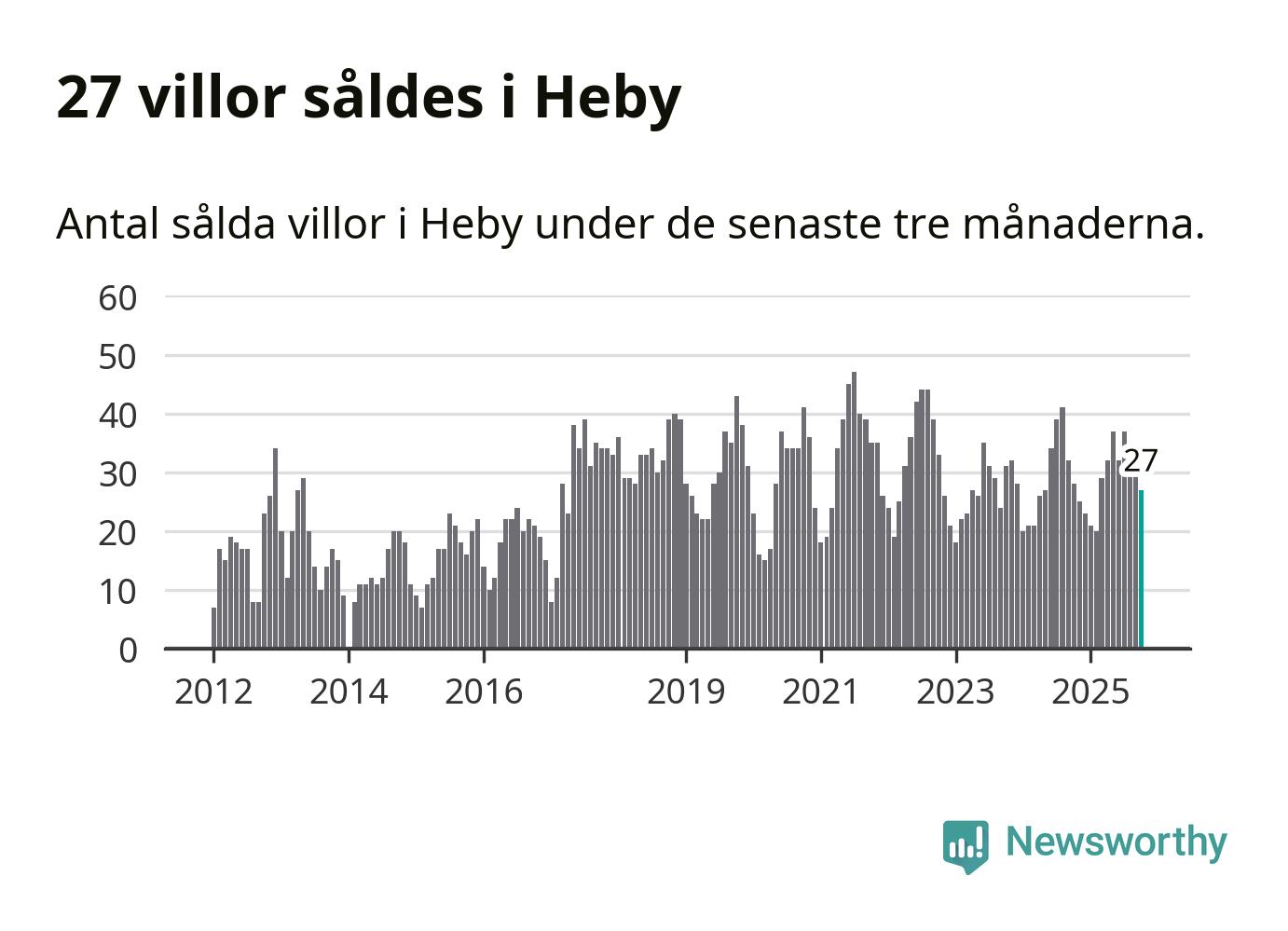 Mellan augusti och oktober gjordes sammanlagt 27 affärer med villor i Heby kommun. Det kan jämföras med 28 vid motsvarande tid i fjol.