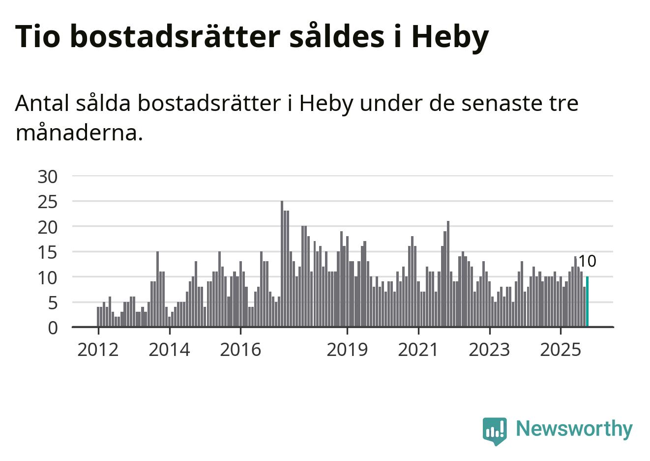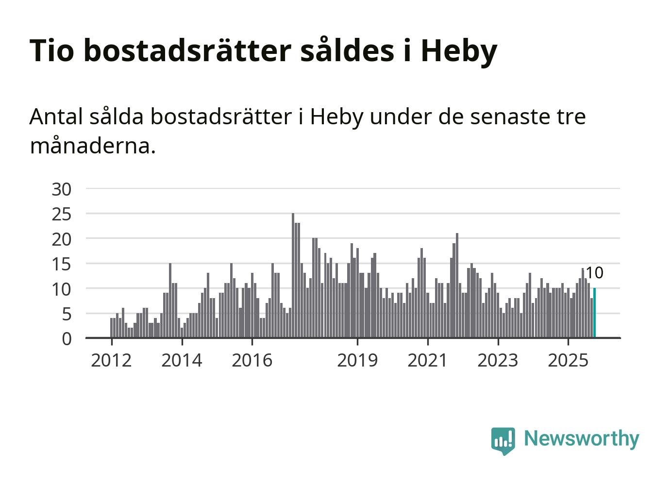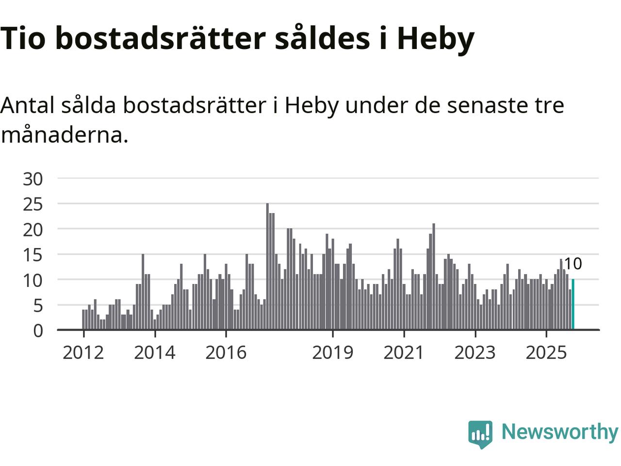 Mellan augusti och oktober gjordes sammanlagt tio affärer med bostadsrätter i Heby kommun. Det är lika många affärer som vid motsvarande tid i fjol.