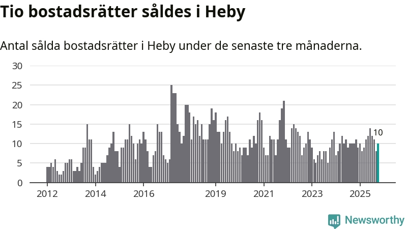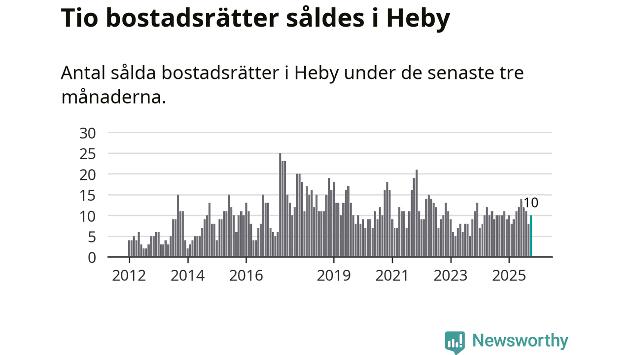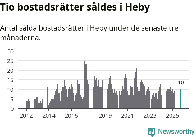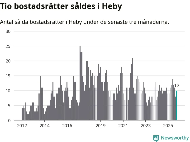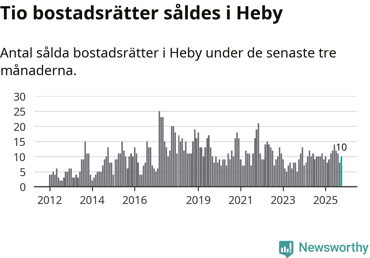 Mellan augusti och oktober gjordes sammanlagt tio affärer med bostadsrätter i Heby kommun. Det är lika många affärer som vid motsvarande tid i fjol.