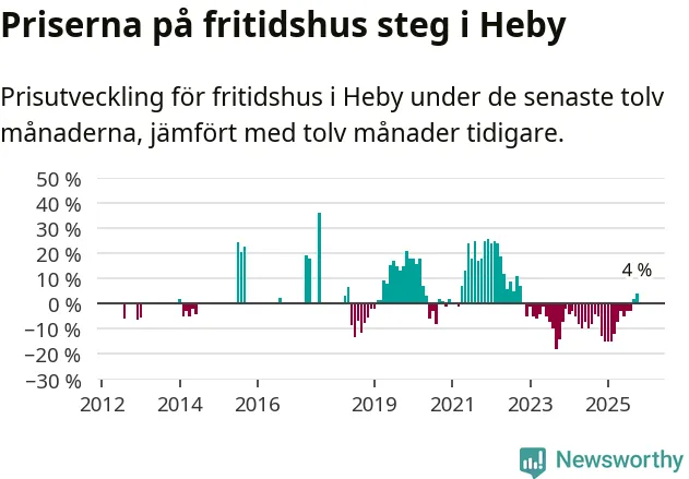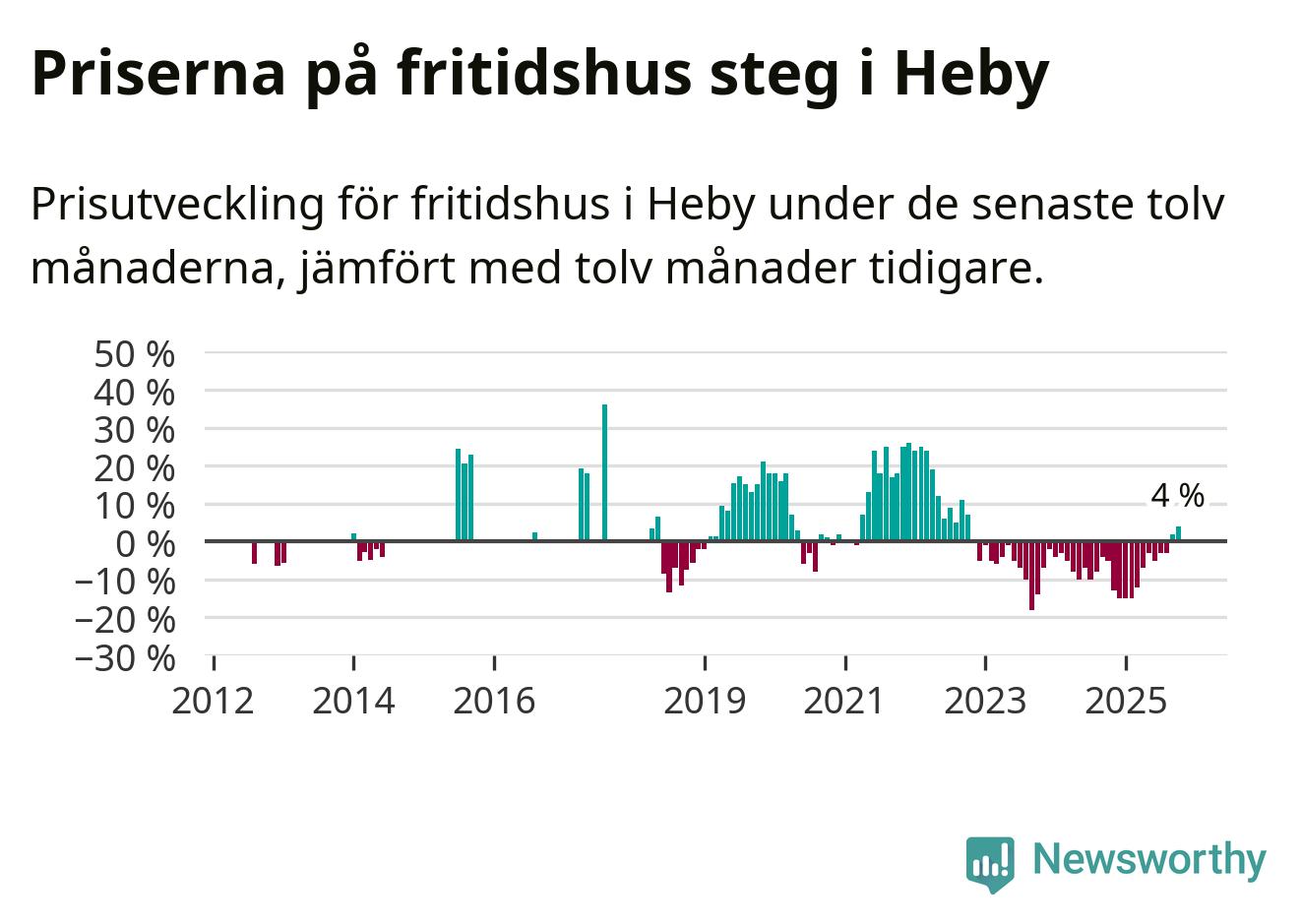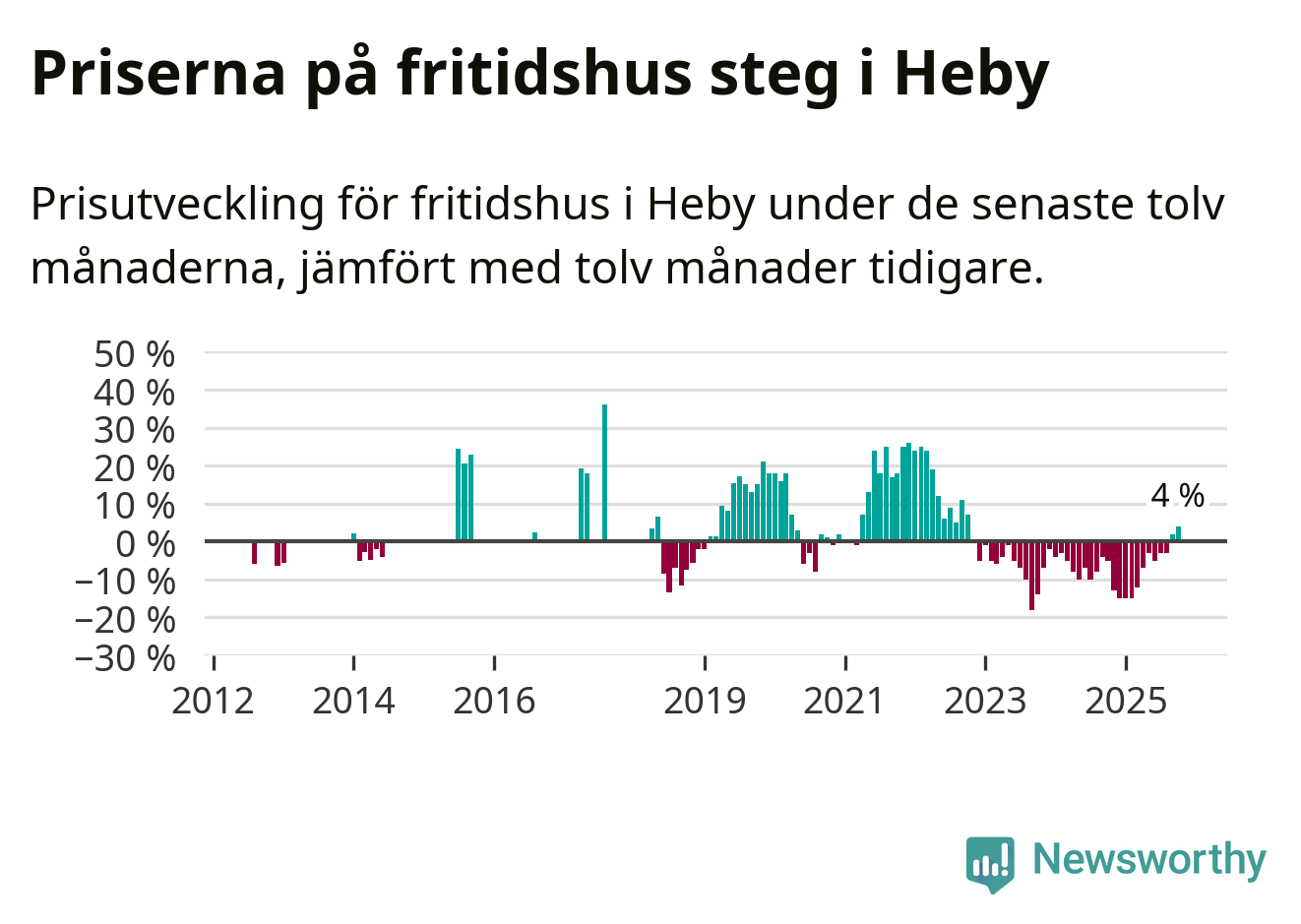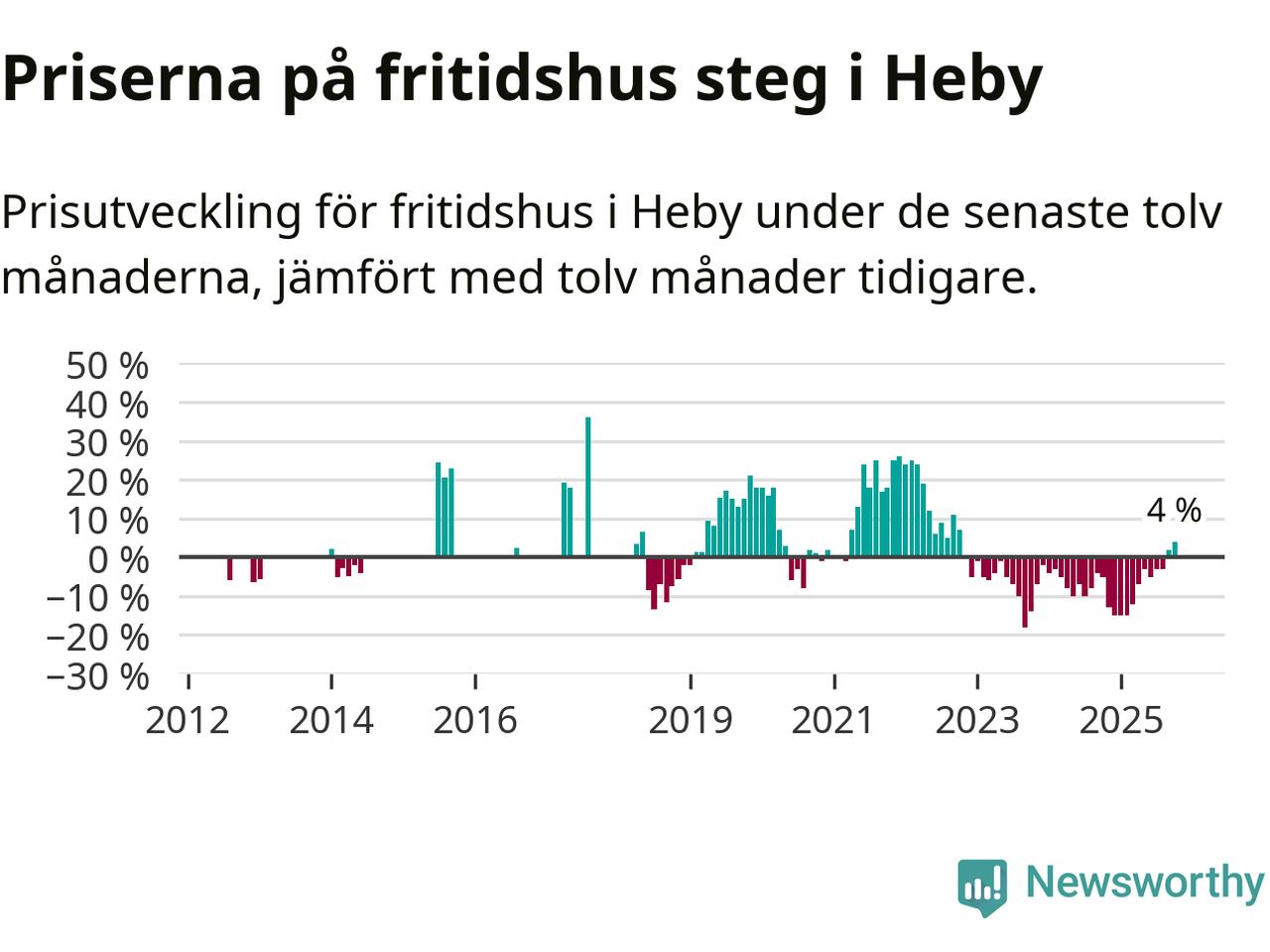 Priserna på fritidshus har gått upp i Heby kommun. Medelpriset på försäljningarna under de senaste tolv månaderna visar på en uppgång med 4 procent.