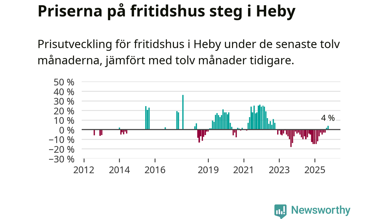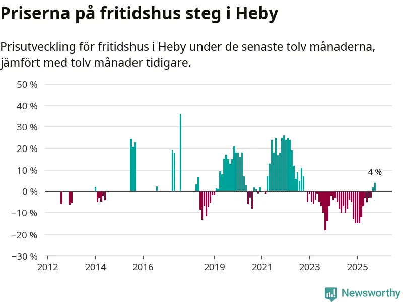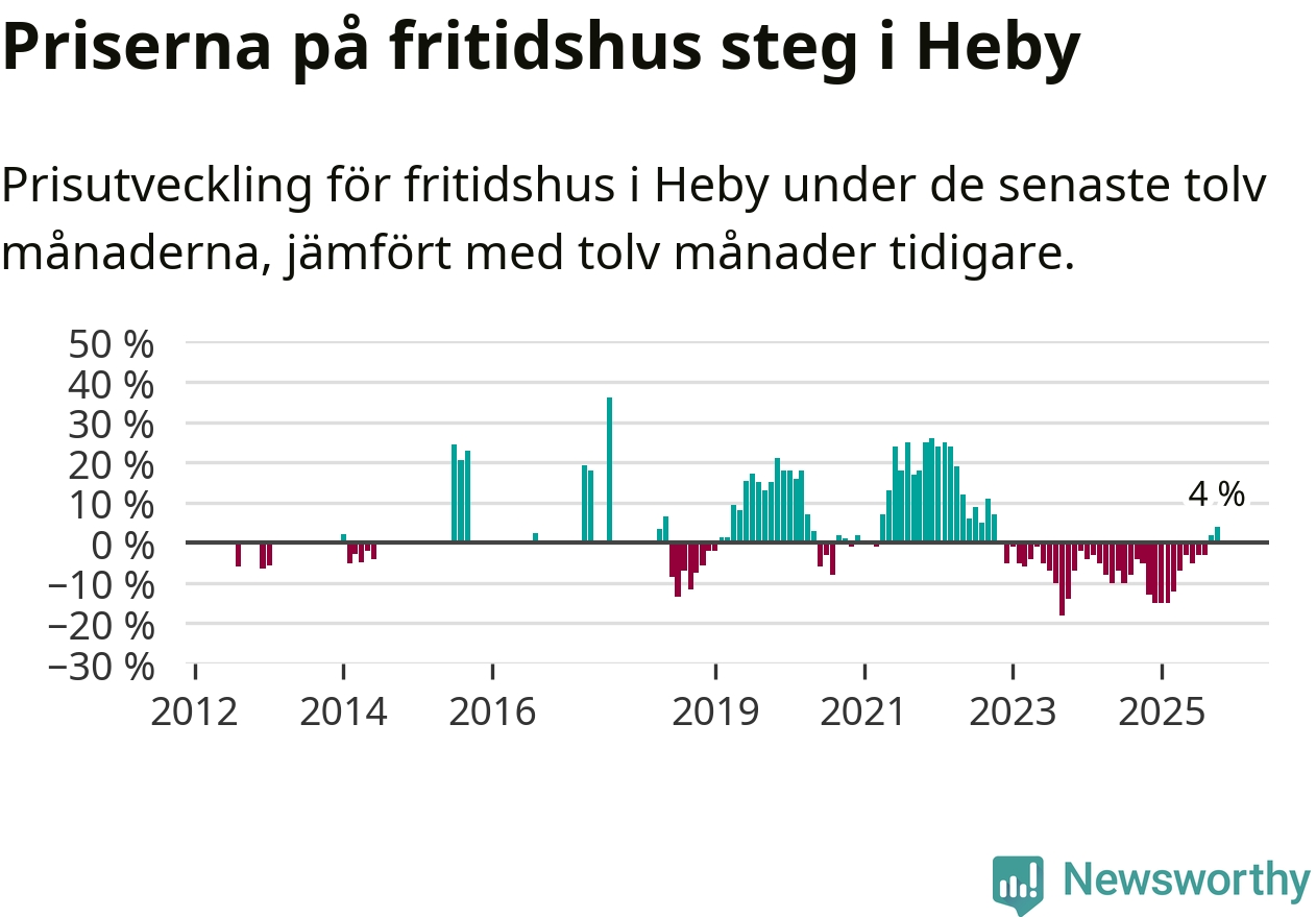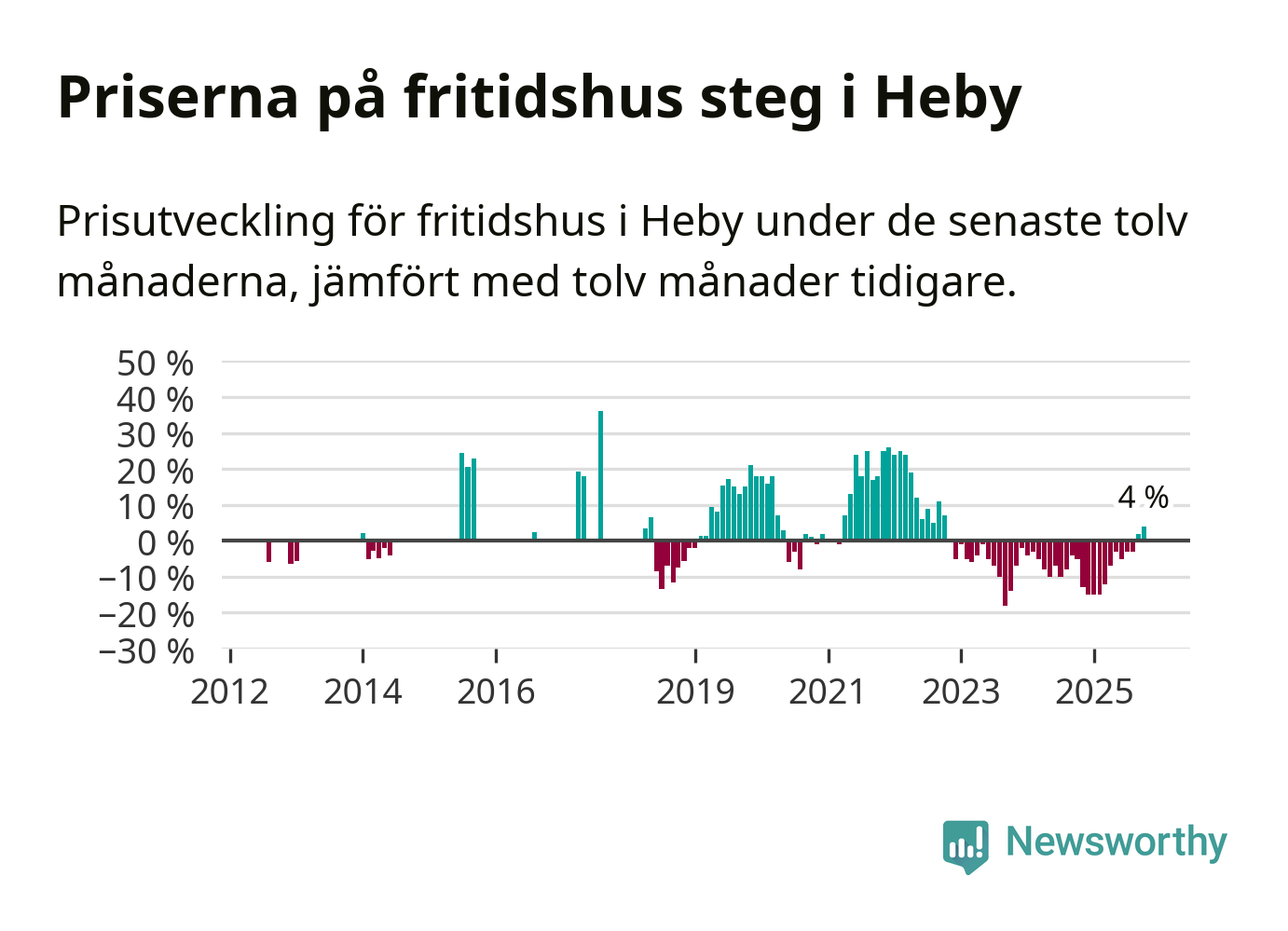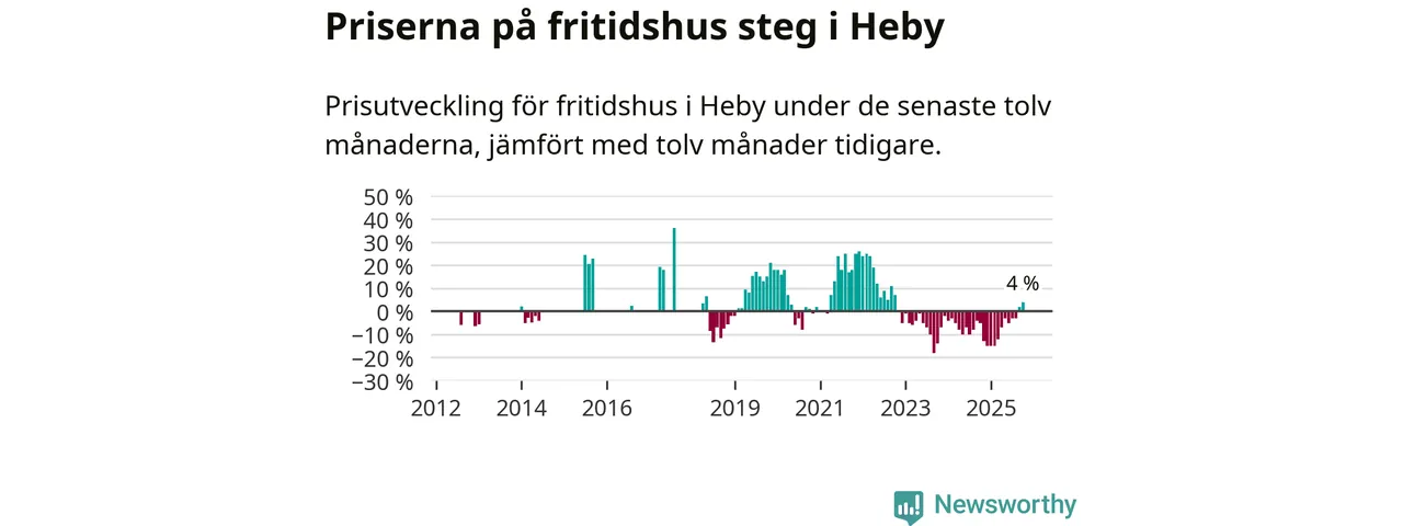 Priserna på fritidshus har gått upp i Heby kommun. Medelpriset på försäljningarna under de senaste tolv månaderna visar på en uppgång med 4 procent.
