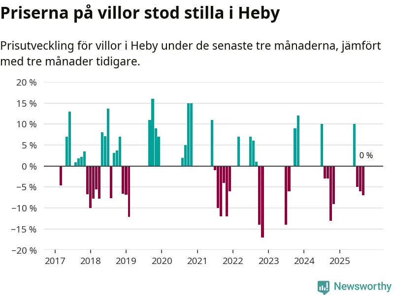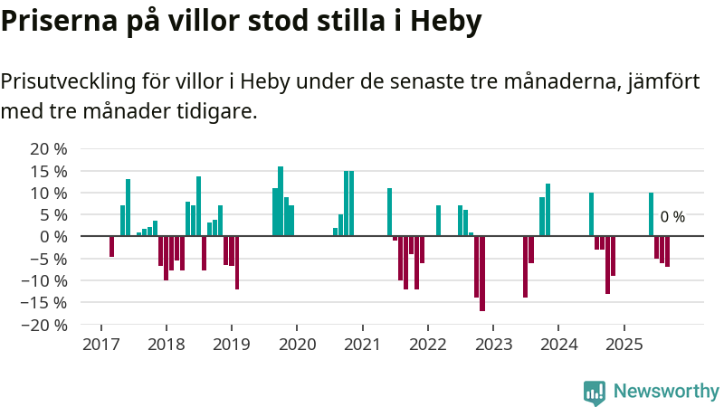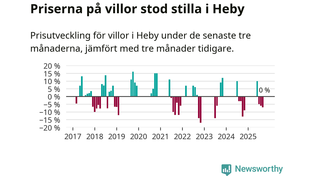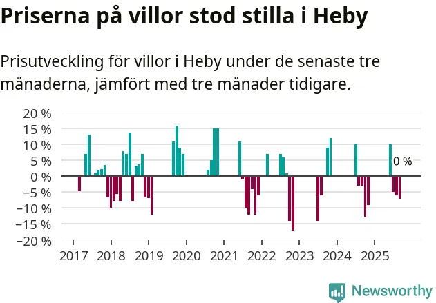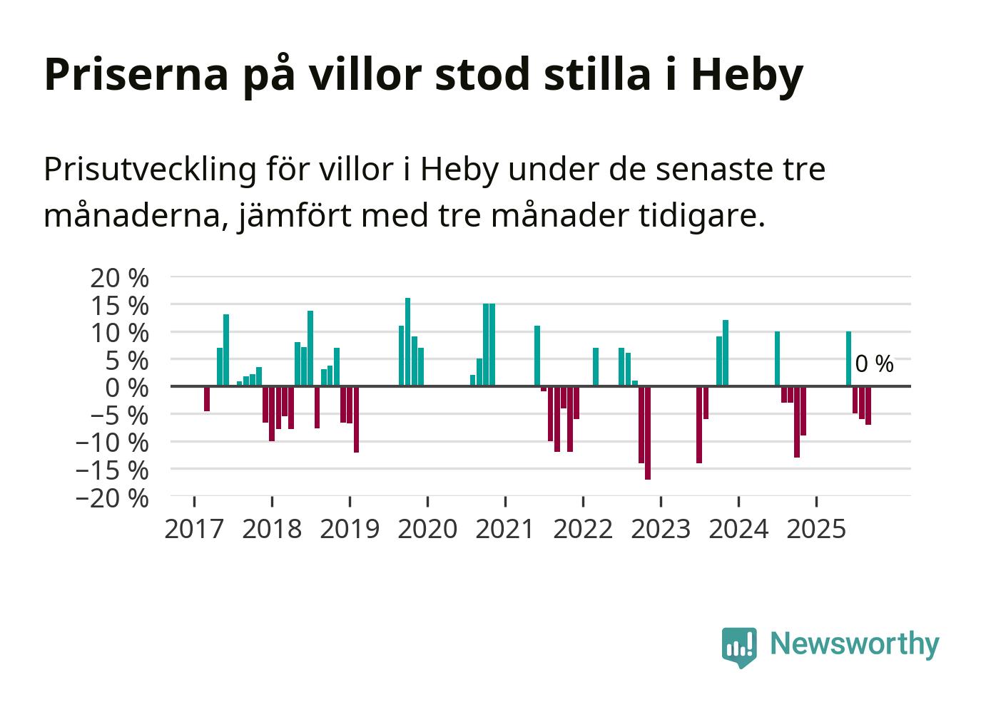 Medelpriset på försäljningarna i Heby kommun låg på i stort sett samma nivå som för tre månader sedan. I hela Uppsala däremot sjunker villapriserna. I hela länet noterades en prisnedgång på 2 procent.