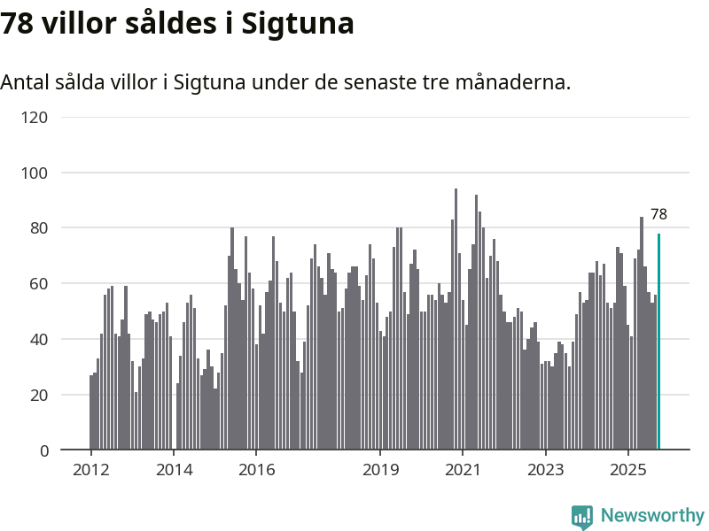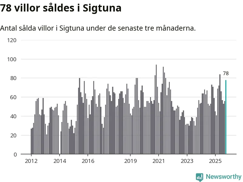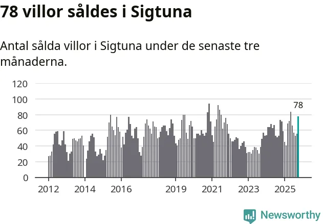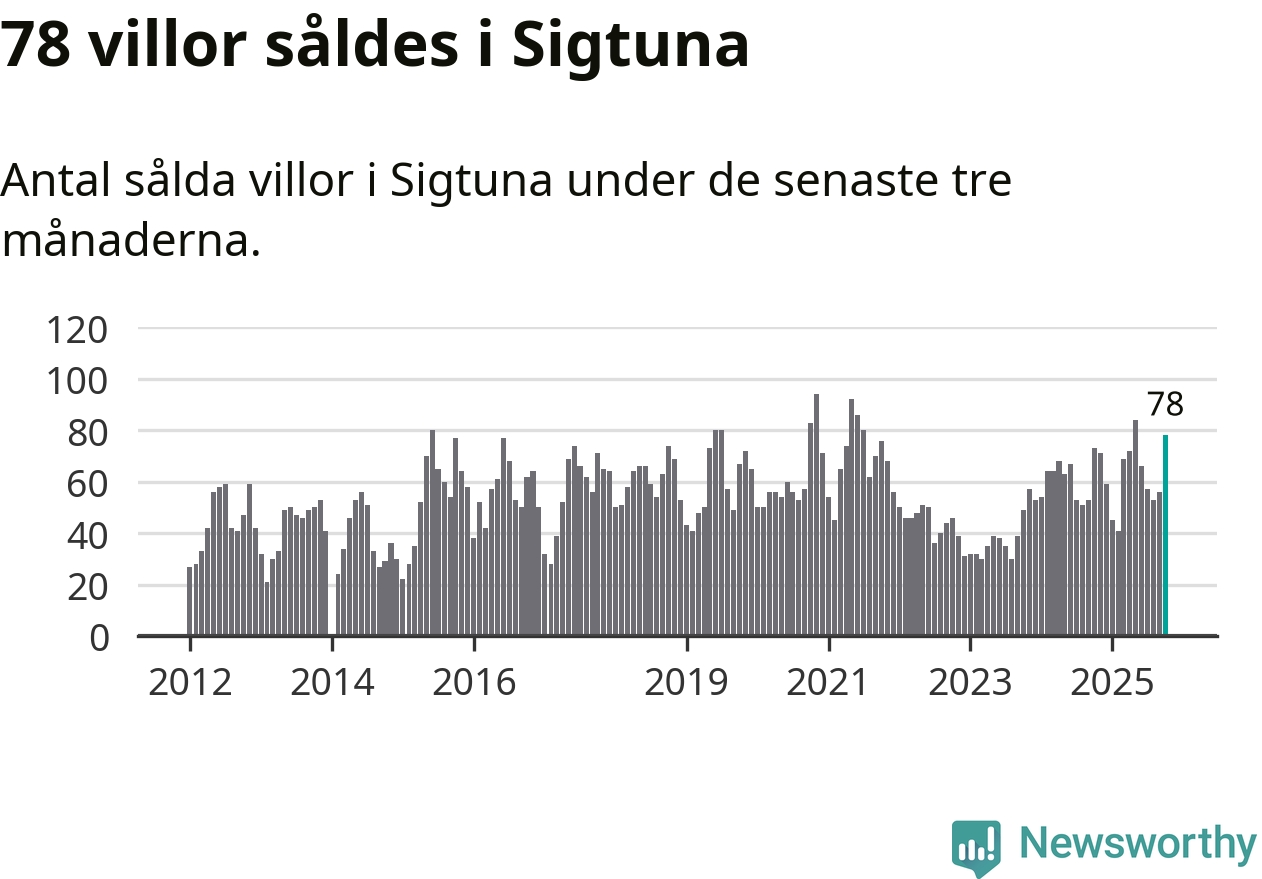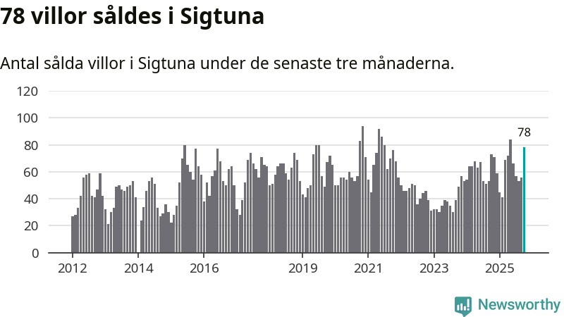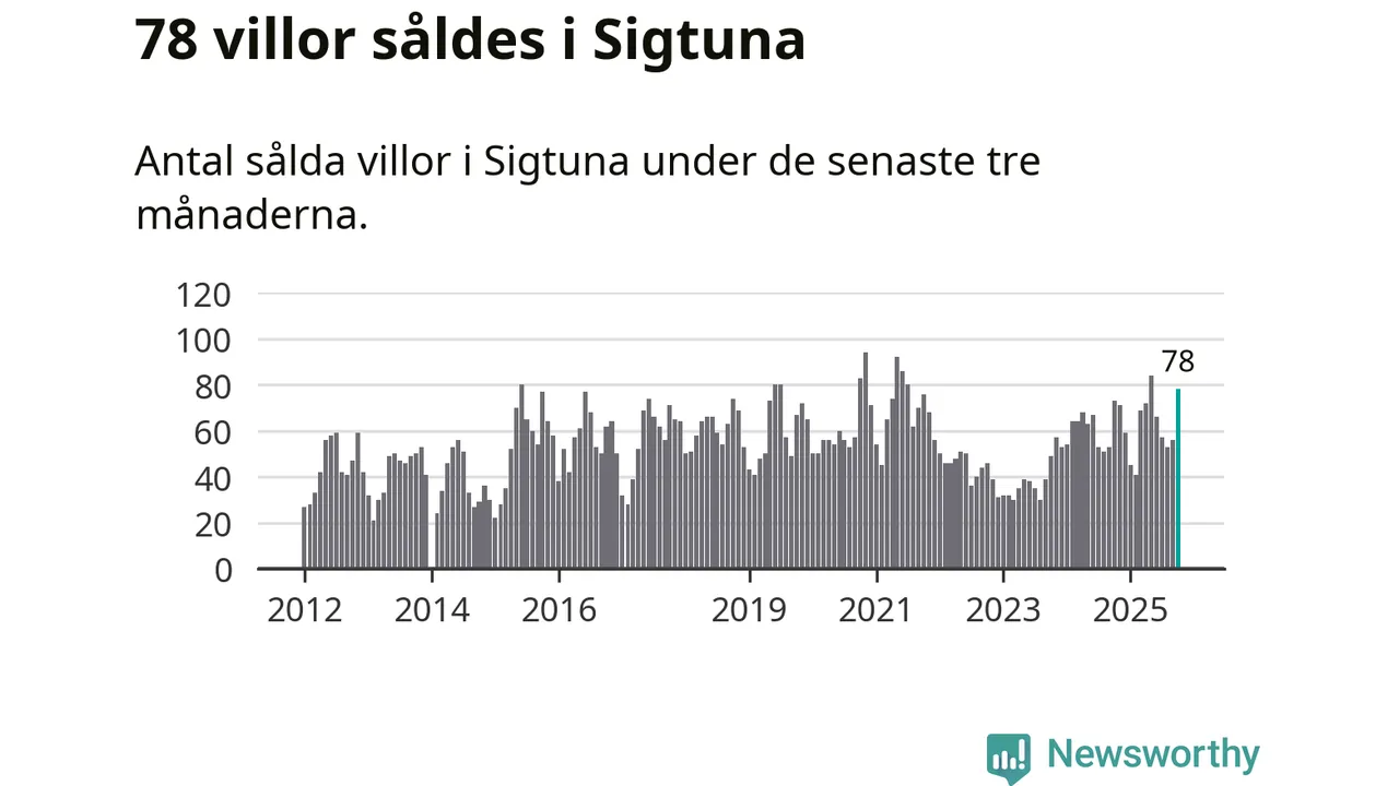 Sammanlagt såldes 78 villor i Sigtuna kommun mellan augusti och oktober till ett genomsnittligt pris på 5,3 miljoner kronor. I fjol gjordes 73 affärer vid den här tiden på året.