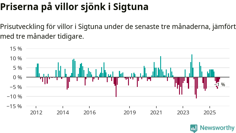 | Sigtuna | −1 % ▼ | 78 | 5,3 miljoner |
