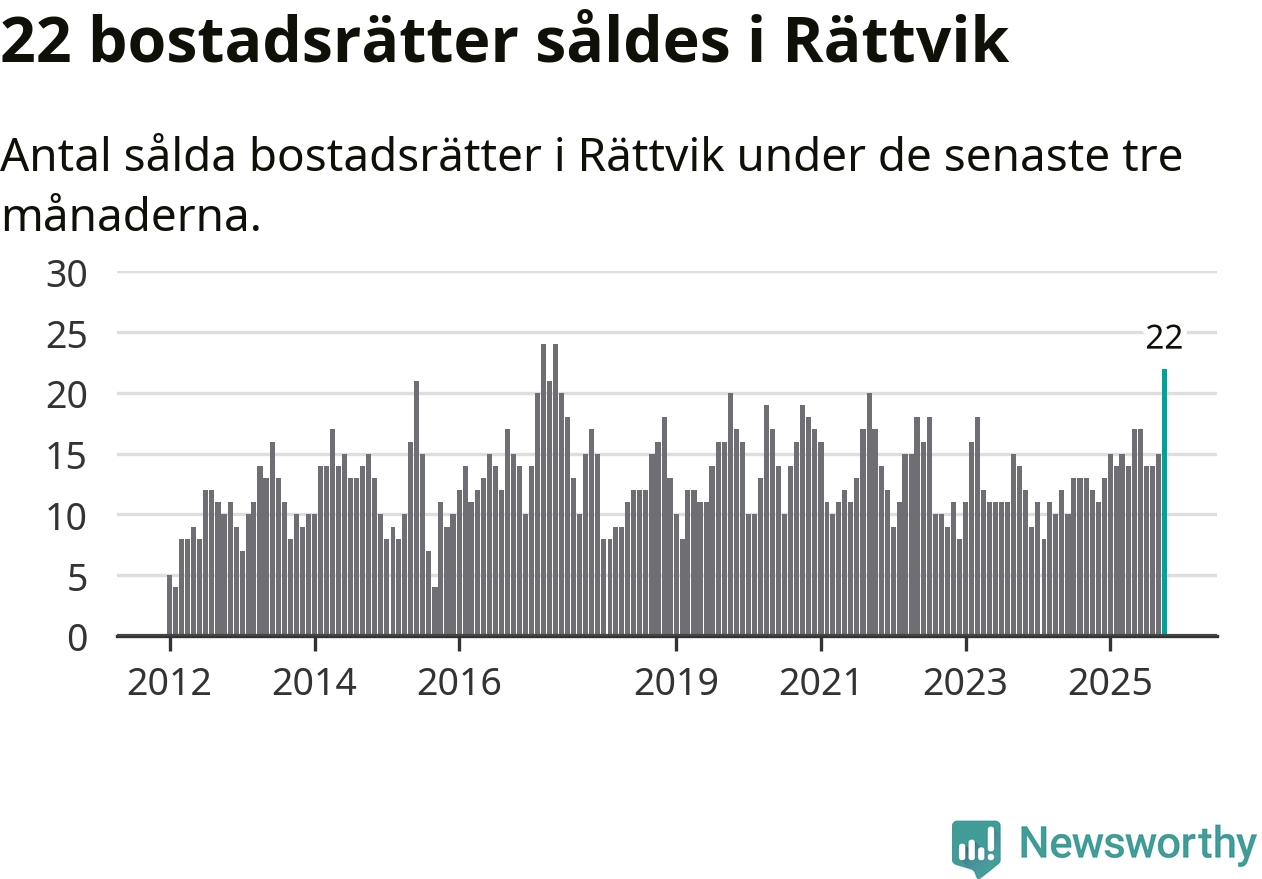 Mellan augusti och oktober såldes 22 bostadsrätter i Rättviks kommun. Det är fler än någon tremånadersperiod sedan 2017.