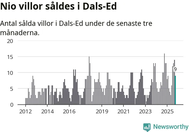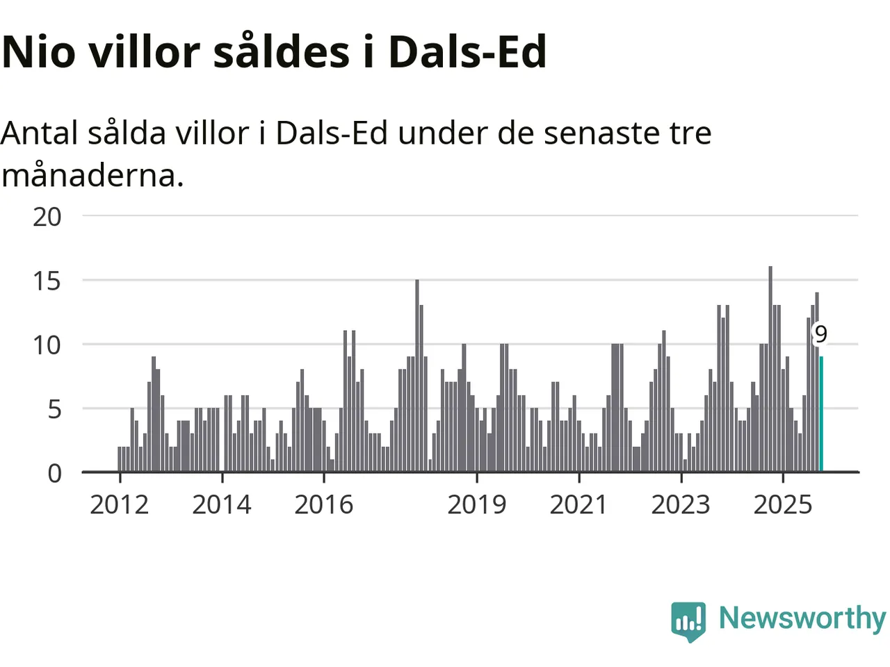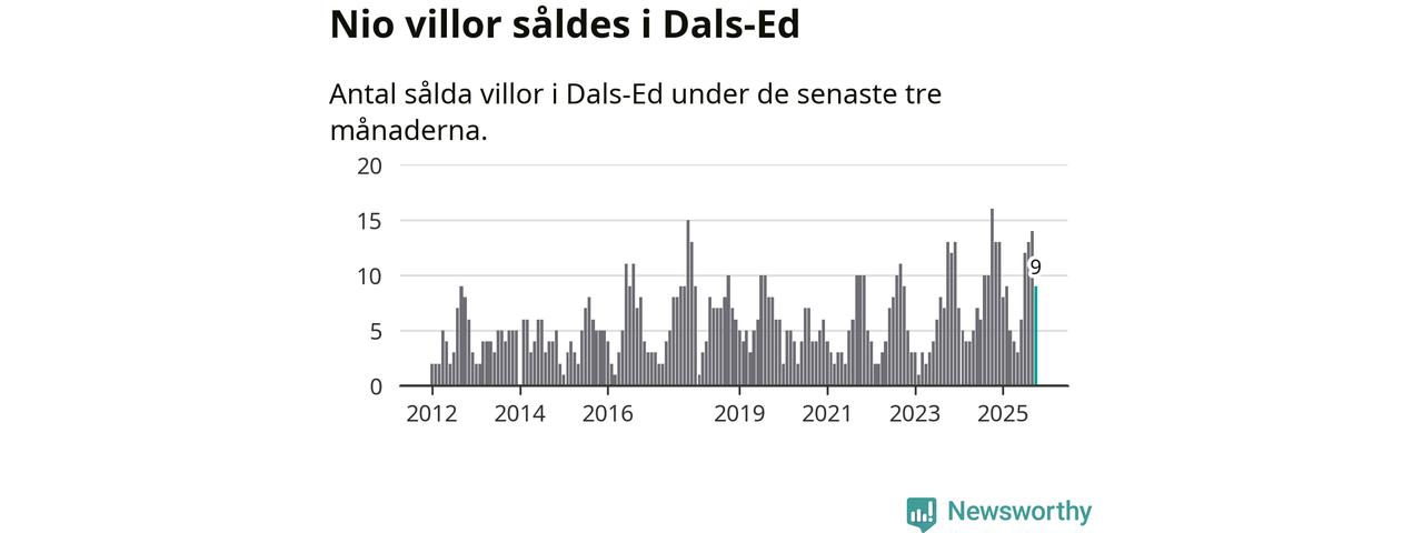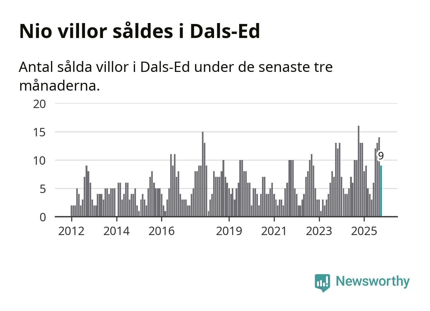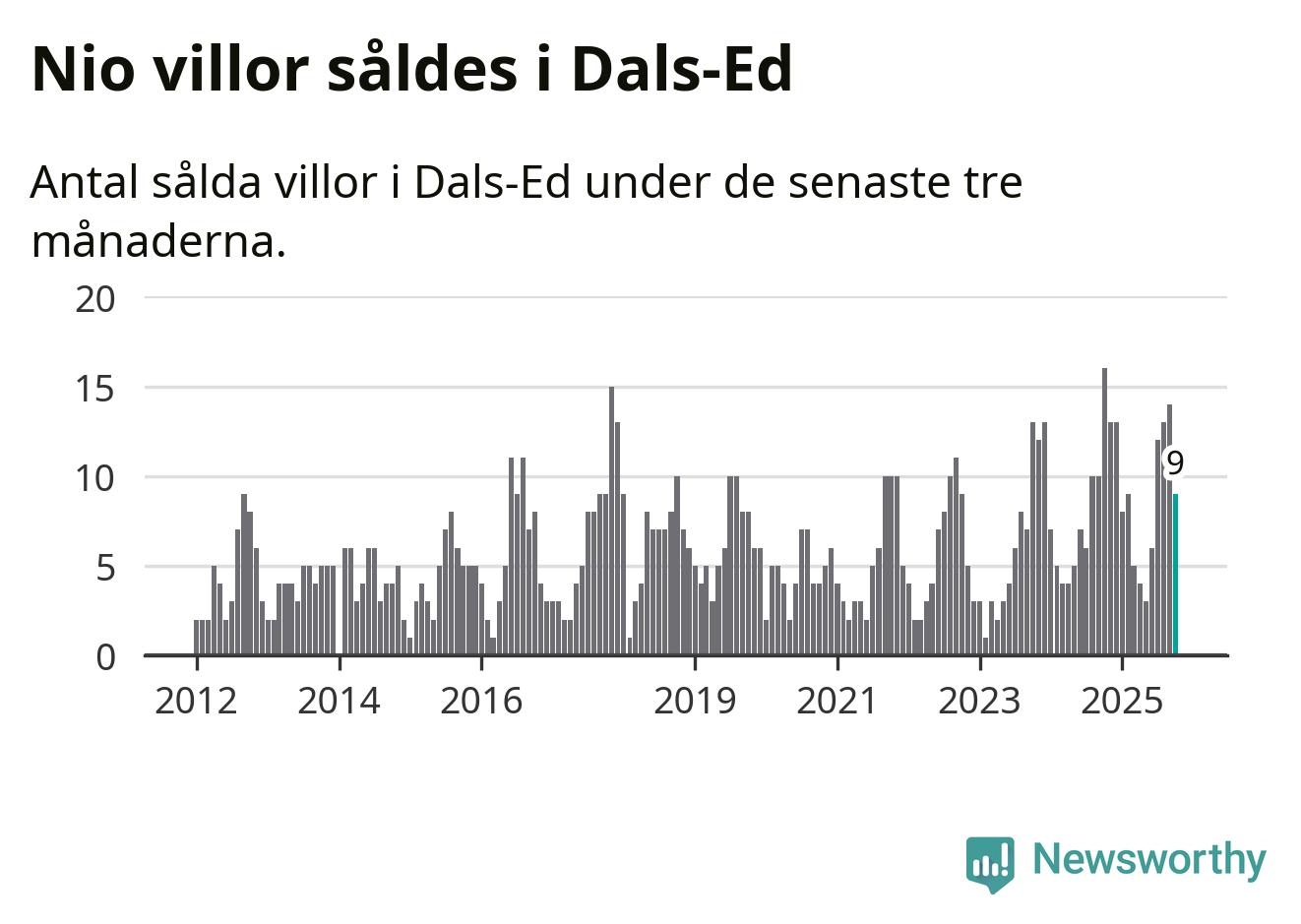 Mellan augusti och oktober gjordes sammanlagt nio affärer med villor i Dals-Eds kommun. Det kan jämföras med 16 vid motsvarande tid i fjol.