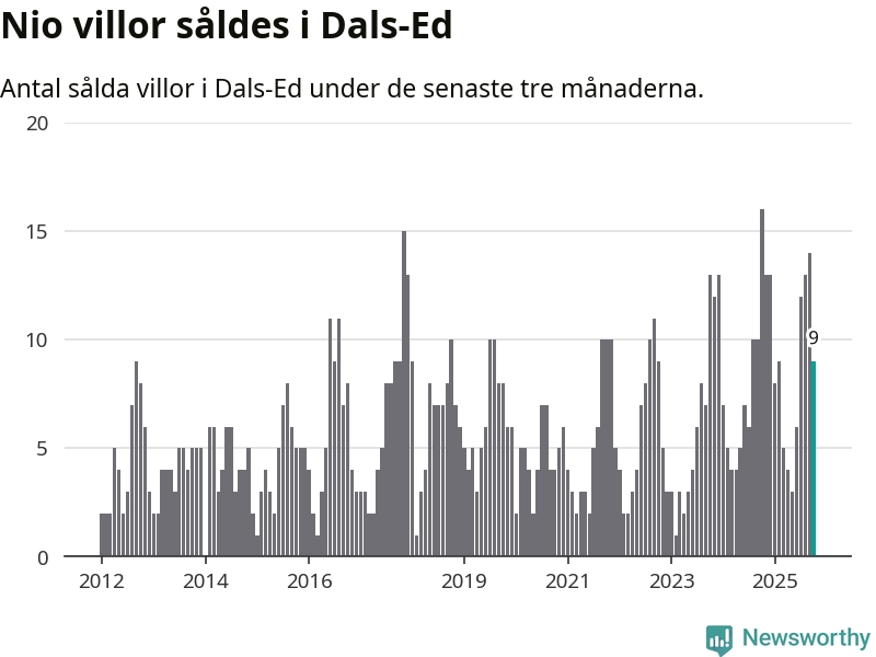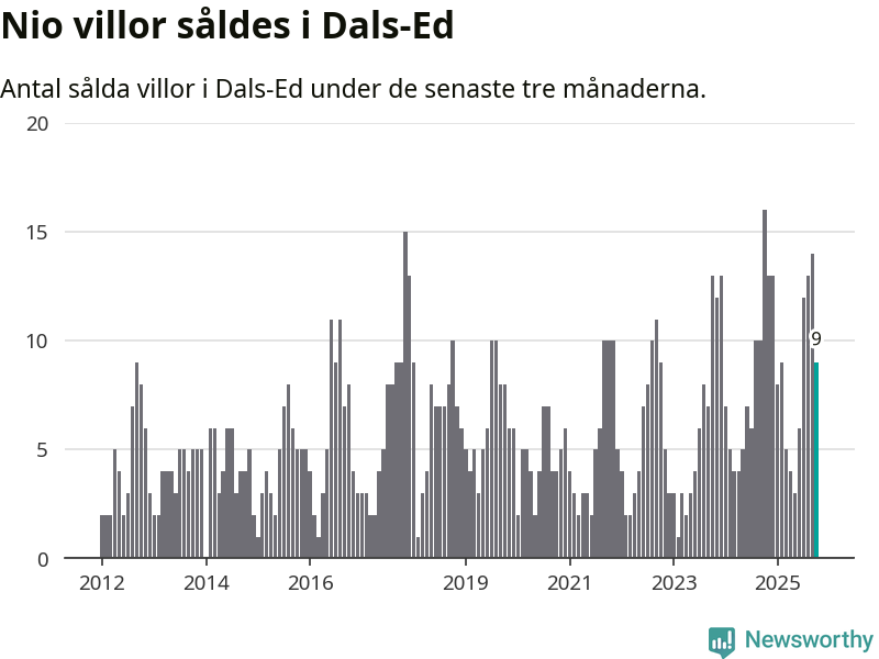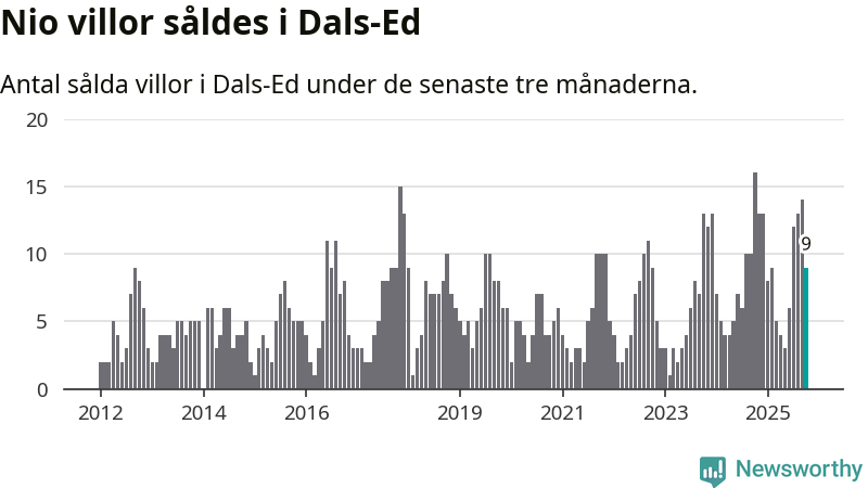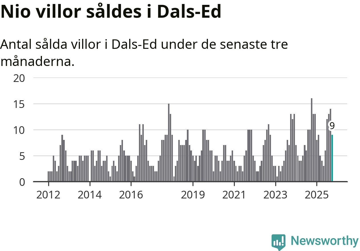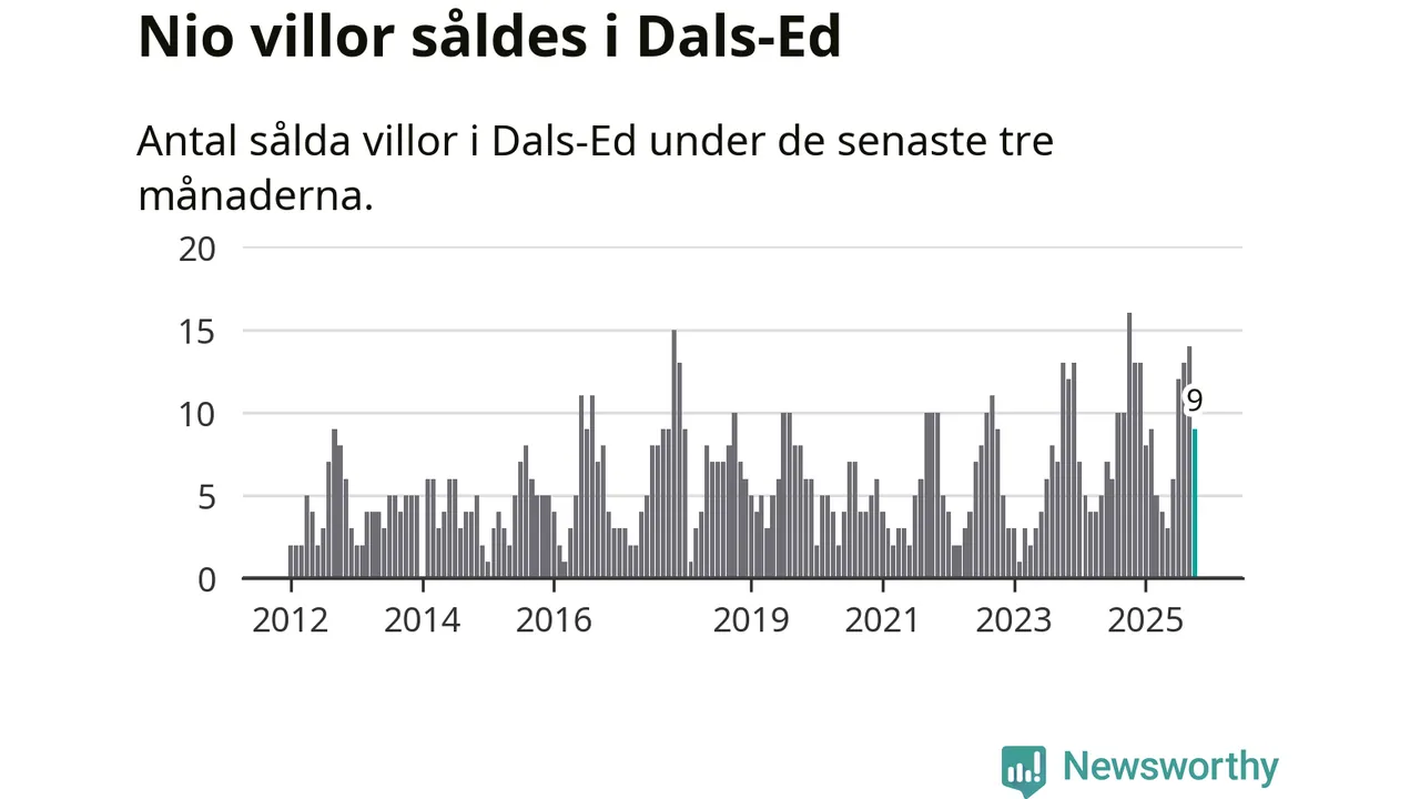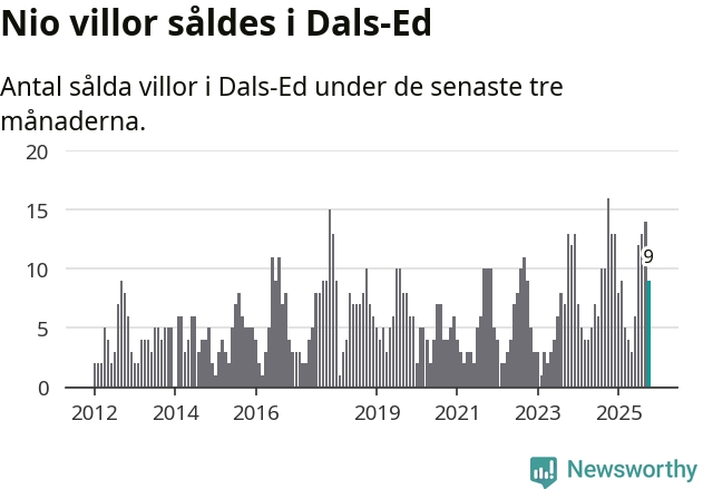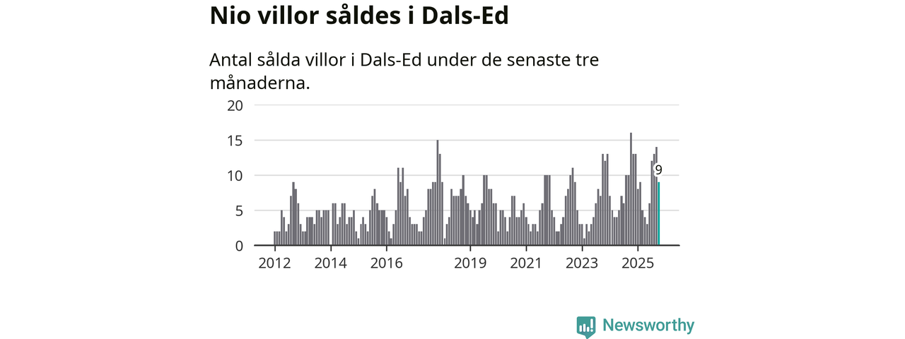 Mellan augusti och oktober gjordes sammanlagt nio affärer med villor i Dals-Eds kommun. Det kan jämföras med 16 vid motsvarande tid i fjol.