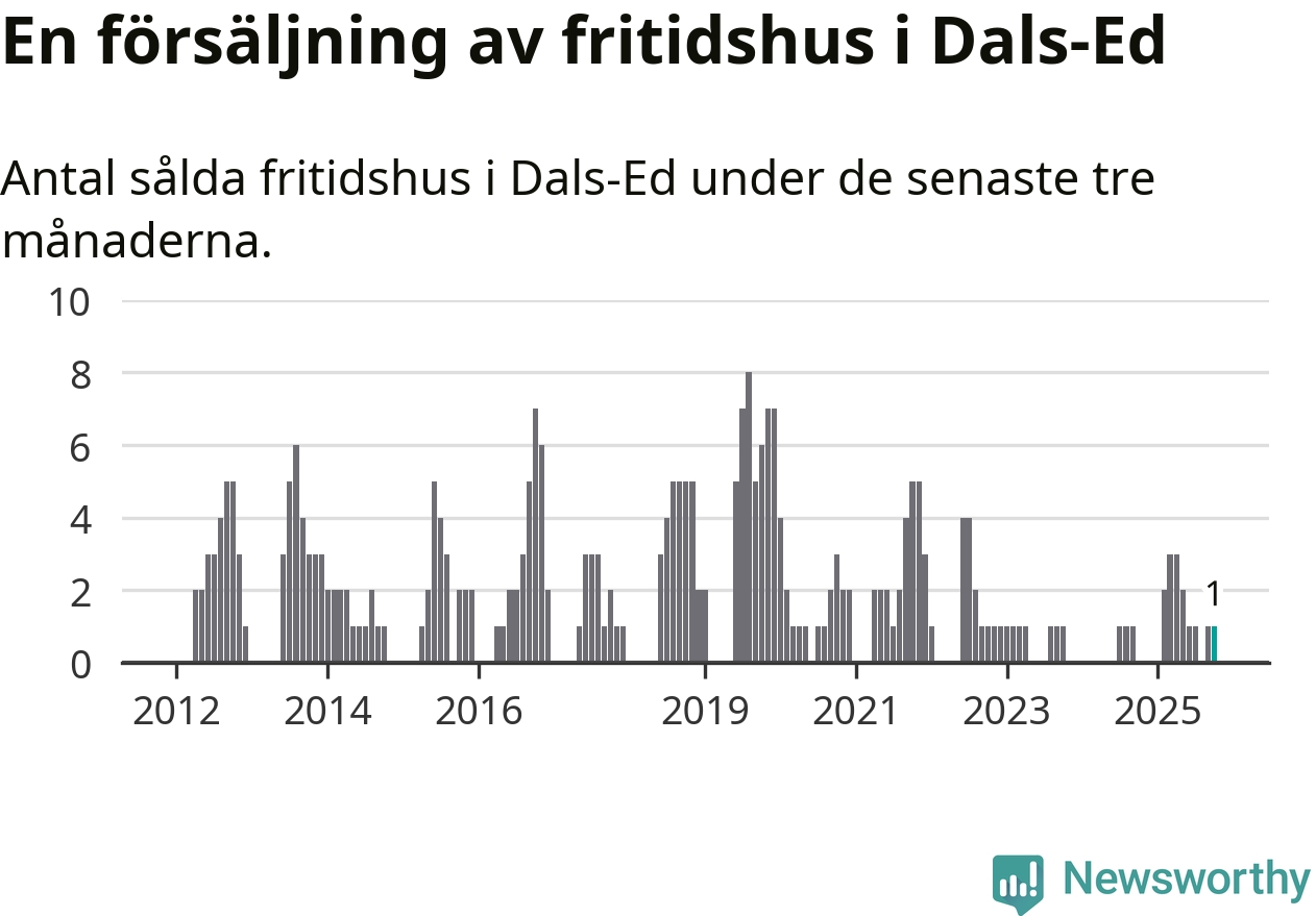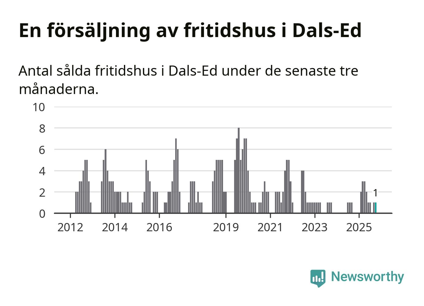 Mellan augusti och oktober gjordes sammanlagt en affär med fritidshus i Dals-Eds kommun.