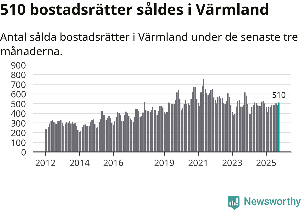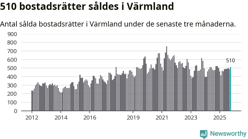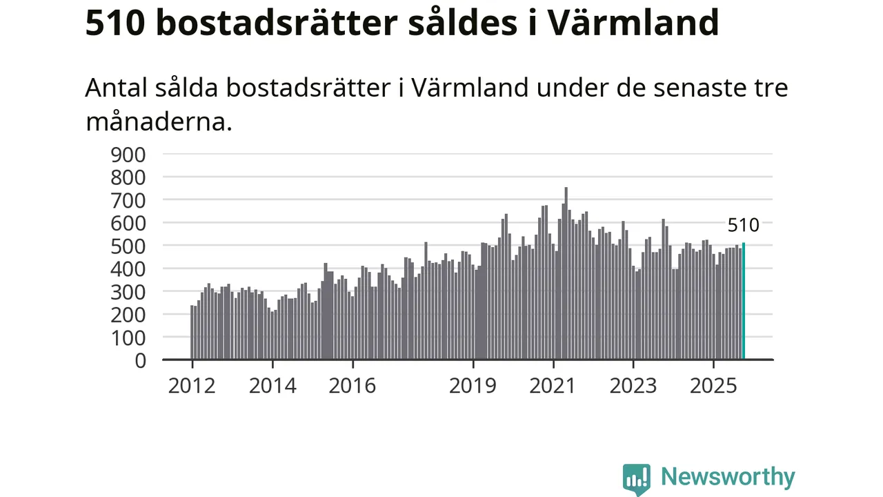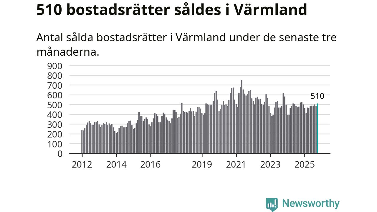 Sammanlagt såldes 510 bostadsrätter i Värmlands län mellan augusti och oktober till ett genomsnittligt pris på 1,5 miljoner kronor. I fjol gjordes 521 affärer vid den här tiden på året.