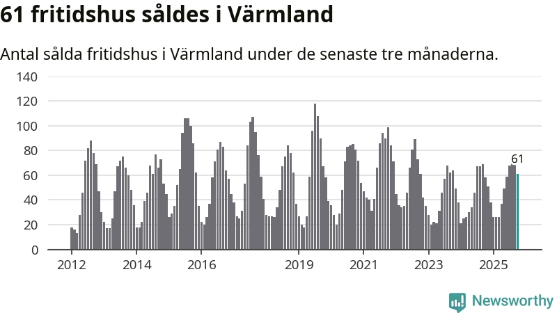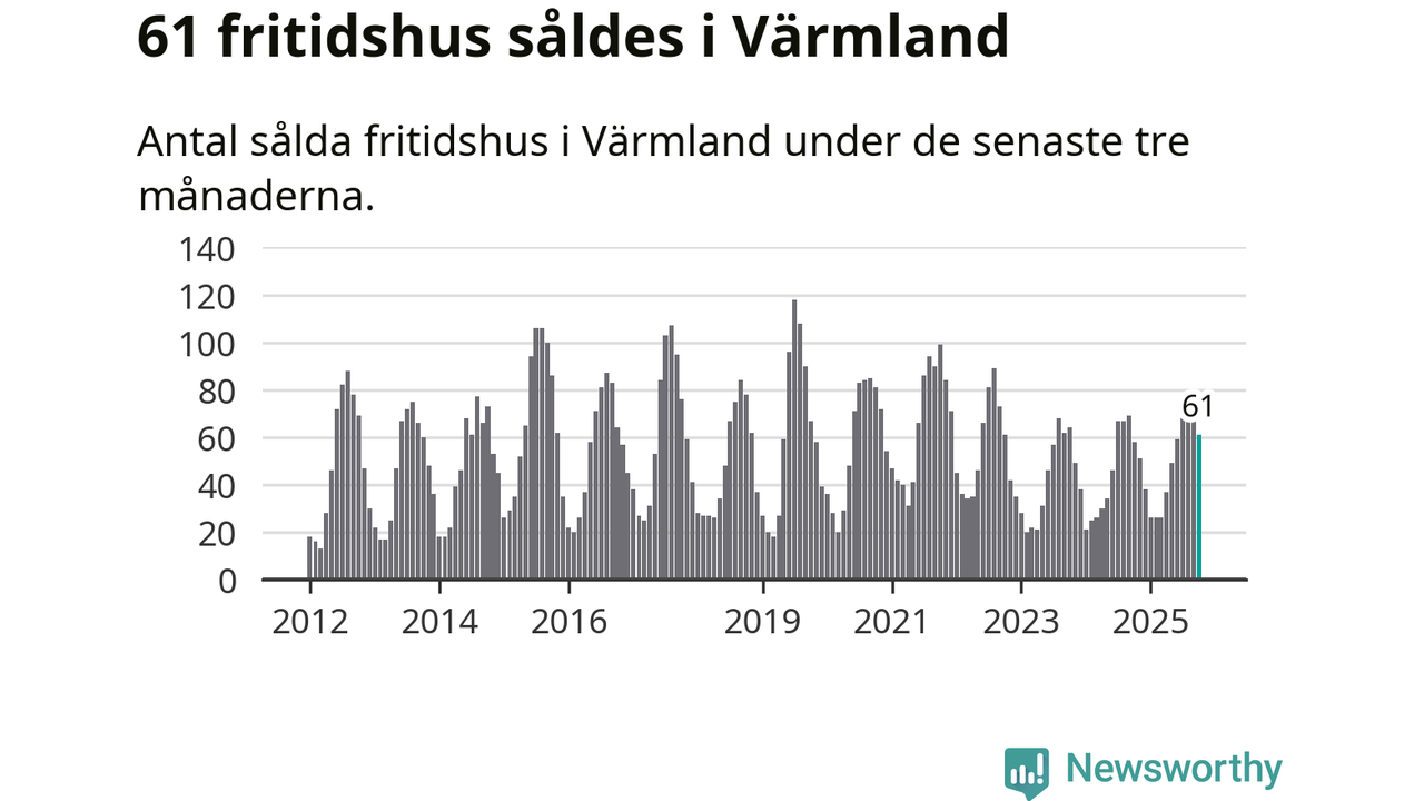 Sammanlagt såldes 61 fritidshus i Värmlands län mellan augusti och oktober till ett genomsnittligt pris på 2,0 miljoner kronor. I fjol gjordes 58 affärer vid den här tiden på året.