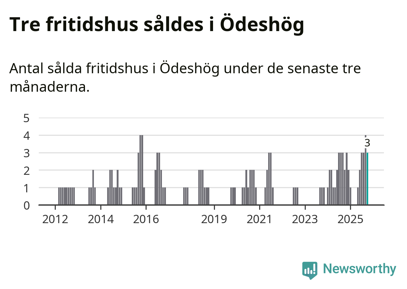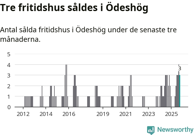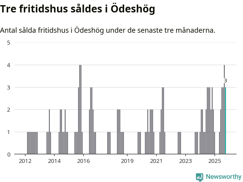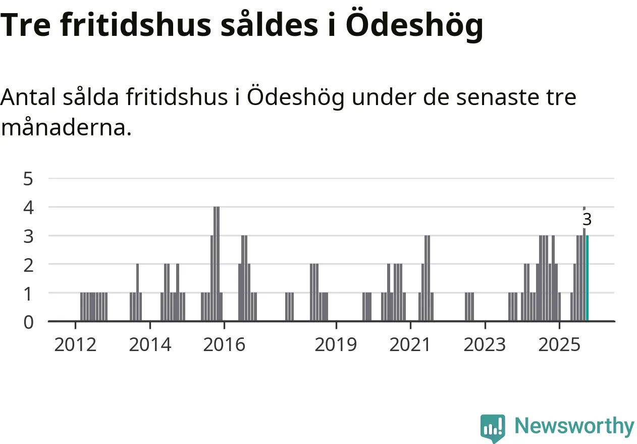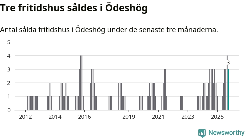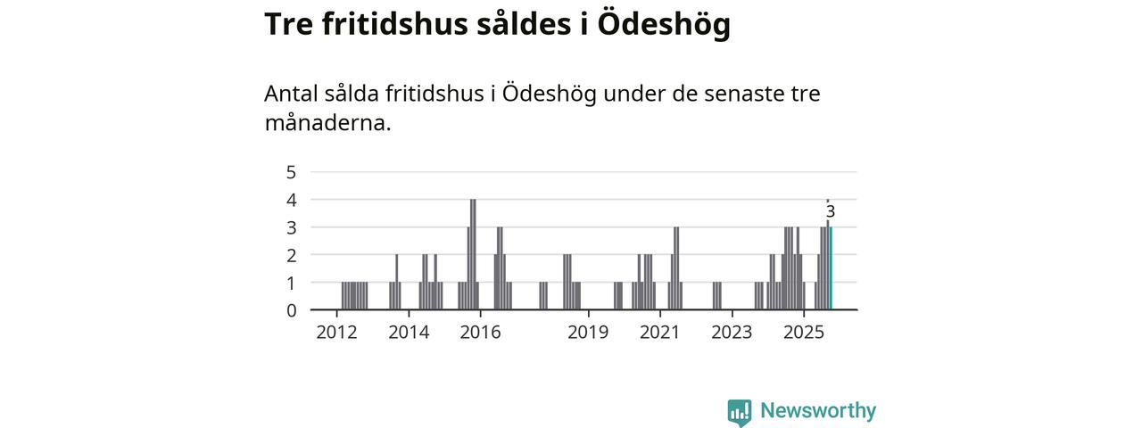 Mellan augusti och oktober gjordes sammanlagt tre affärer med fritidshus i Ödeshögs kommun. Det kan jämföras med två vid motsvarande tid i fjol.