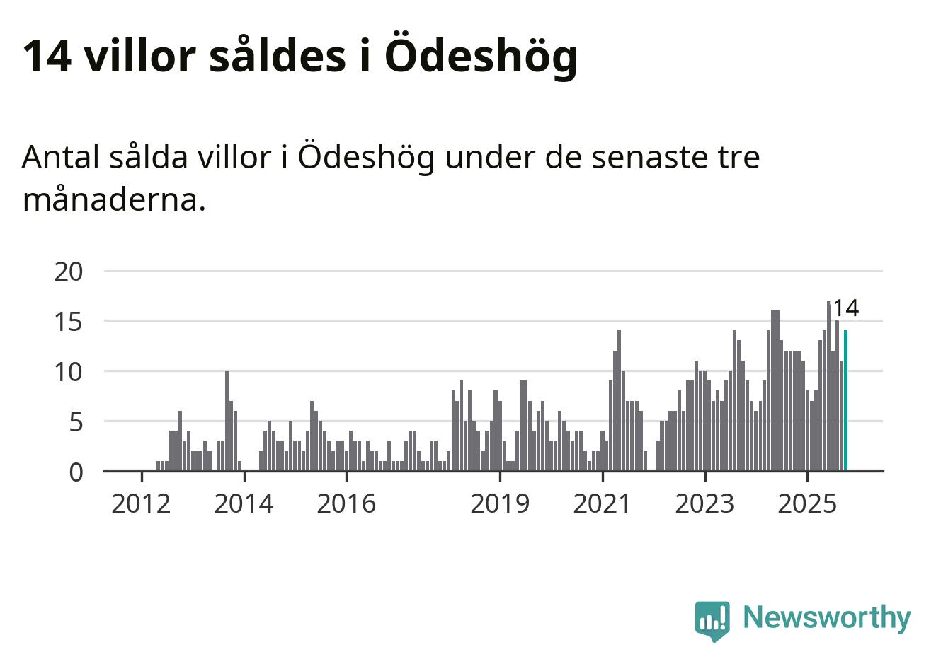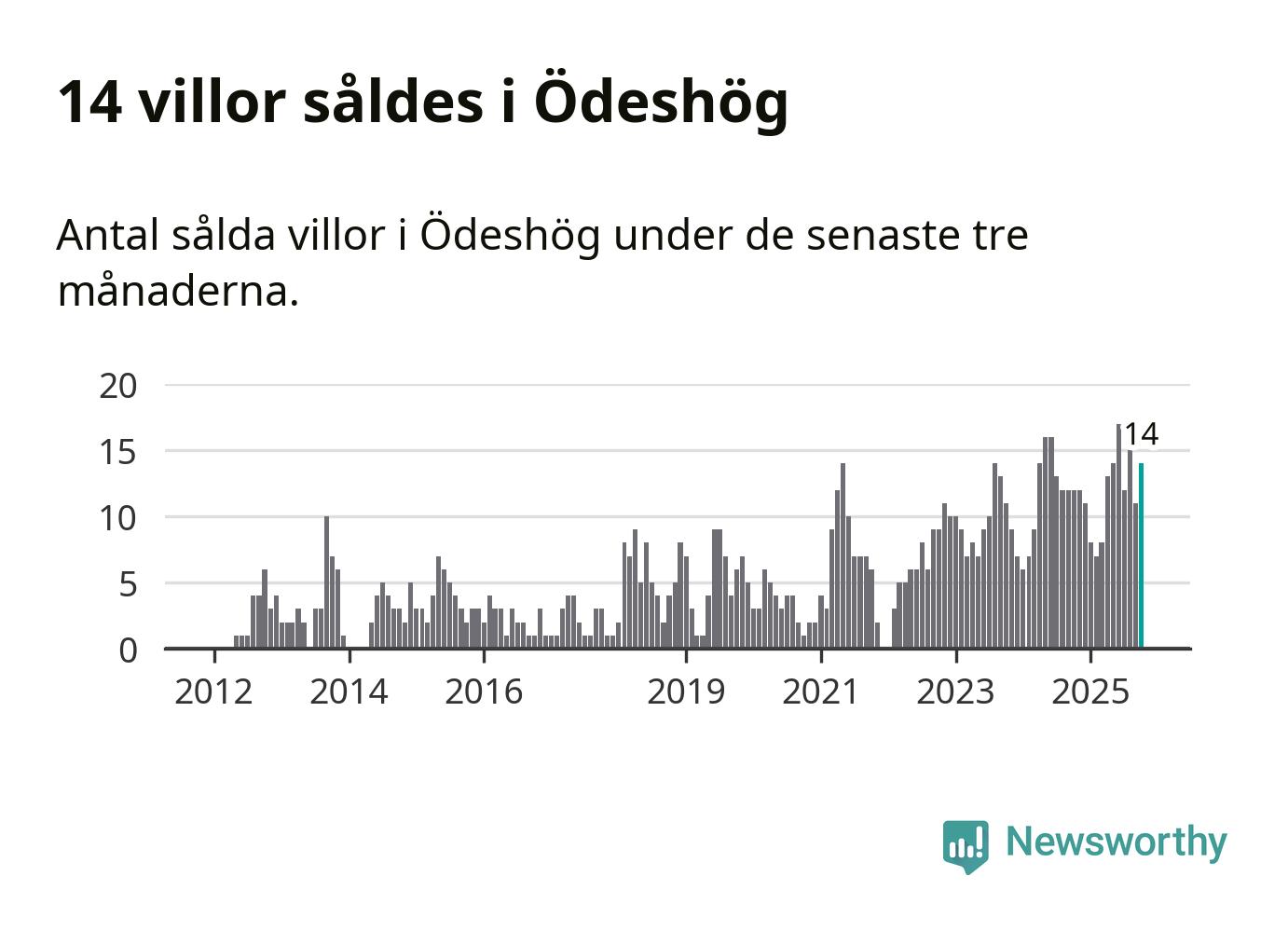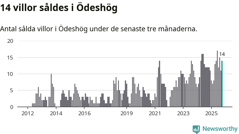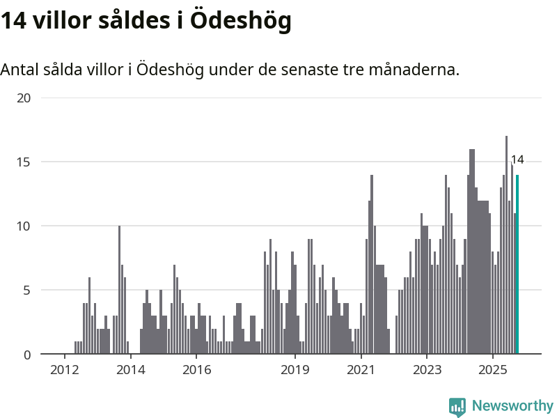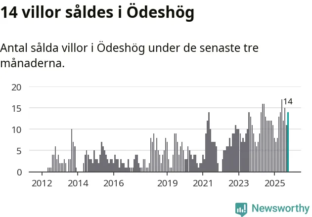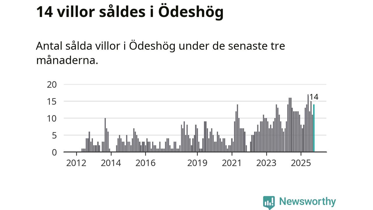 Mellan augusti och oktober gjordes sammanlagt 14 affärer med villor i Ödeshögs kommun. Det kan jämföras med tolv vid motsvarande tid i fjol.