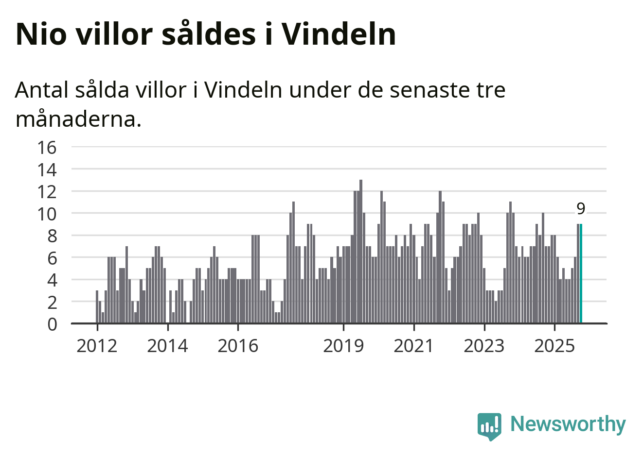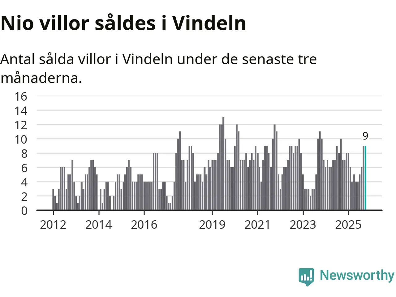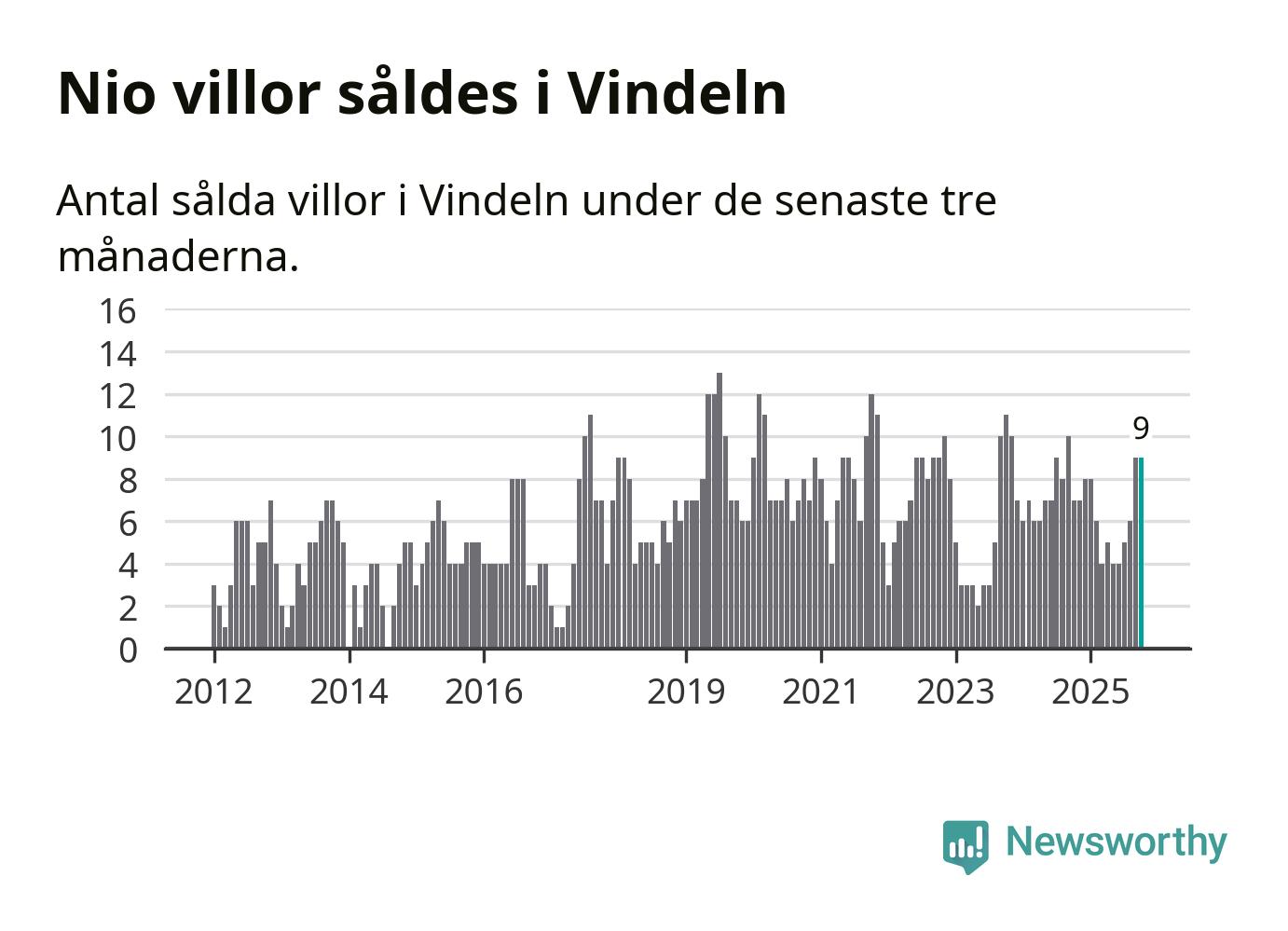 Mellan augusti och oktober gjordes sammanlagt nio affärer med villor i Vindelns kommun. Det kan jämföras med sju vid motsvarande tid i fjol.