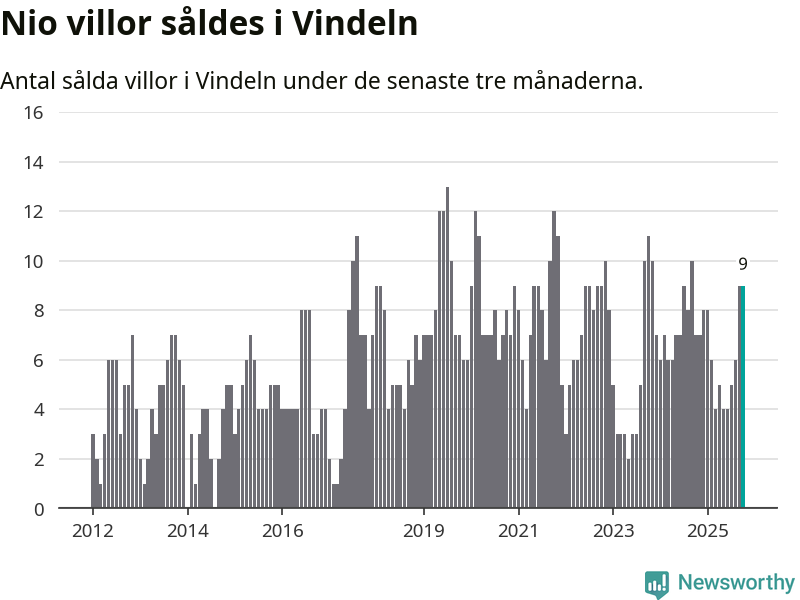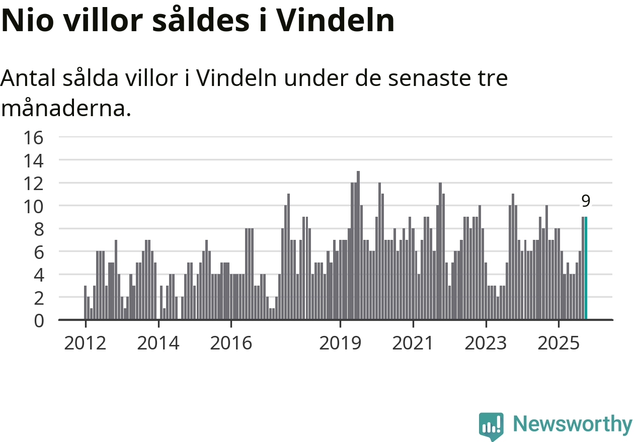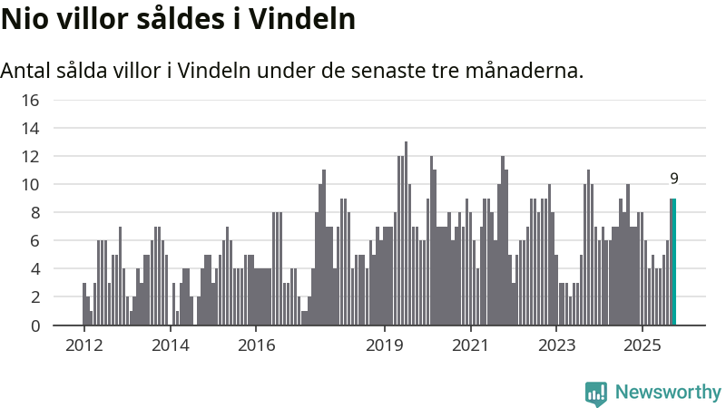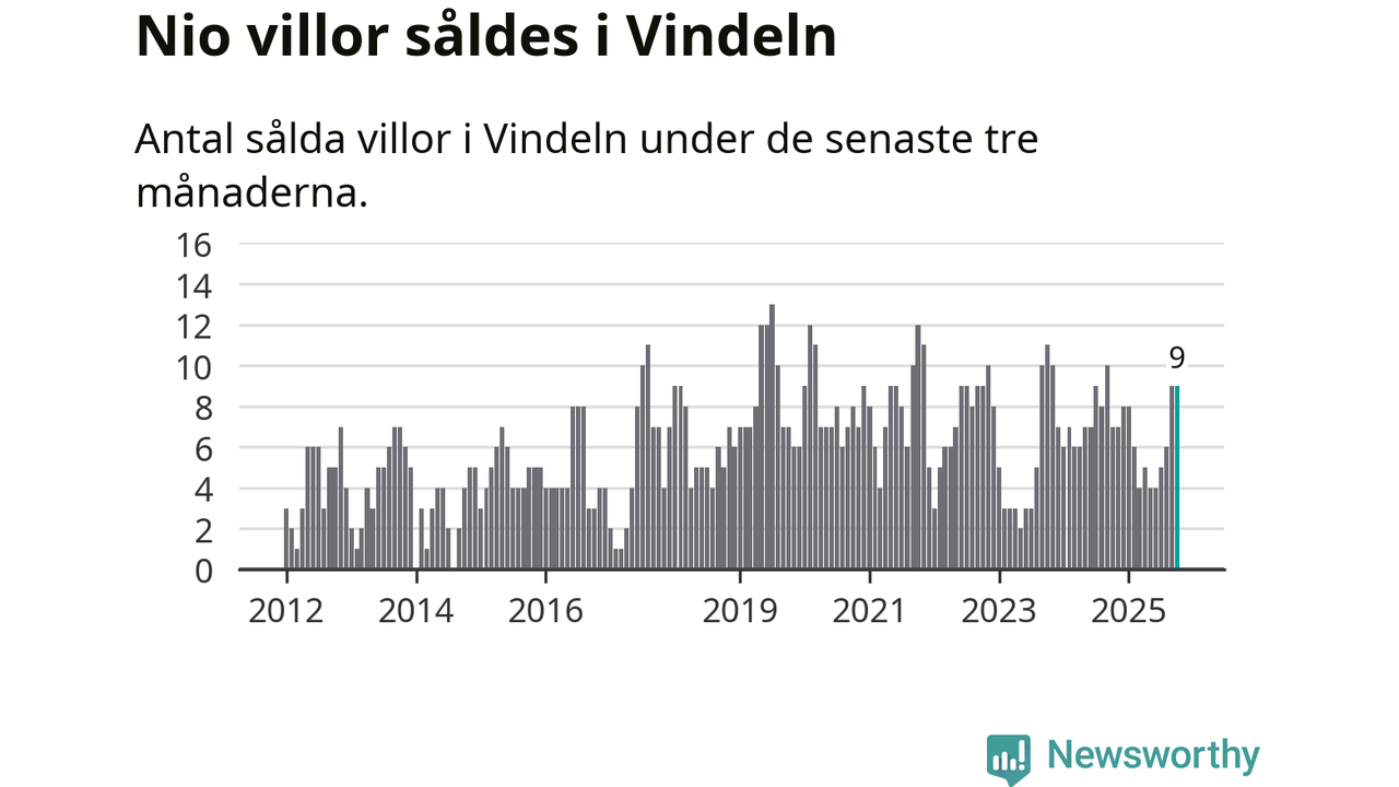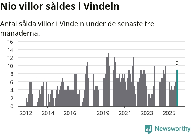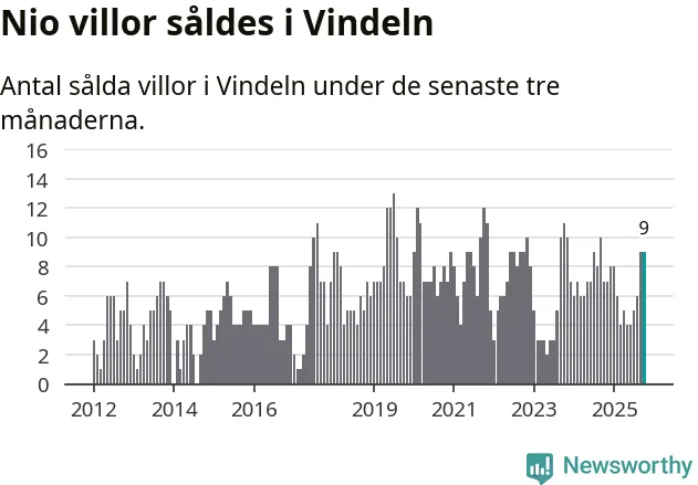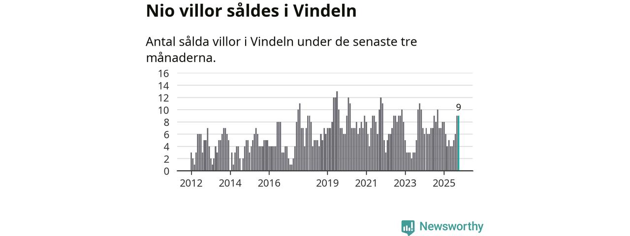 Mellan augusti och oktober gjordes sammanlagt nio affärer med villor i Vindelns kommun. Det kan jämföras med sju vid motsvarande tid i fjol.