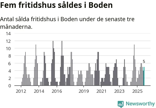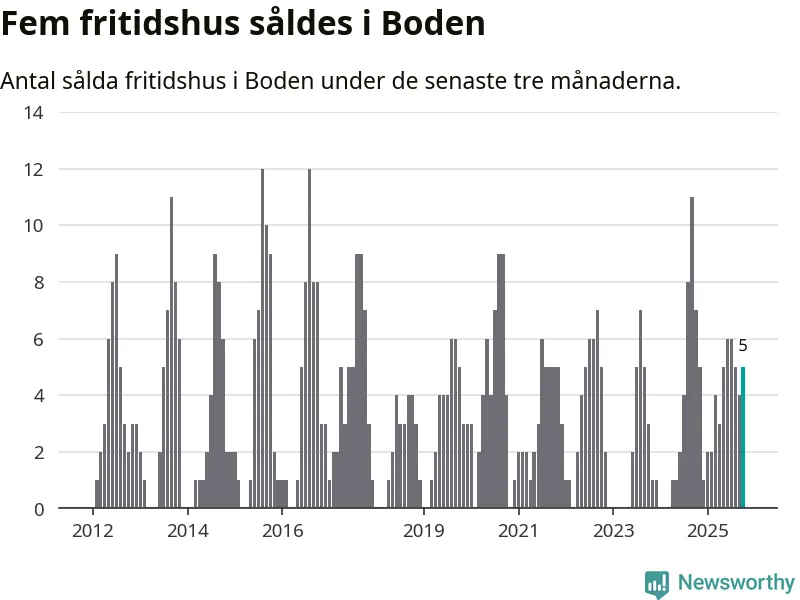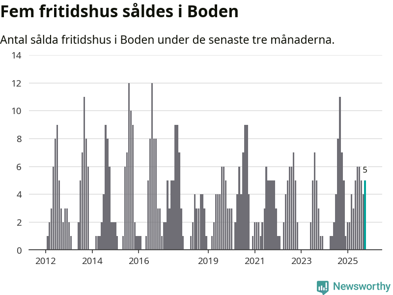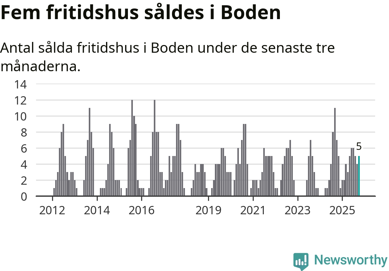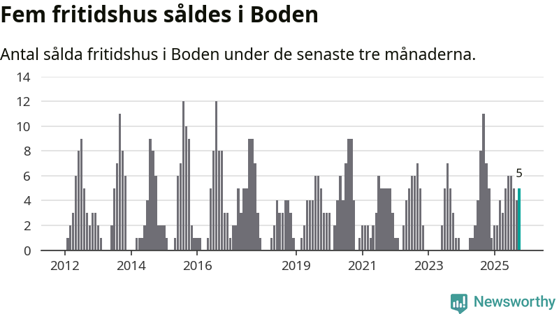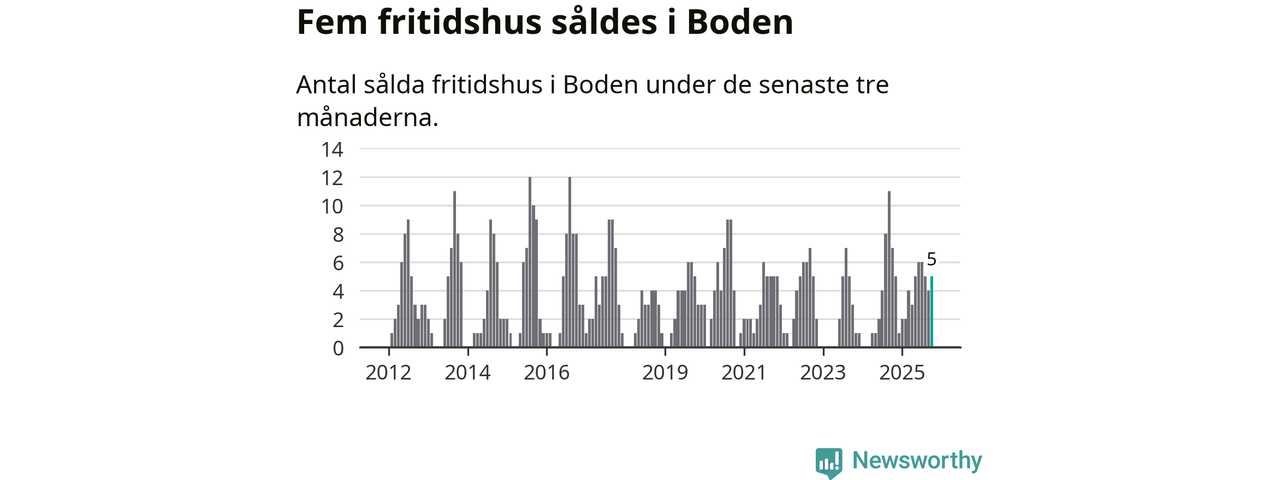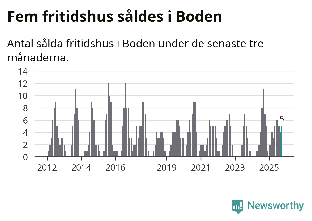 Mellan augusti och oktober gjordes sammanlagt fem affärer med fritidshus i Bodens kommun. Det kan jämföras med sju vid motsvarande tid i fjol.