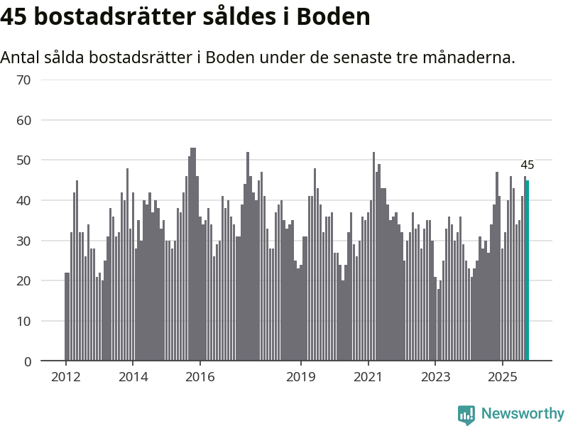 | Boden | +2 % ▲ | 45 | 1,2 miljoner |