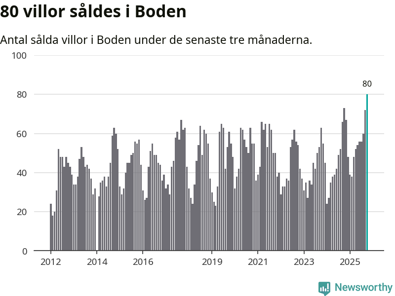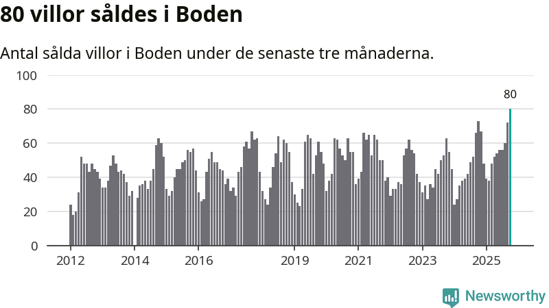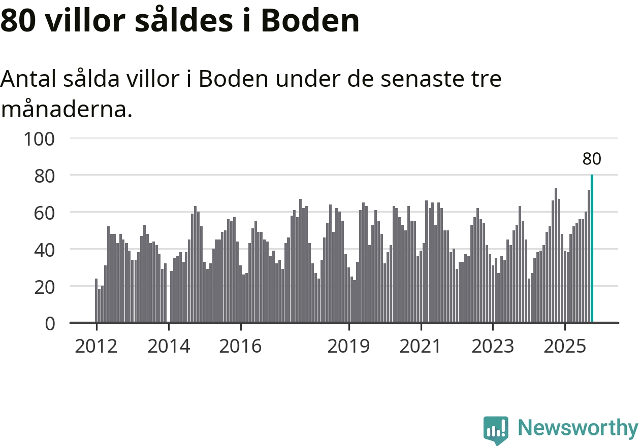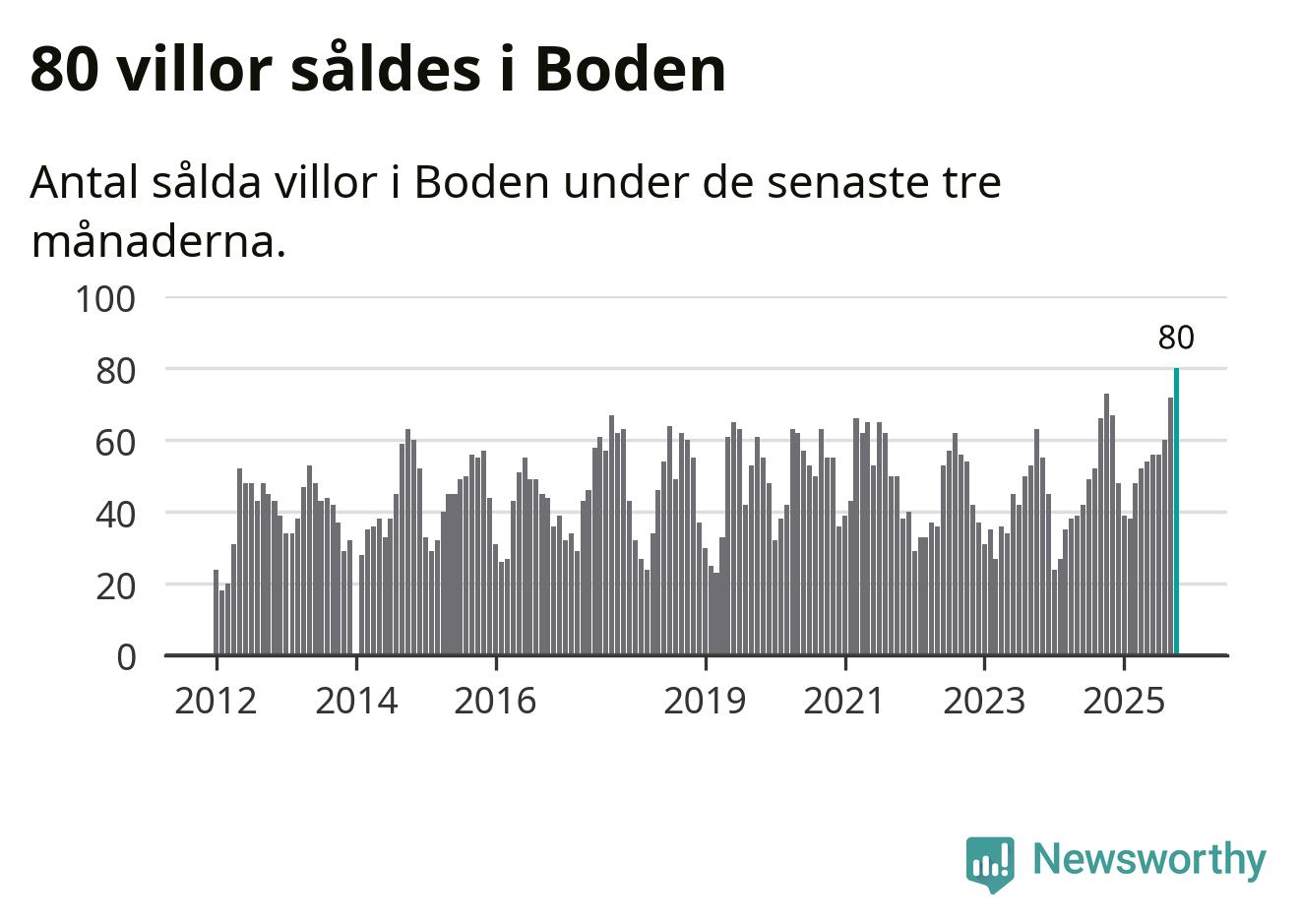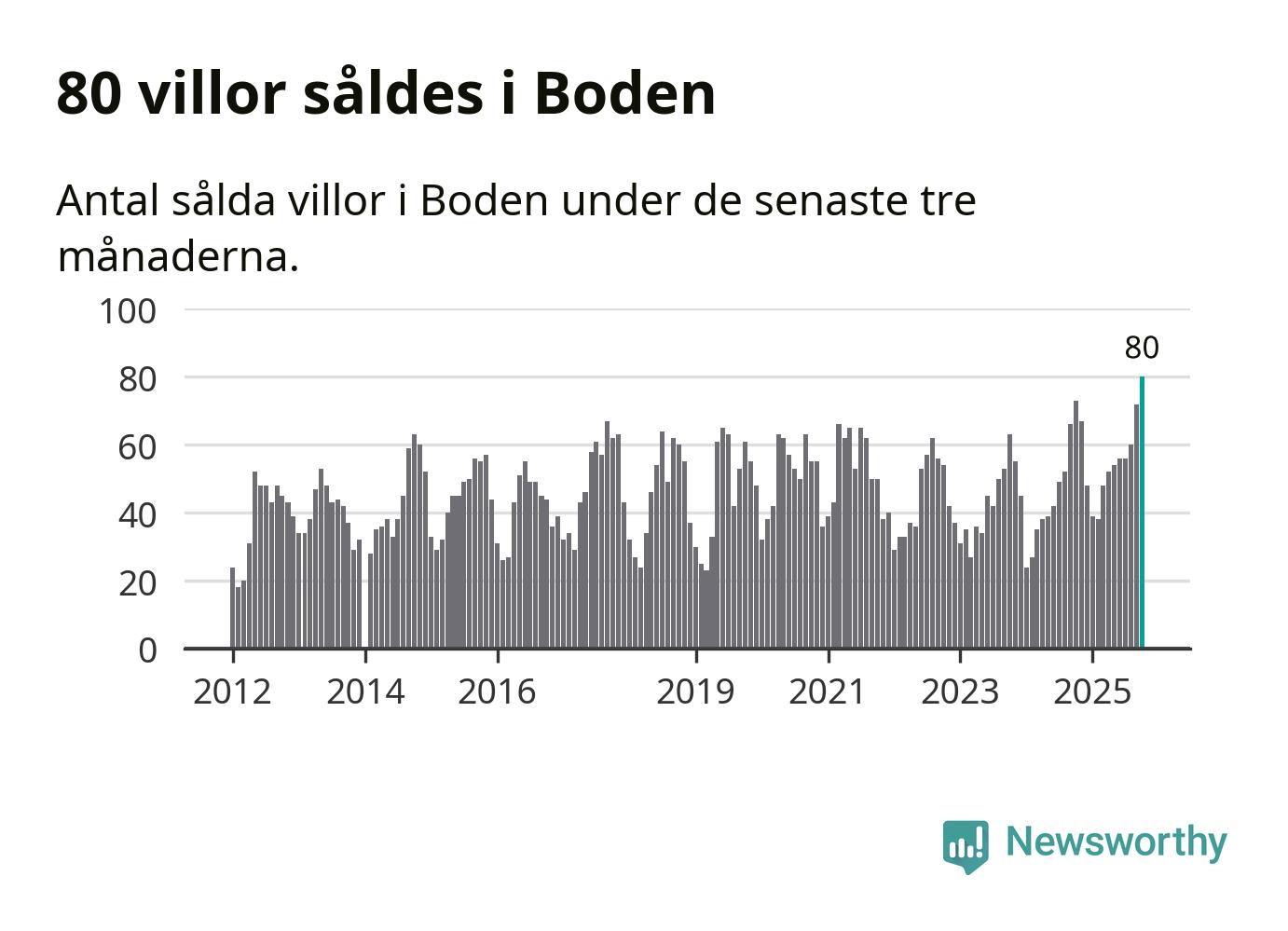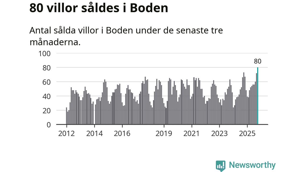Mellan augusti och oktober såldes 80 villor i Bodens kommun. Det är fler än någon tremånadersperiod sedan 2012.