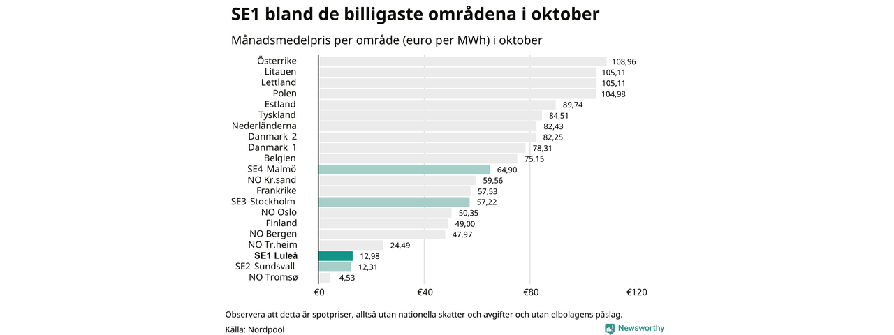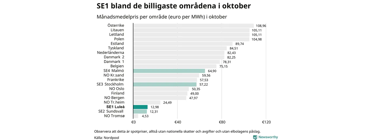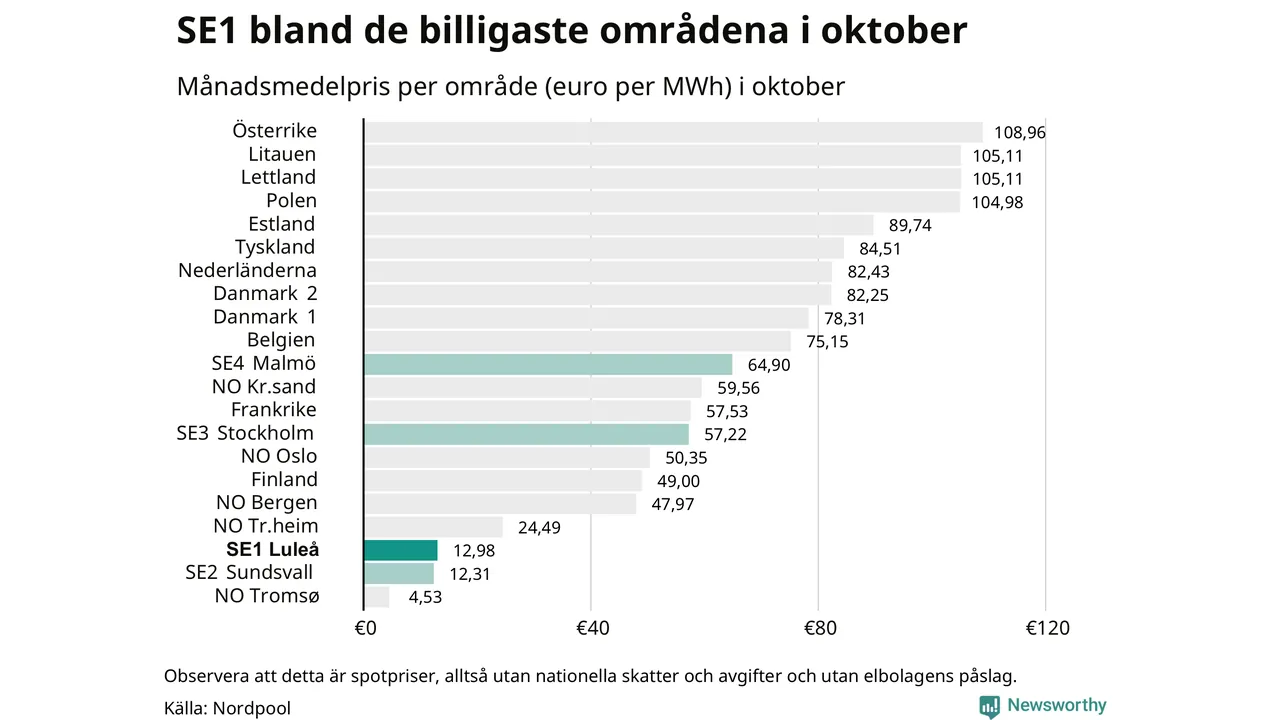 Rekordlågt timpris i Jokkmokk: Läget på elmarknaden oktober