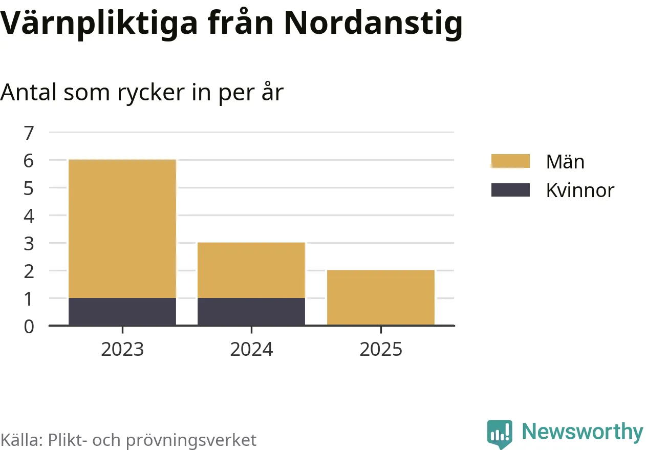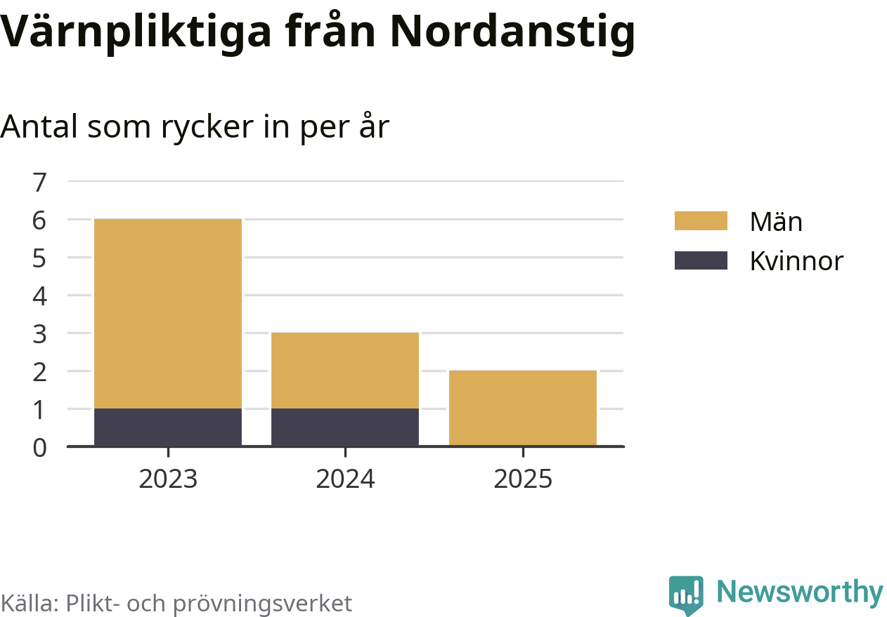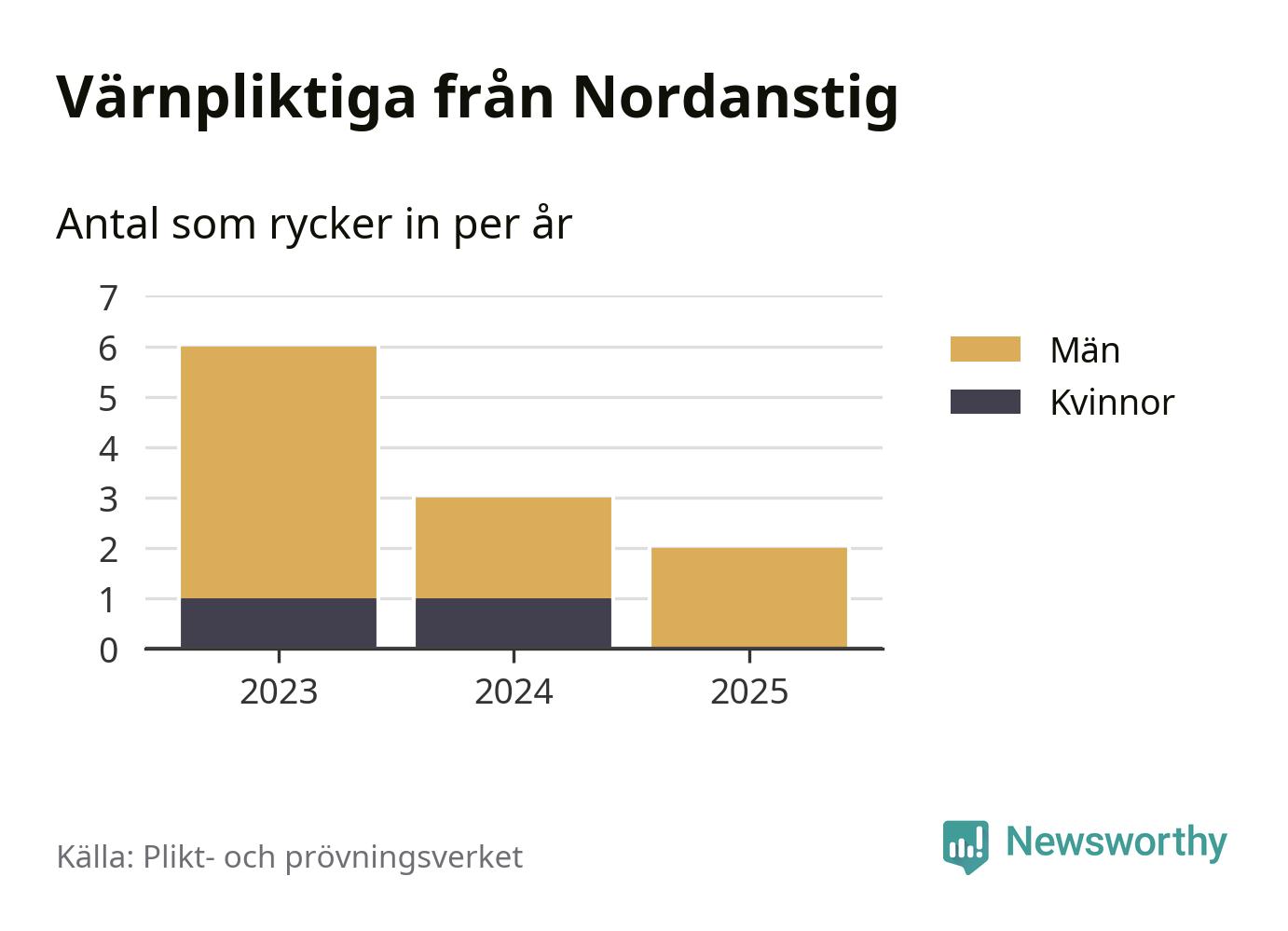 Sedan 2023 – som är det första året vi har jämförbara siffror för – har totalt elva ungdomar från Nordanstig påbörjat sin värnplikt. Av dem har två varit kvinnor.