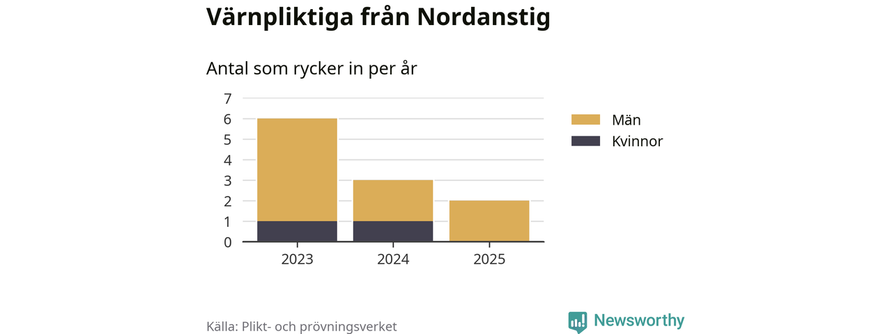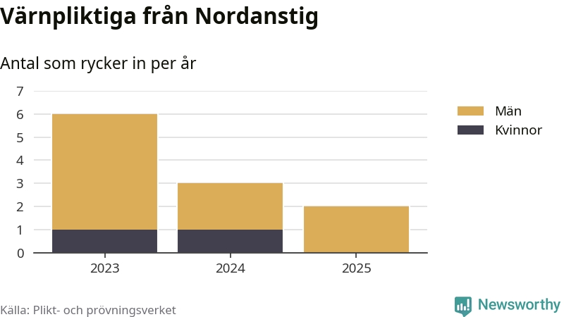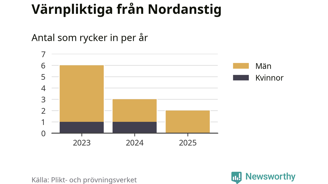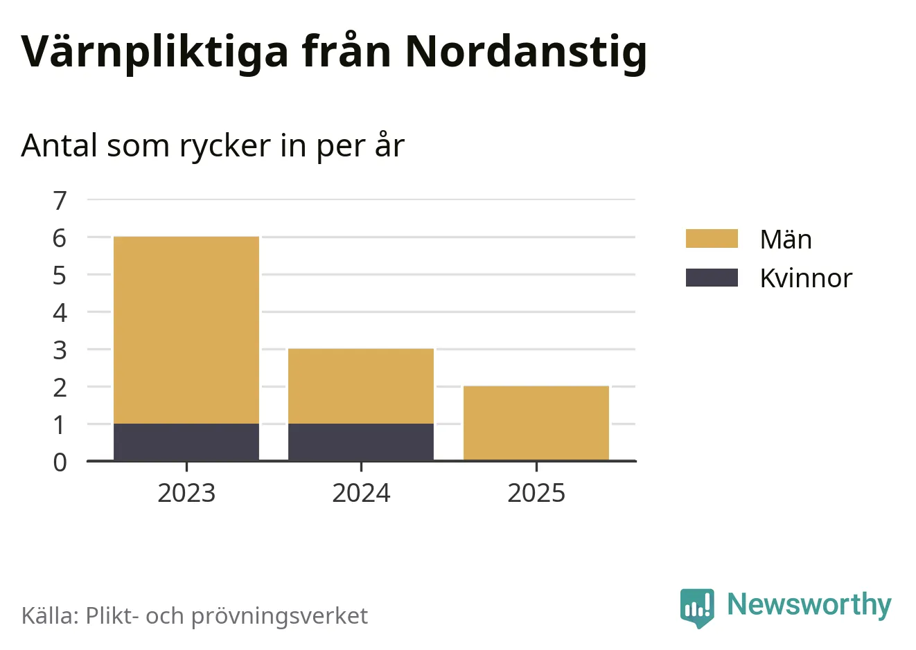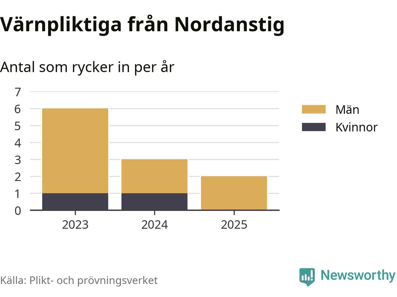 Sedan 2023 – som är det första året vi har jämförbara siffror för – har totalt elva ungdomar från Nordanstig påbörjat sin värnplikt. Av dem har två varit kvinnor.