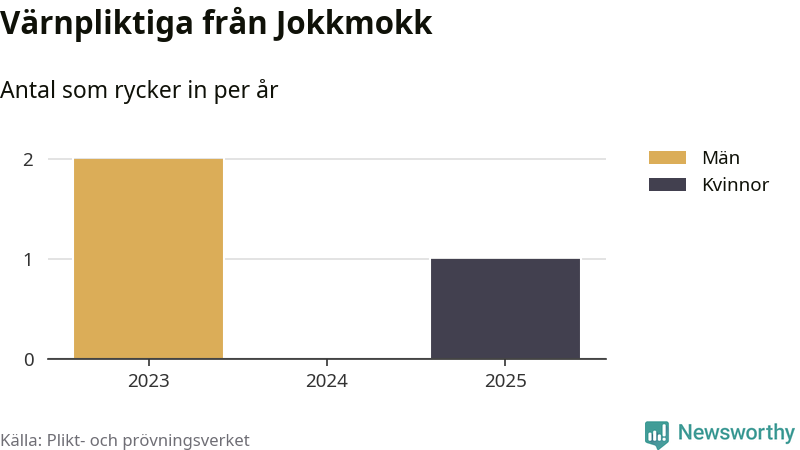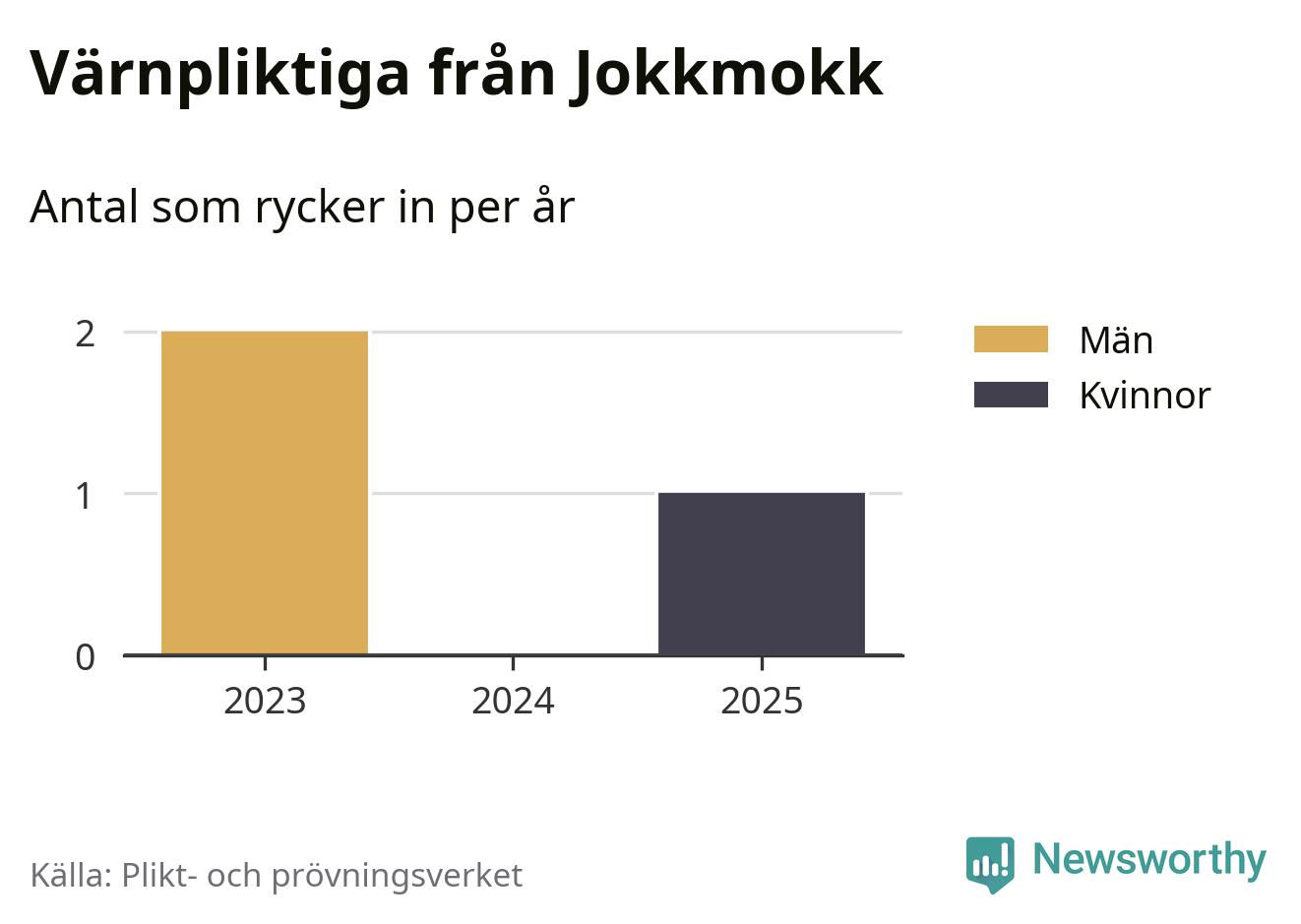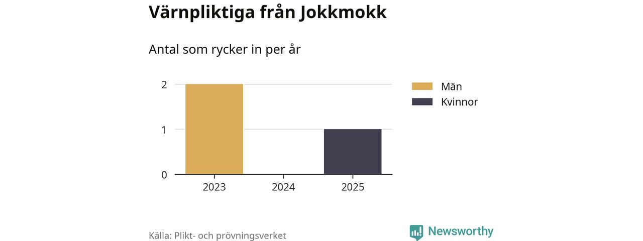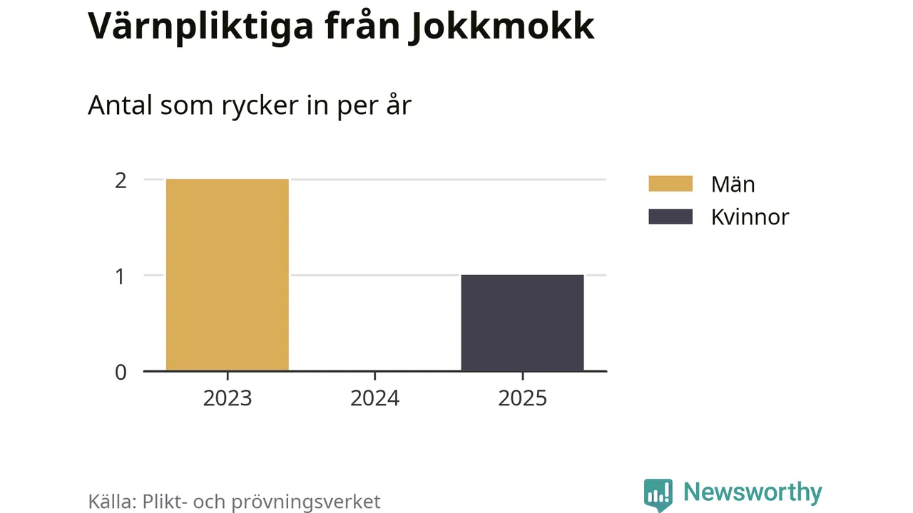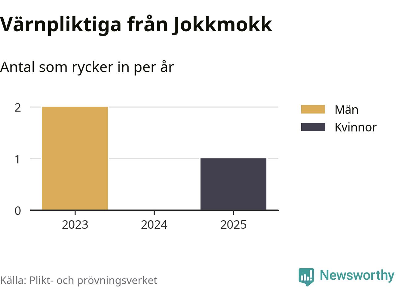 Sedan 2023 – som är det första året vi har jämförbara siffror för – har totalt tre ungdomar från Jokkmokk påbörjat sin värnplikt. Av dem har en varit kvinna.